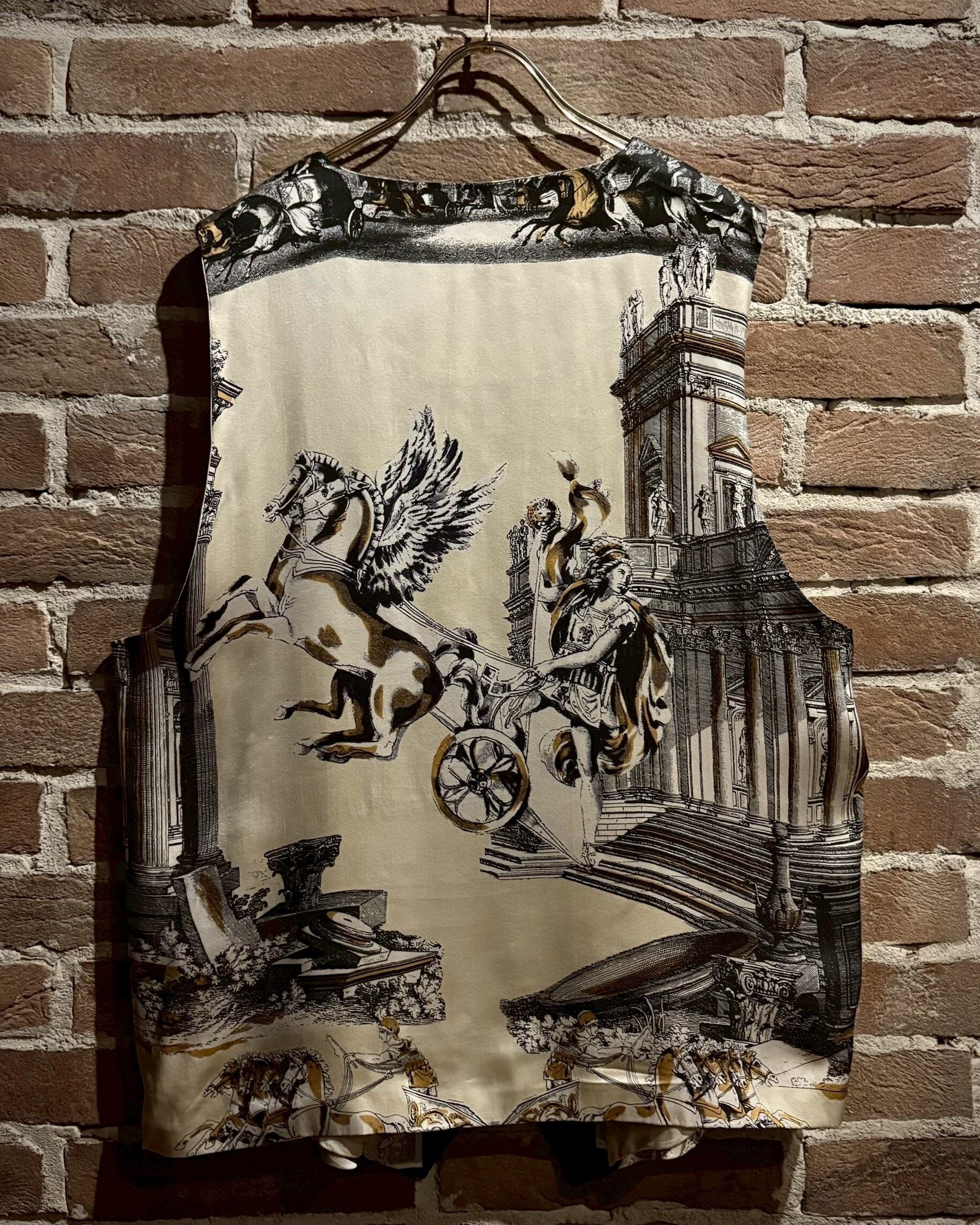 単なるベストという枠を超え、ファッションピースとしての存在感を放つ逸品。シルクならではの高級感とイタリアンデザインの華やかさを、是非ワードローブに加えてみてください。