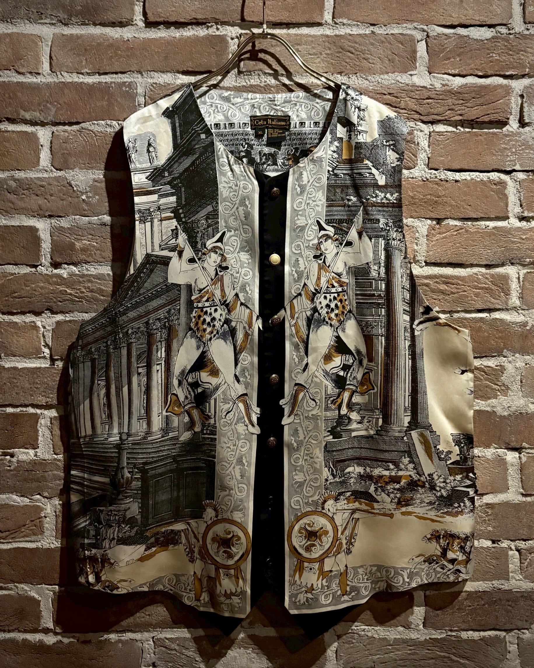 当店らしいレトロかつラグジュアリーな空気を纏った、贅沢なシルク100%ベストをご紹介いたします。
