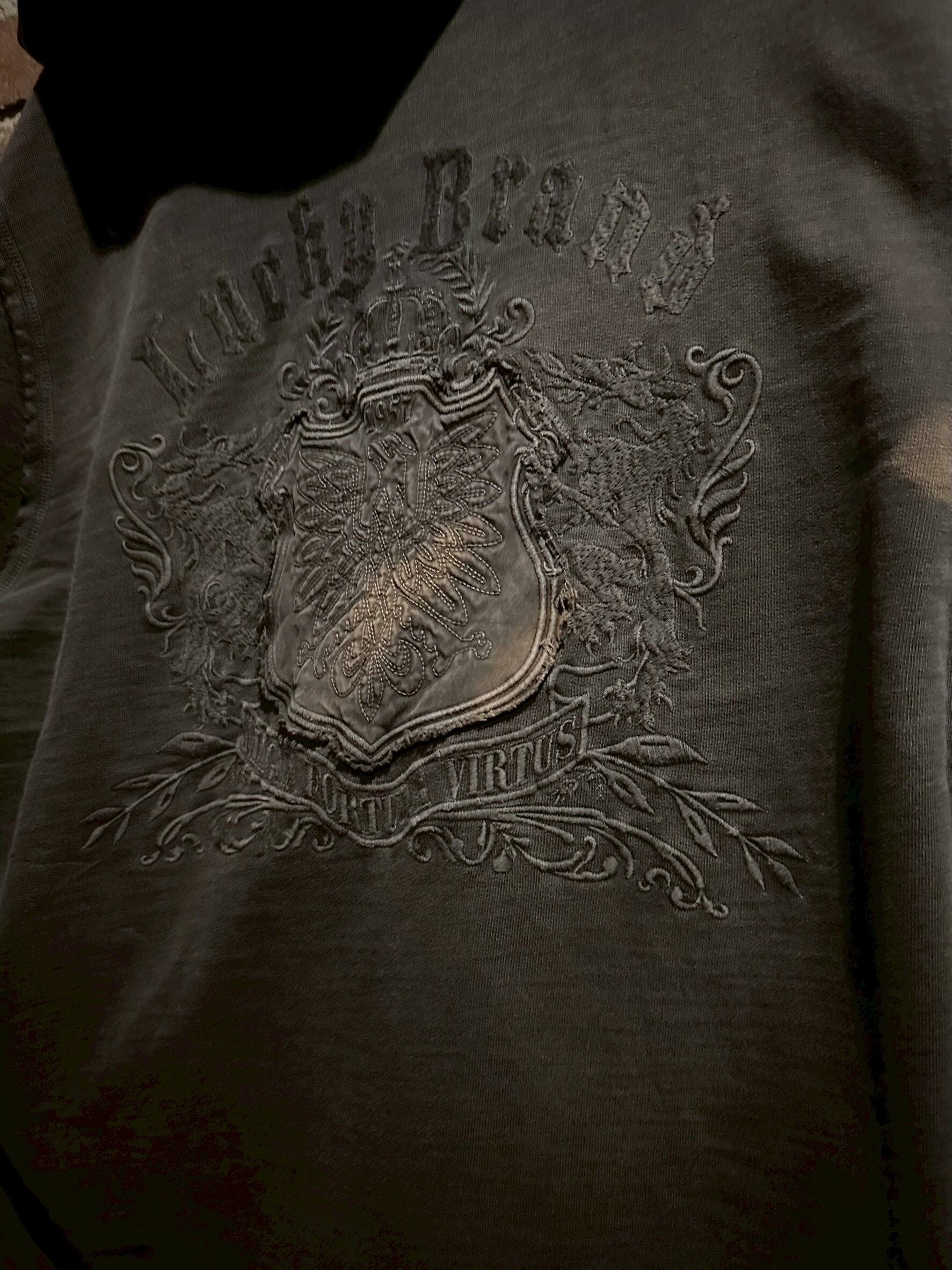 Y2Kカルチャーを象徴するようなグラフィカルな刺繍デザインとフェード感のある色味が相まって、2000年代初頭のストリートムードを彷彿とさせる一着に。王道アメカジはもちろん、ストリートやY2Kスタイルの外しにもハマる、洒落感確定のフーディーです。