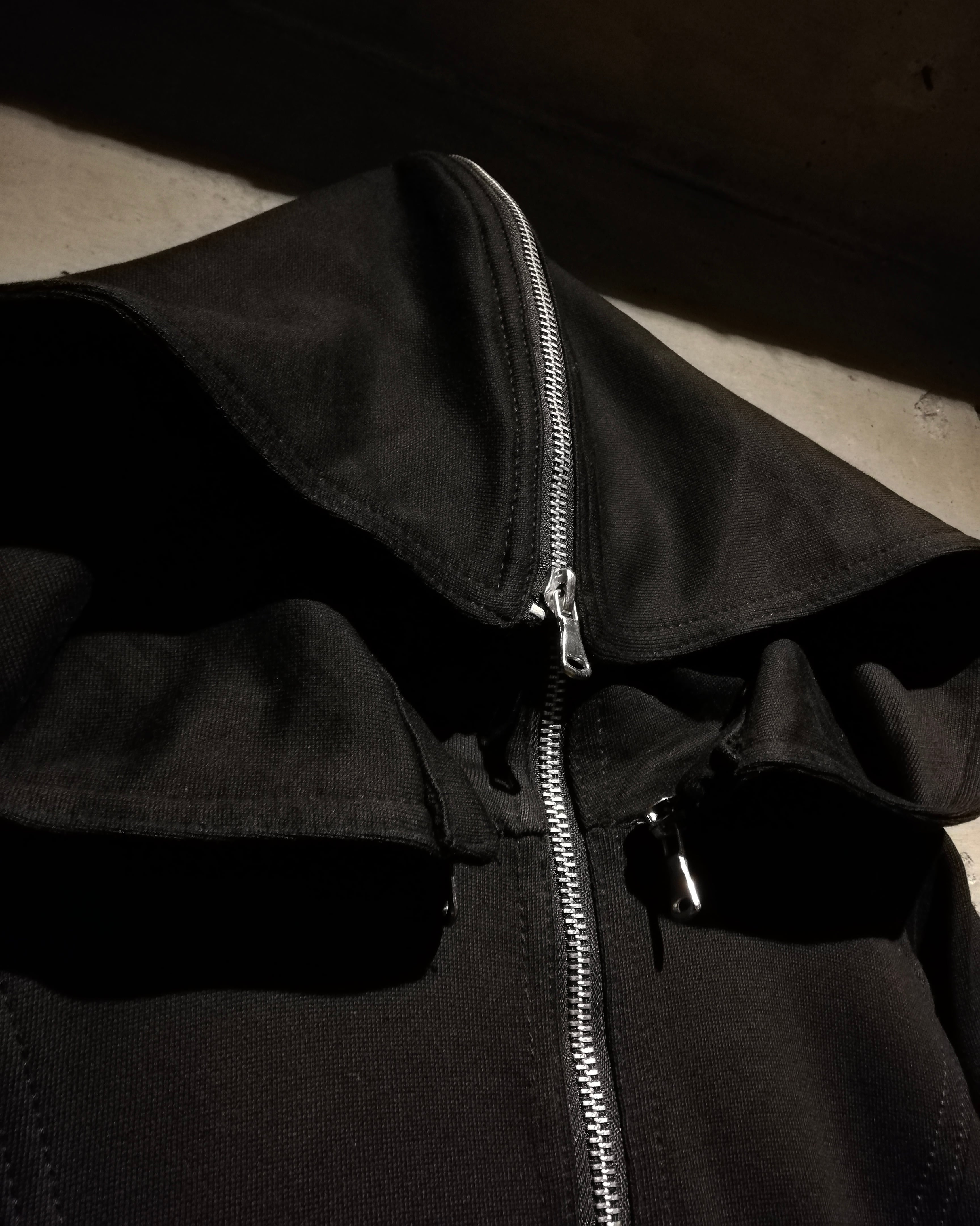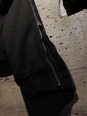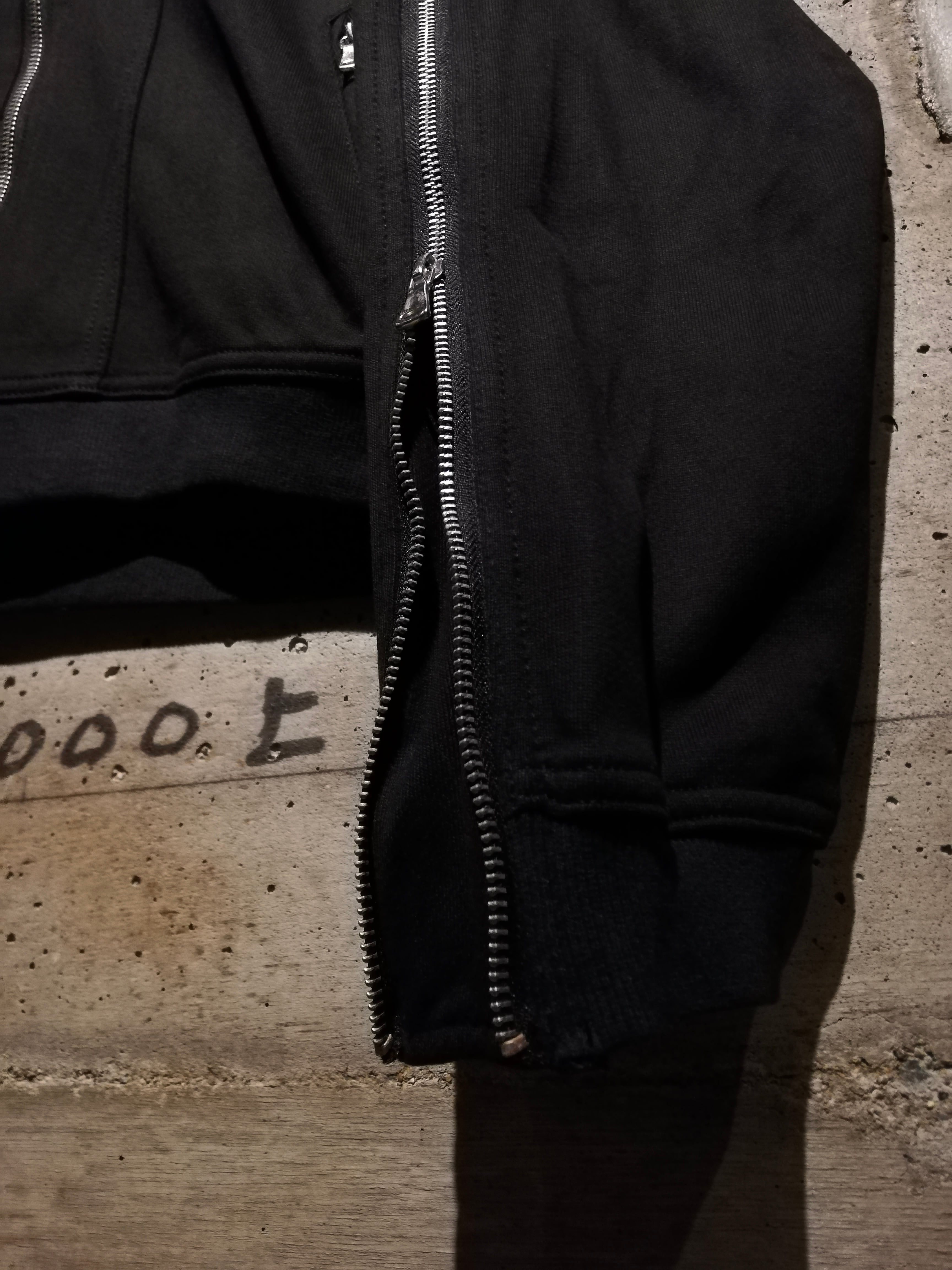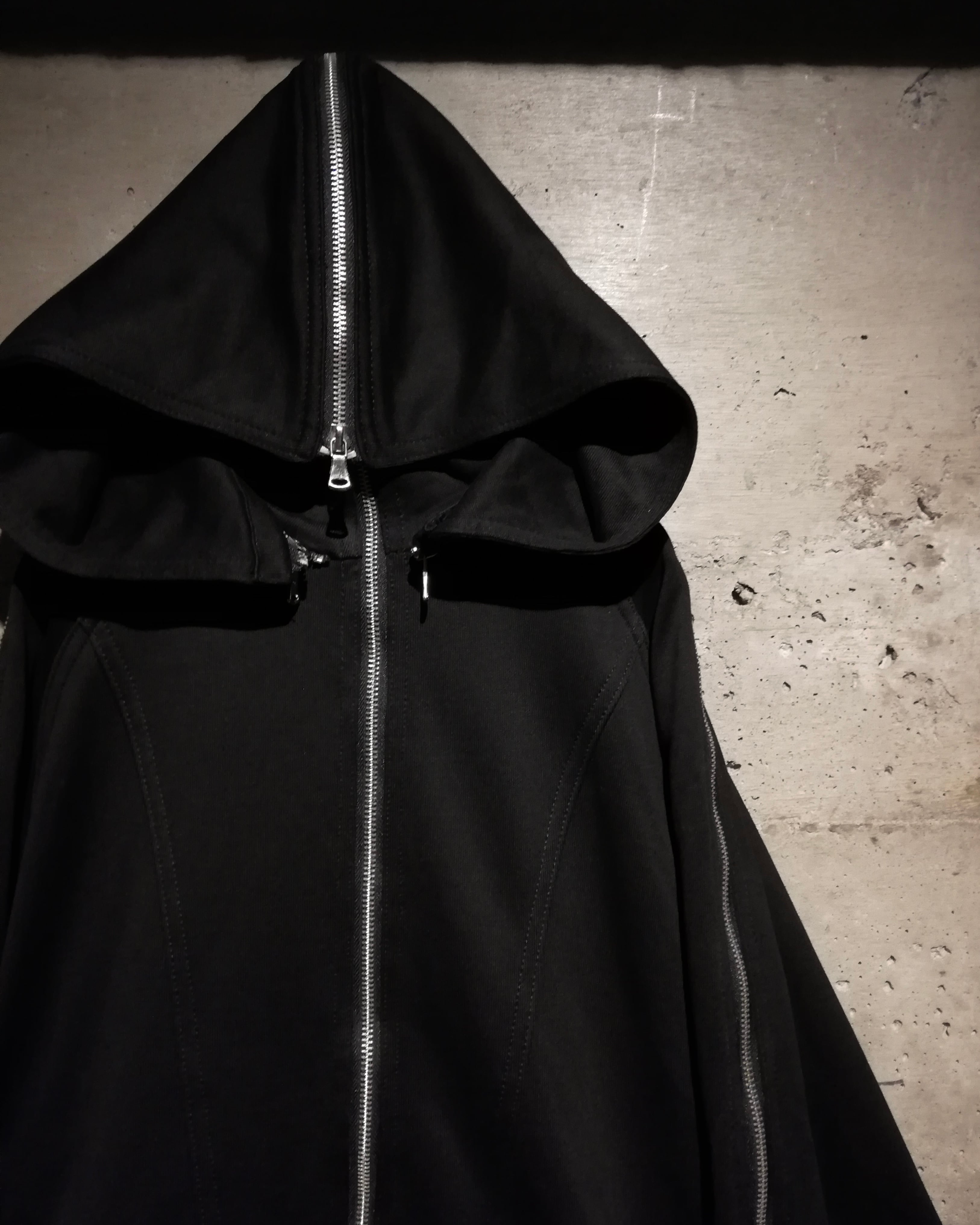 ハリのあるタフなスウェット生地を採用しており、ストリートユースはもちろん、モードやアバンギャルドなスタイルにも相性良く落とし込める一着。細部までこだわったジップワークが光り、羽織るだけで圧倒的な存在感を放ちます。
