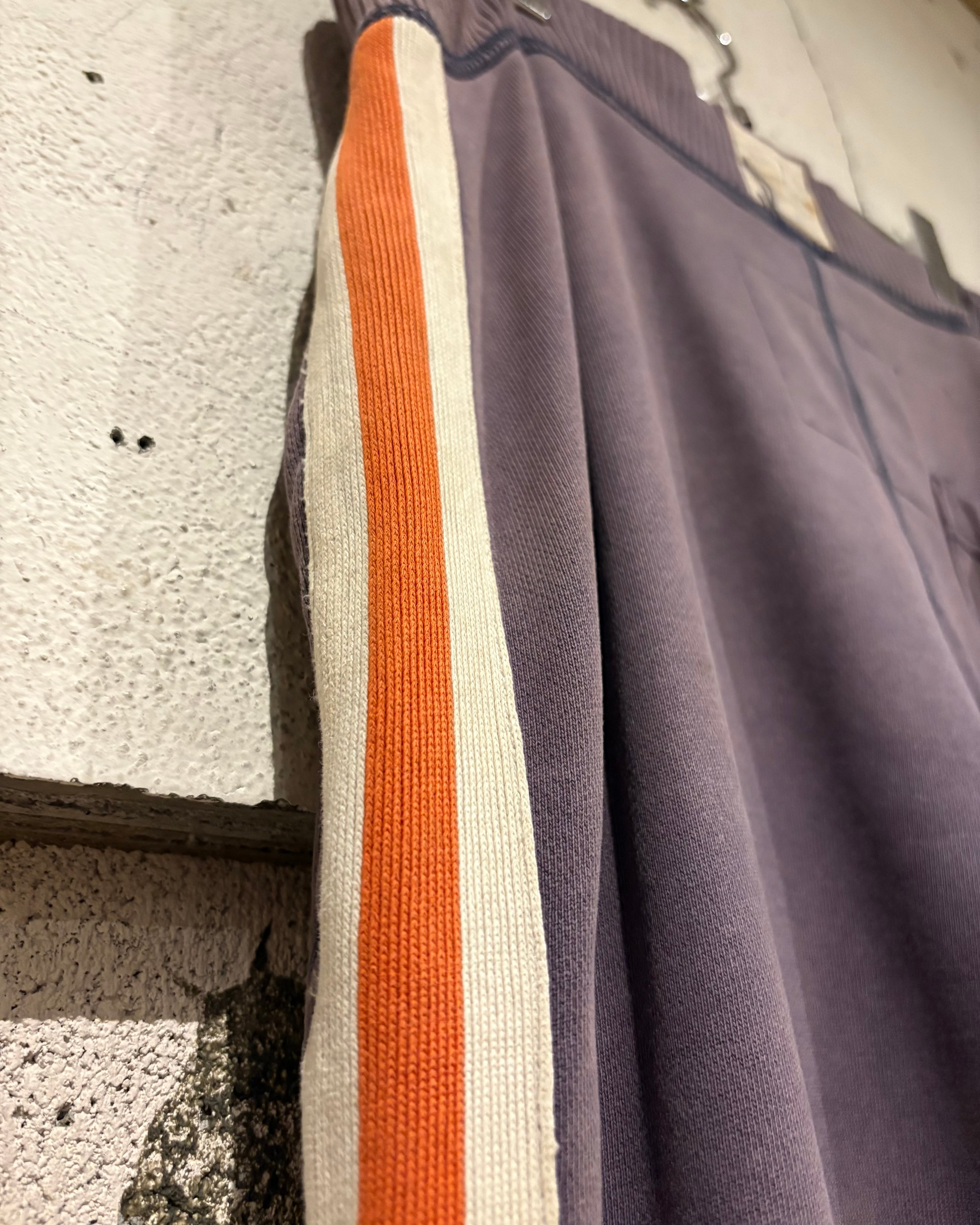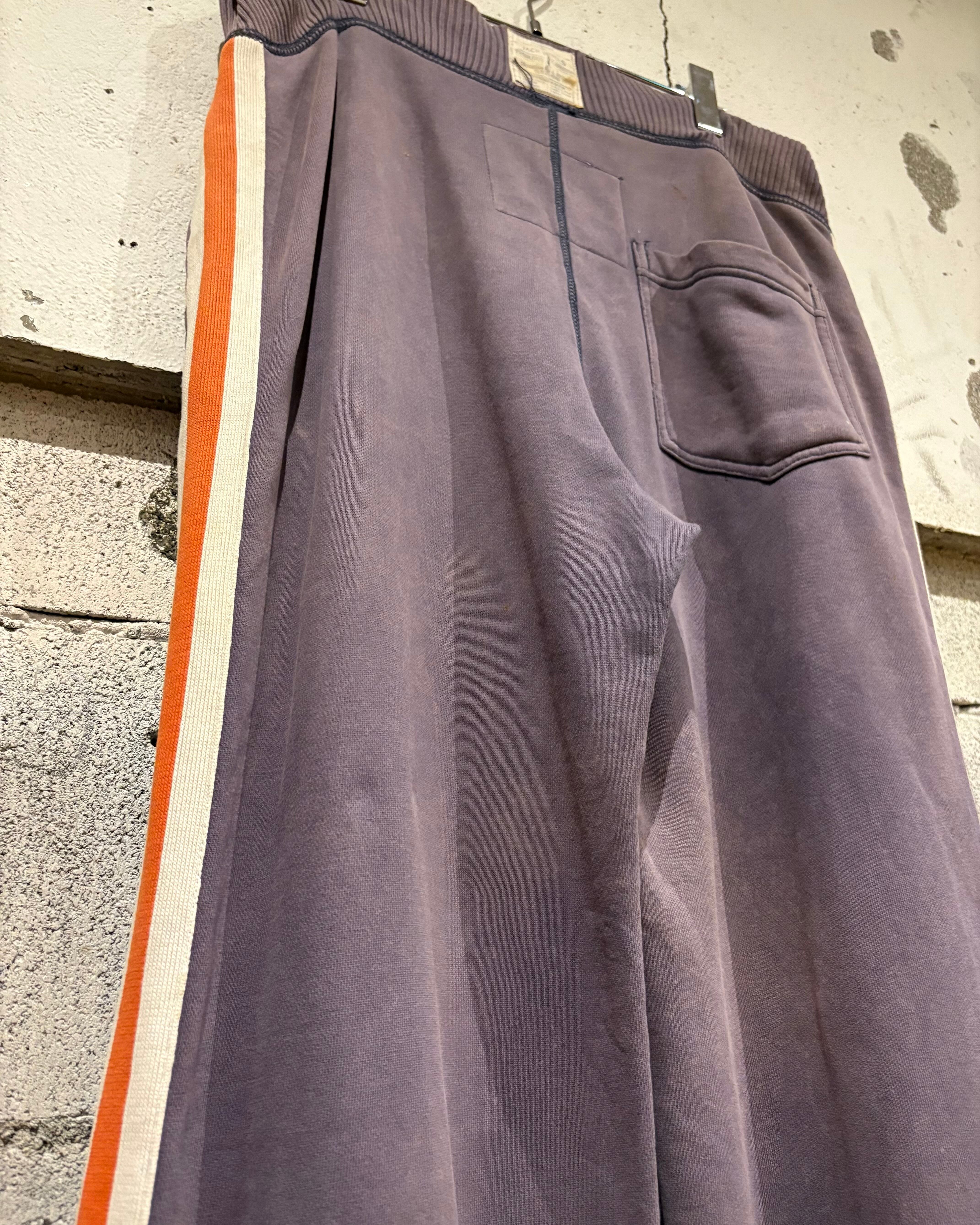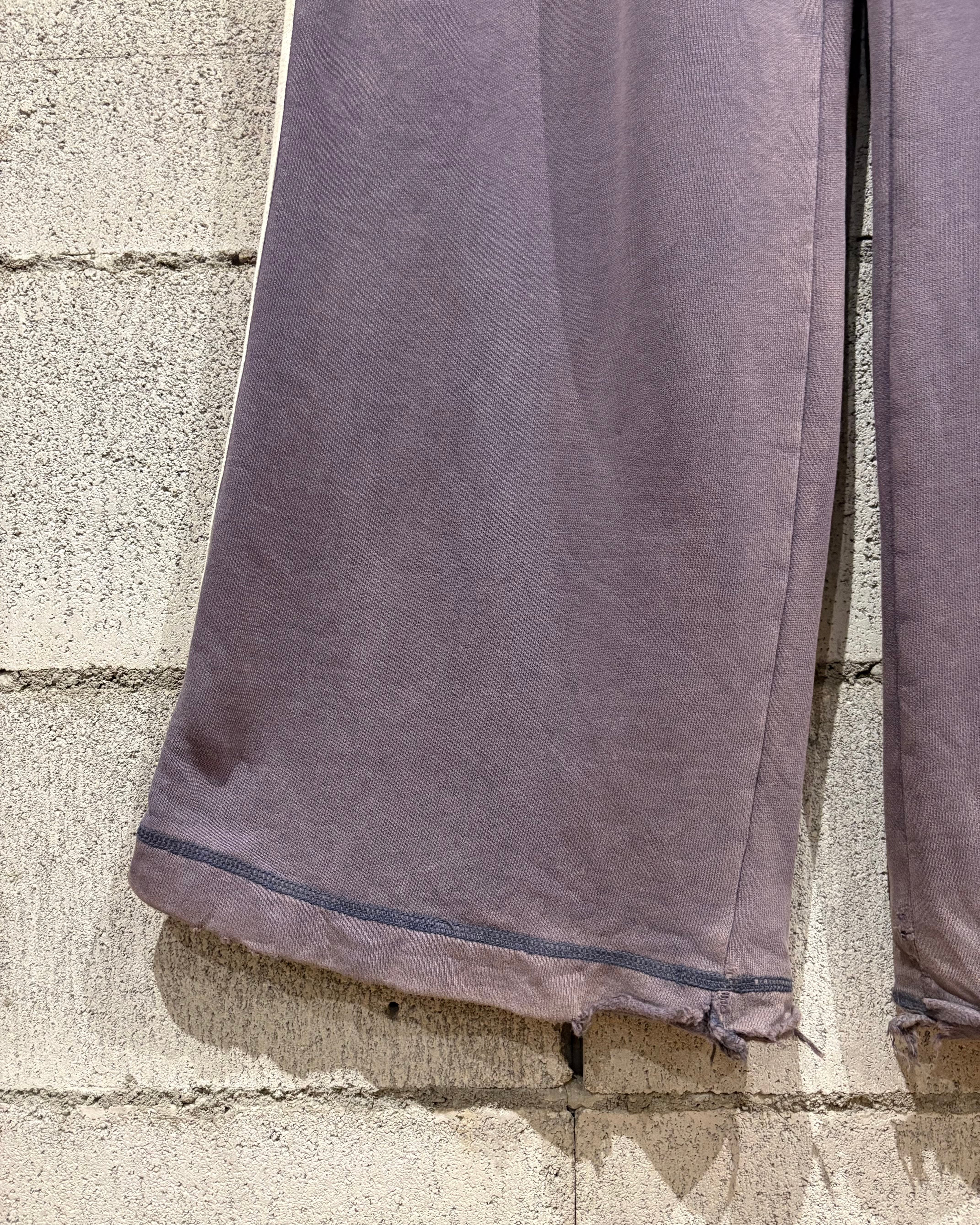 ウエストはリブ仕様にドローコード付きで調整が効き、快適な穿き心地を提供。裾には引き摺って穿いた後があり、リアルユーズドならではのラフでこなれたニュアンスを演出します。ワイドシルエットで綺麗に落ちるため、Tシャツやスウェットと合わせるだけで存在感あるスタイリングが完成。