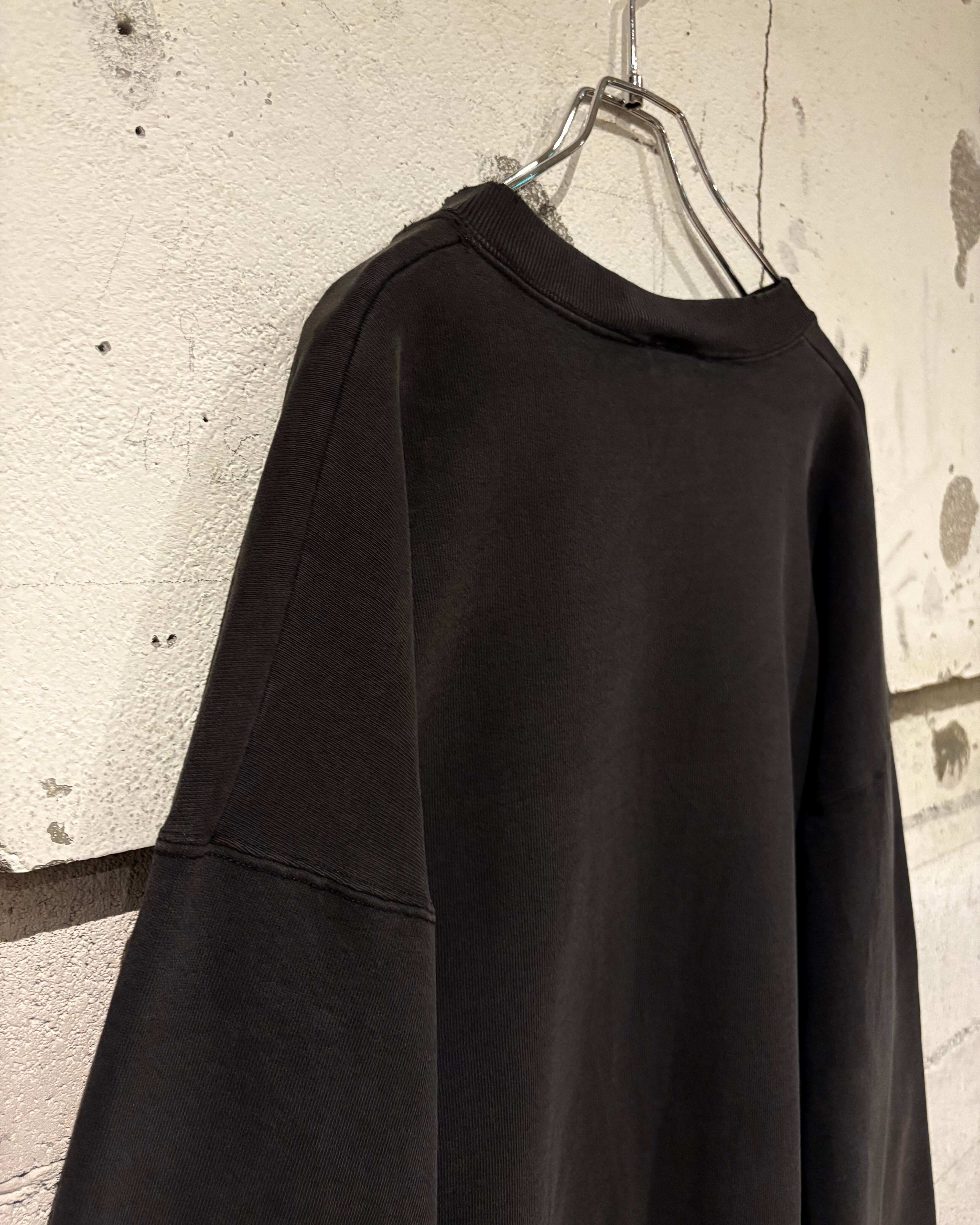 プルオーバー仕様に、ワイドな身幅とたっぷり取られたアームホールが特徴で、着用時には丸みを帯びた、リラックスしたシルエットを演出。肉厚なスウェット地と相まって存在感も抜群です。