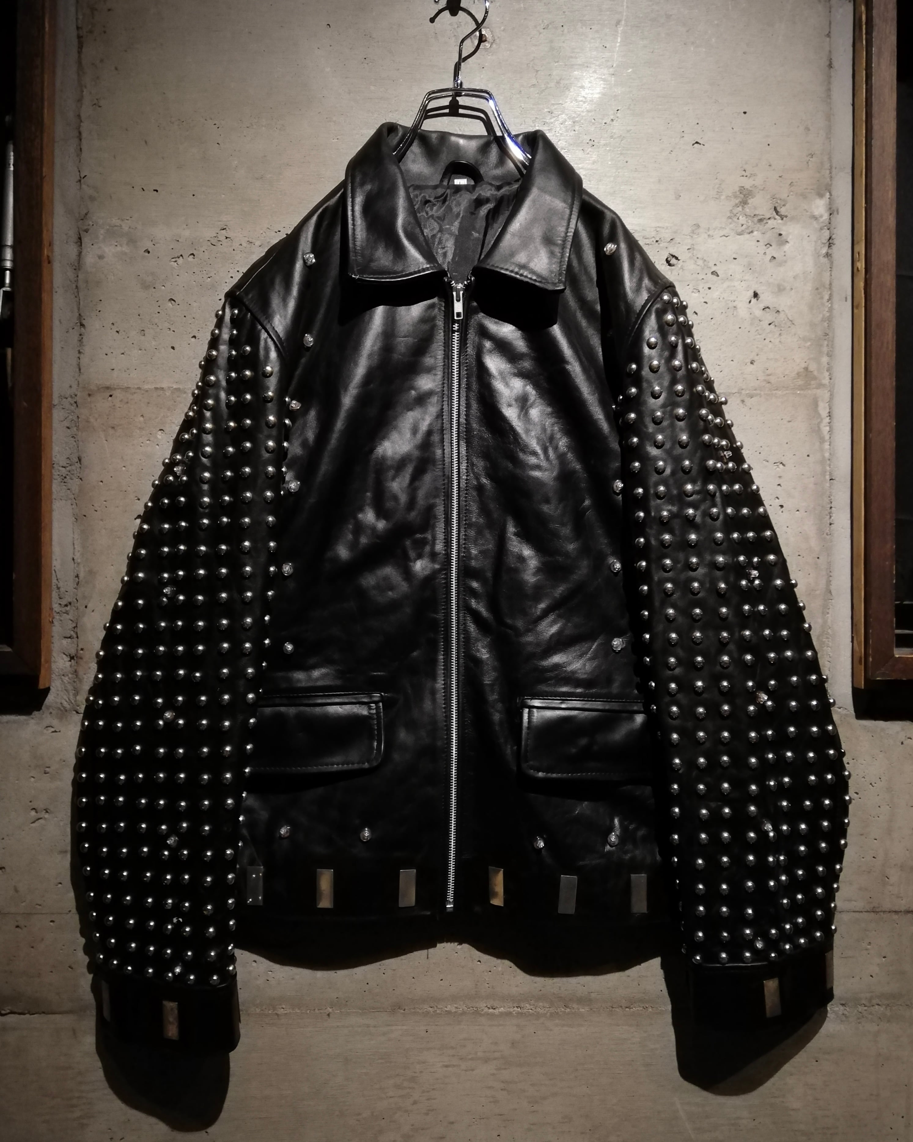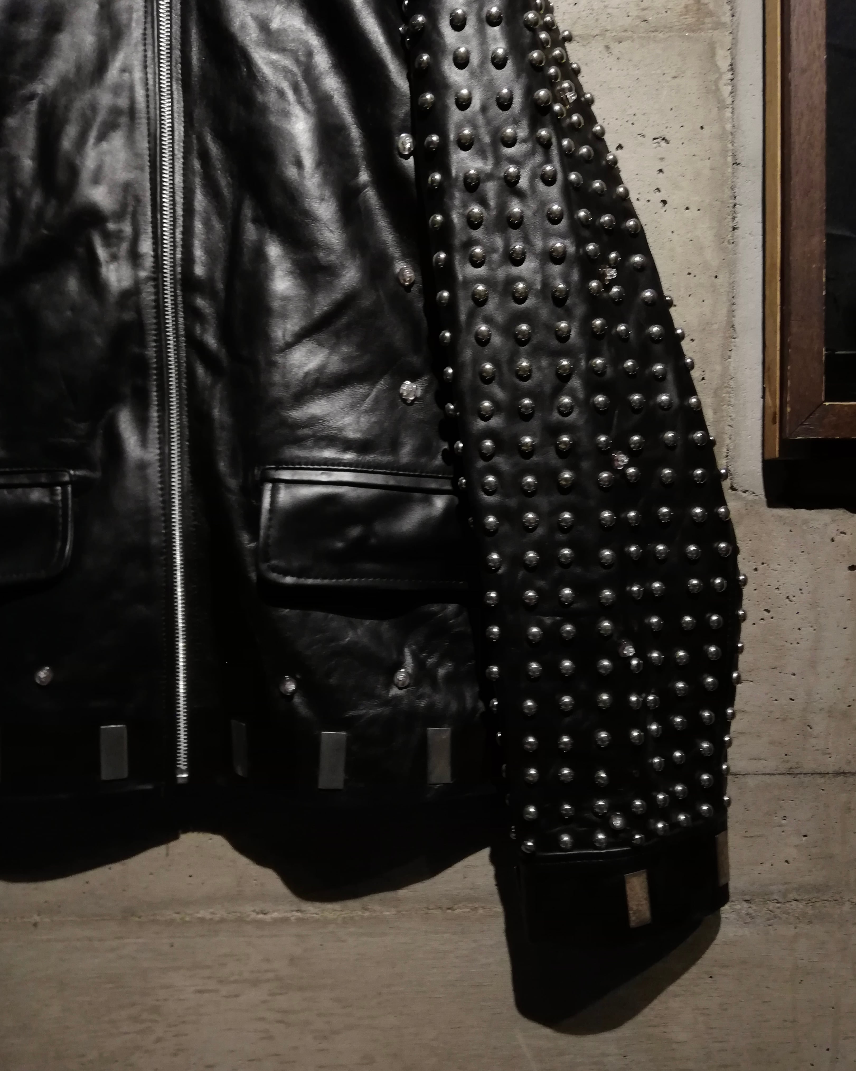 上質なレザー本来の質感や、スタッズの鈍い輝きが重なり合いさらに奥行きのある表情を見せるのも大きな魅力。まさに唯一無二、スタイリングの主役を張るに相応しいスペシャルな1着です。