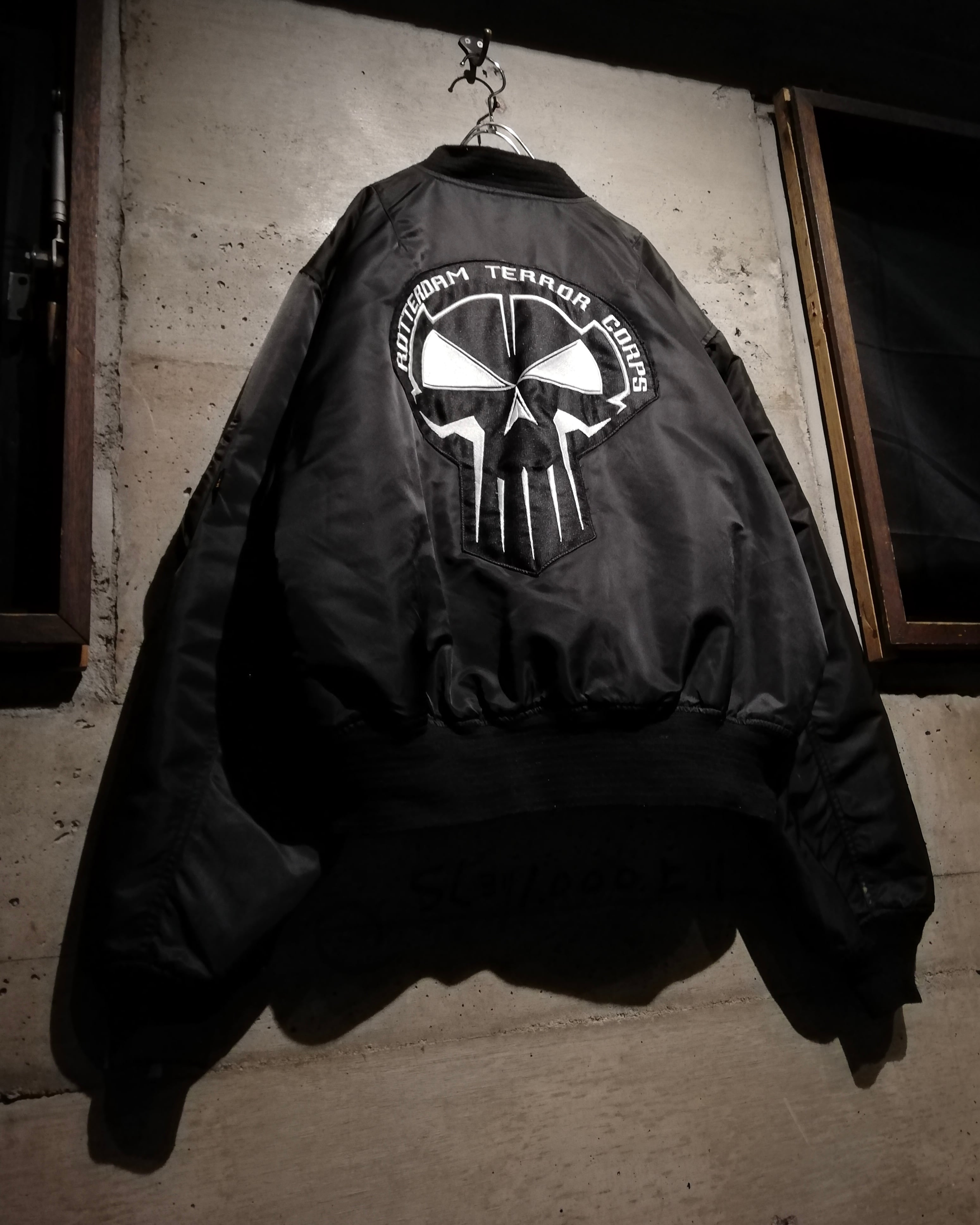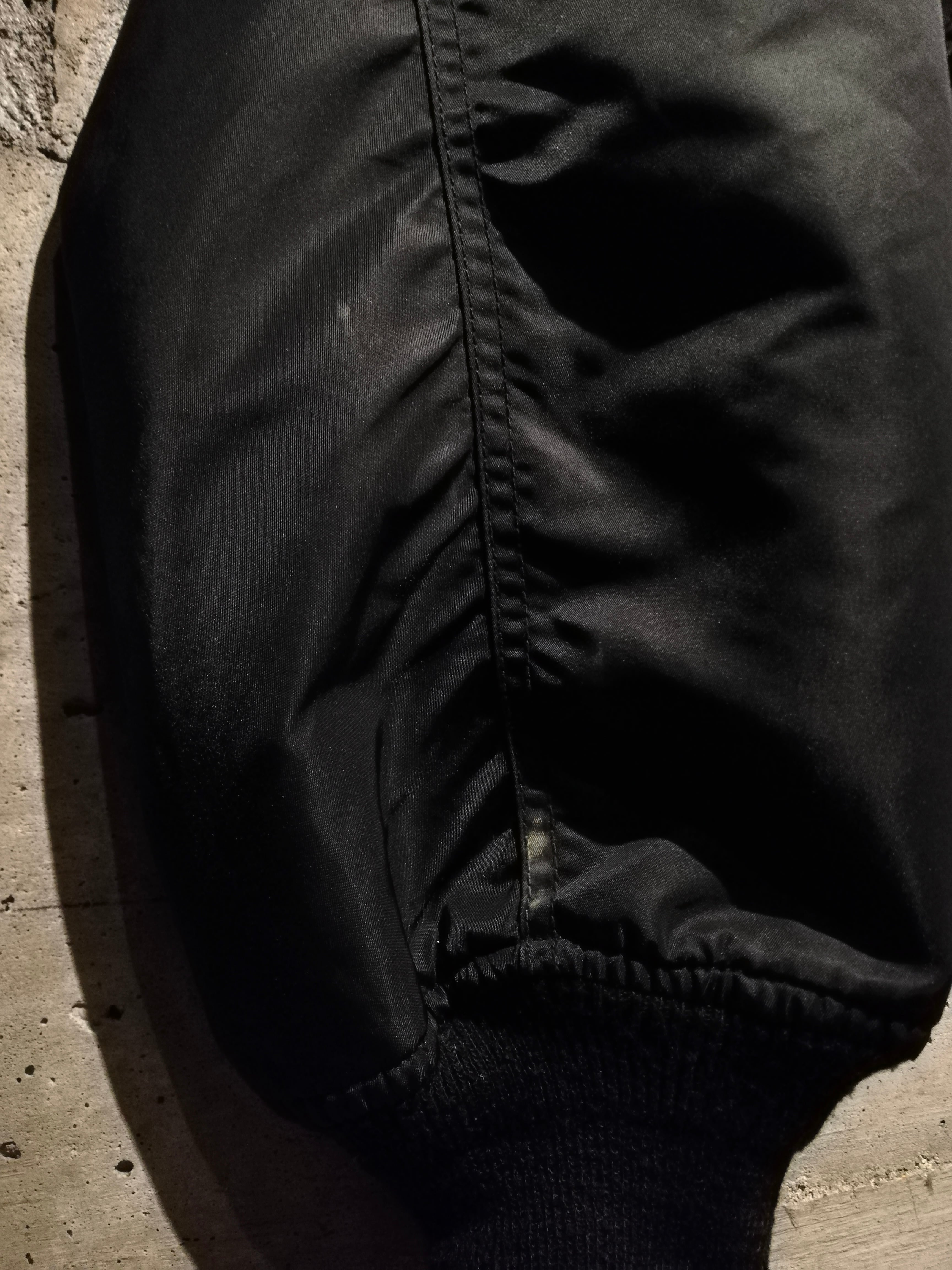 ボンバー本来のミリタリーの匂いに、90年代のハードコアテクノ/ガバというアンダーグラウンドなバックカルチャーが絶妙にミックスされた、古着としての魅力をヒシヒシと感じさせる仕上がり。