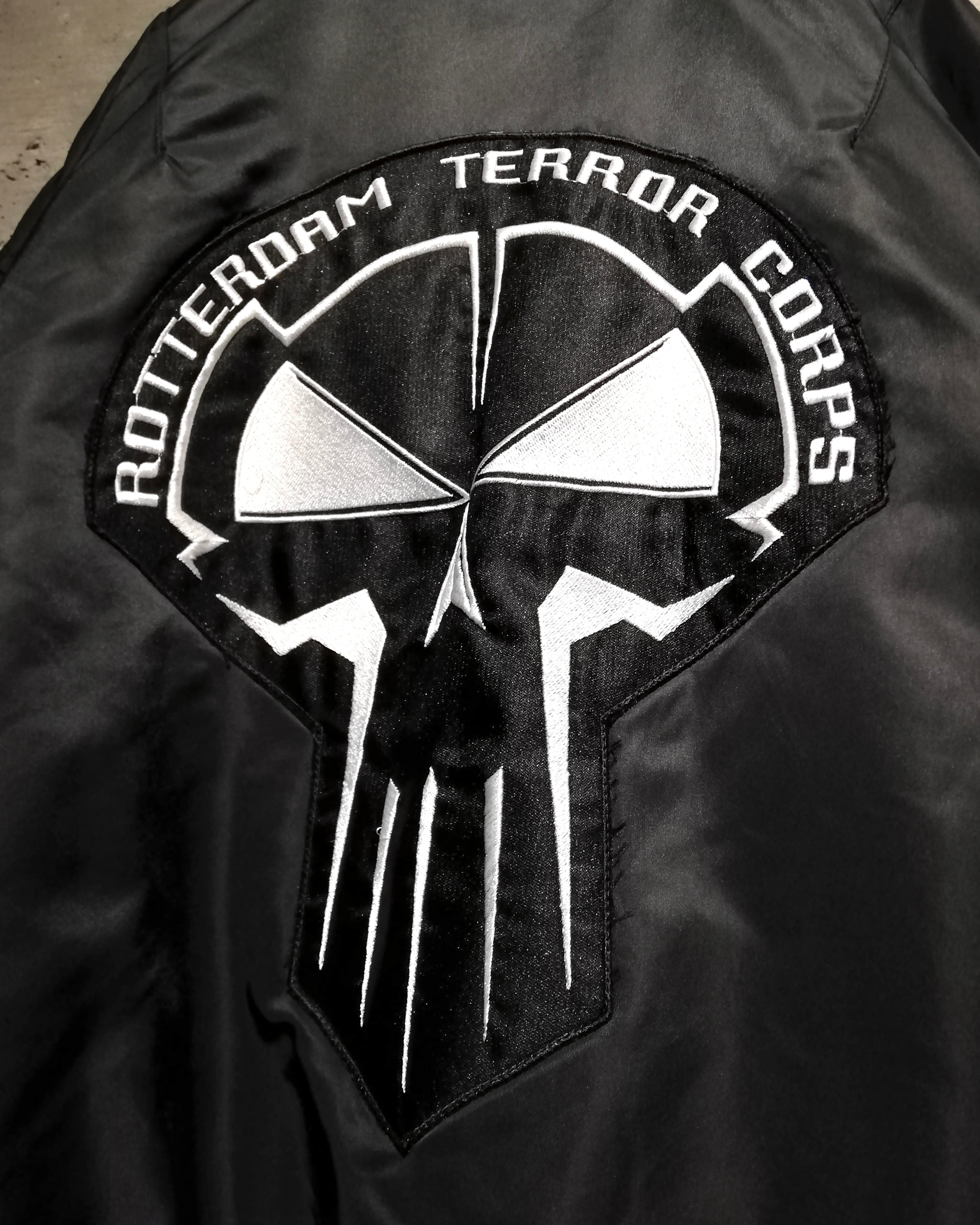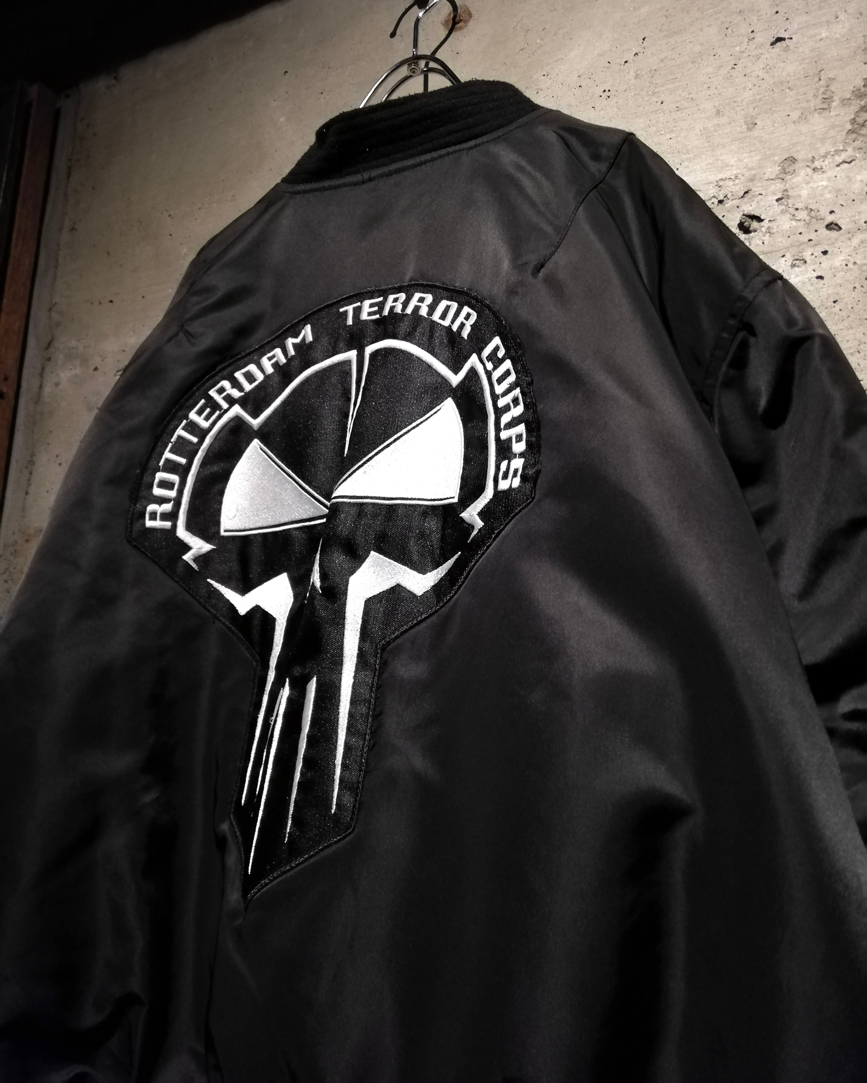 90年代ヨーロッパを中心に広がったアンダーグラウンドカルチャー、ハードコアテクノ・ガバシーン。そんな中、1993年に組織されたオランダのガバグループであり、ハードコアテクノのパイオニアの名を冠する“Rotterdam Terror Corps”のスペシャルな1着をご紹介いたします。