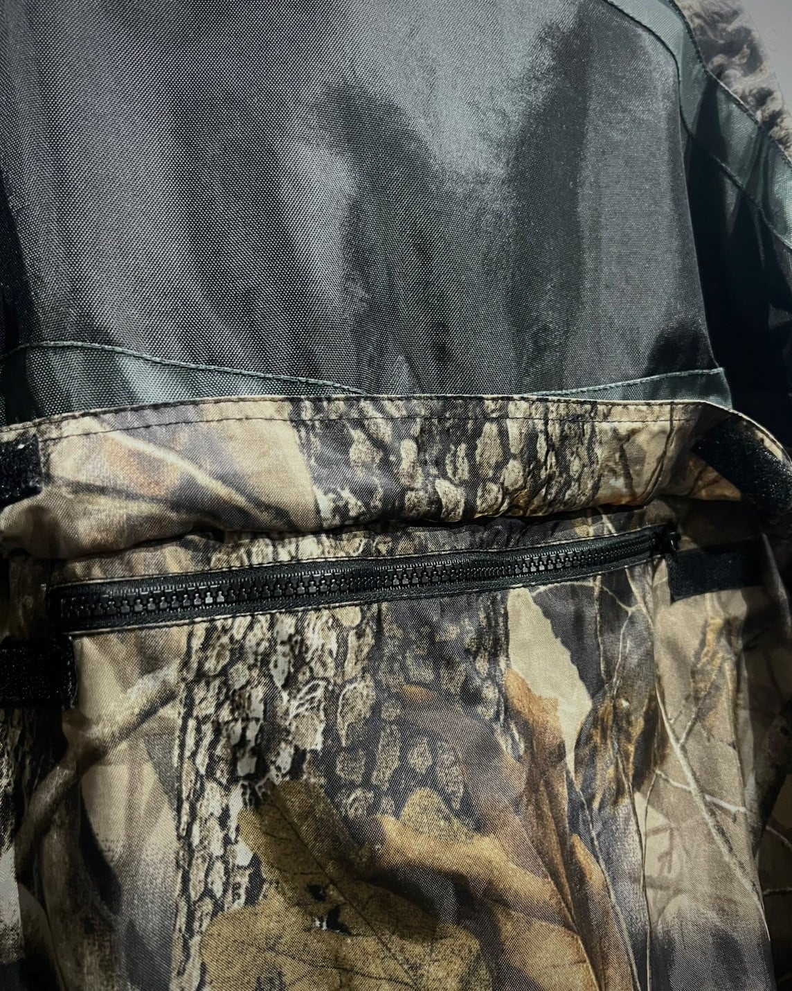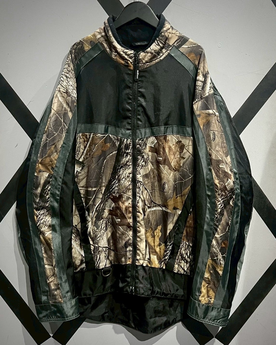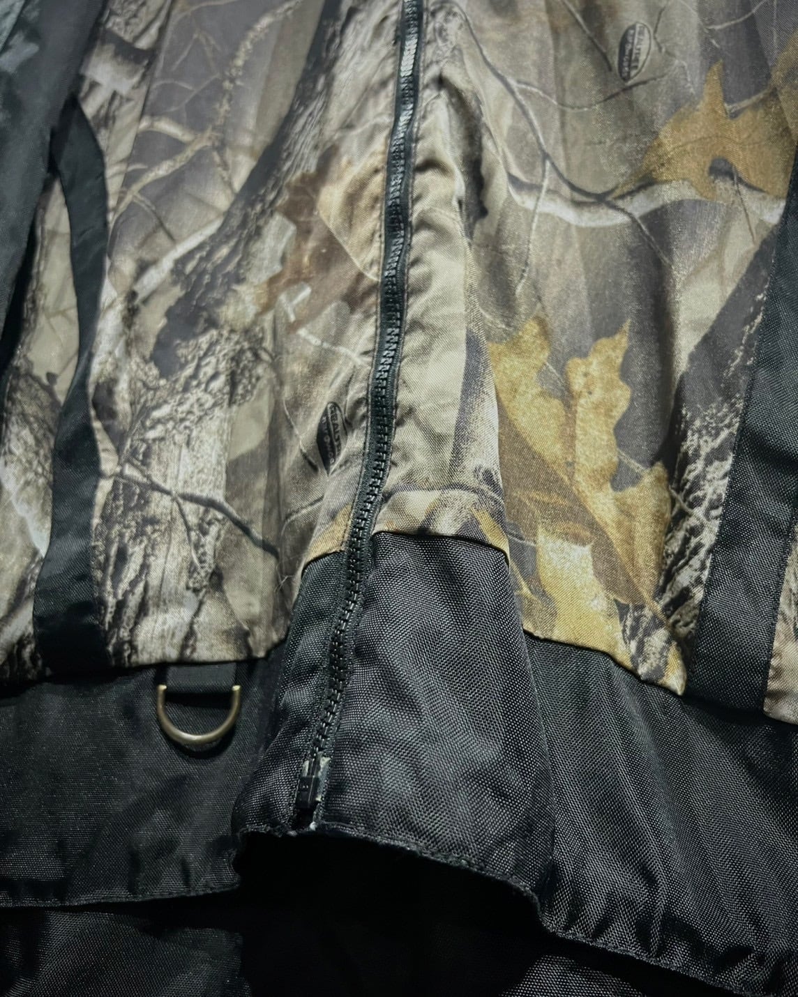 リアルツリーカモのリアルなプリントがインパクトを放ちつつ、切り替えにブラックの無地を合わせることで、都会的な印象もプラス。