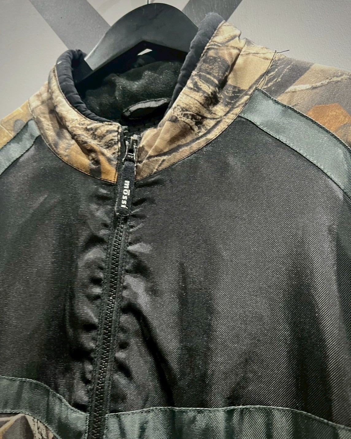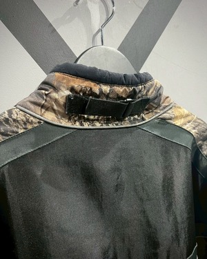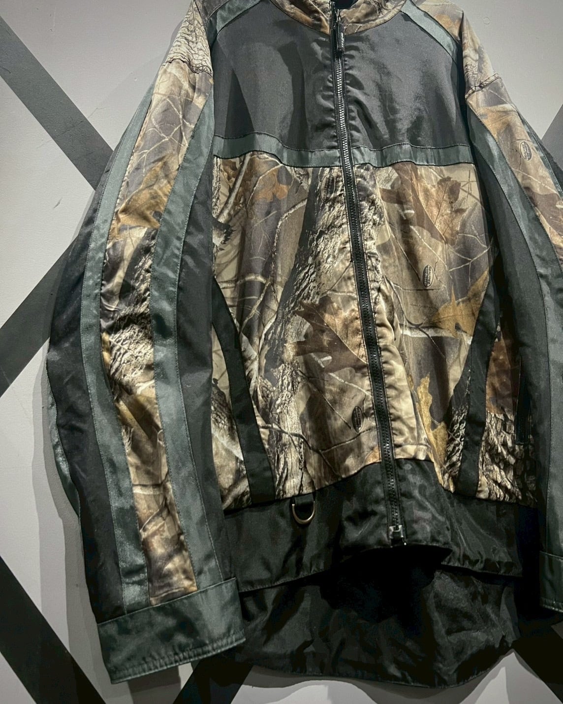 リアルツリーカモはハンティングやミリタリーのイメージが強いですが、本作はモーターサイクルジャケットのディテールと掛け合わせることで、Mix感のあるハイなデザインに仕上げられています。