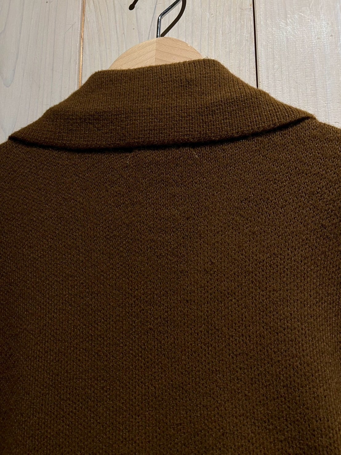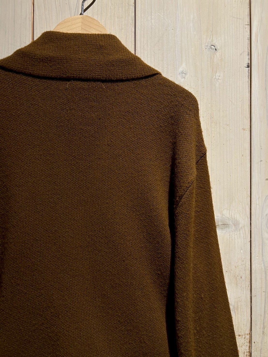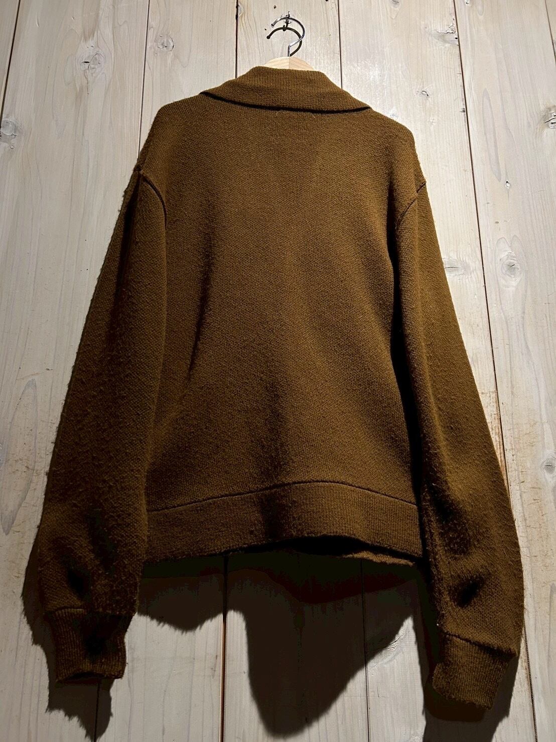 ウールライクな肉厚ニットがベースとなっており、保温性はもちろん、動きやすさも確保。ジャケットとしての存在感を持ちながらも、カーディガンのように気軽に羽織れるバランスが絶妙です。さらにコンディションも良好で、レザー部分の質感やボタンの風合いも当時の雰囲気を色濃く残しています。