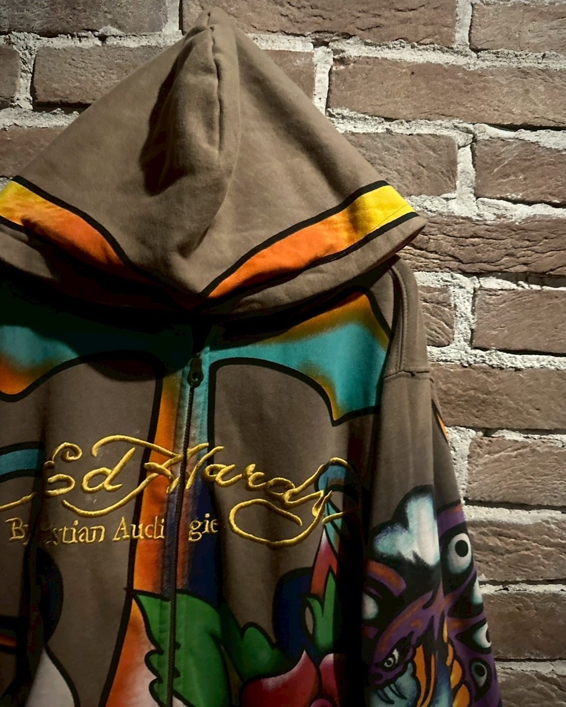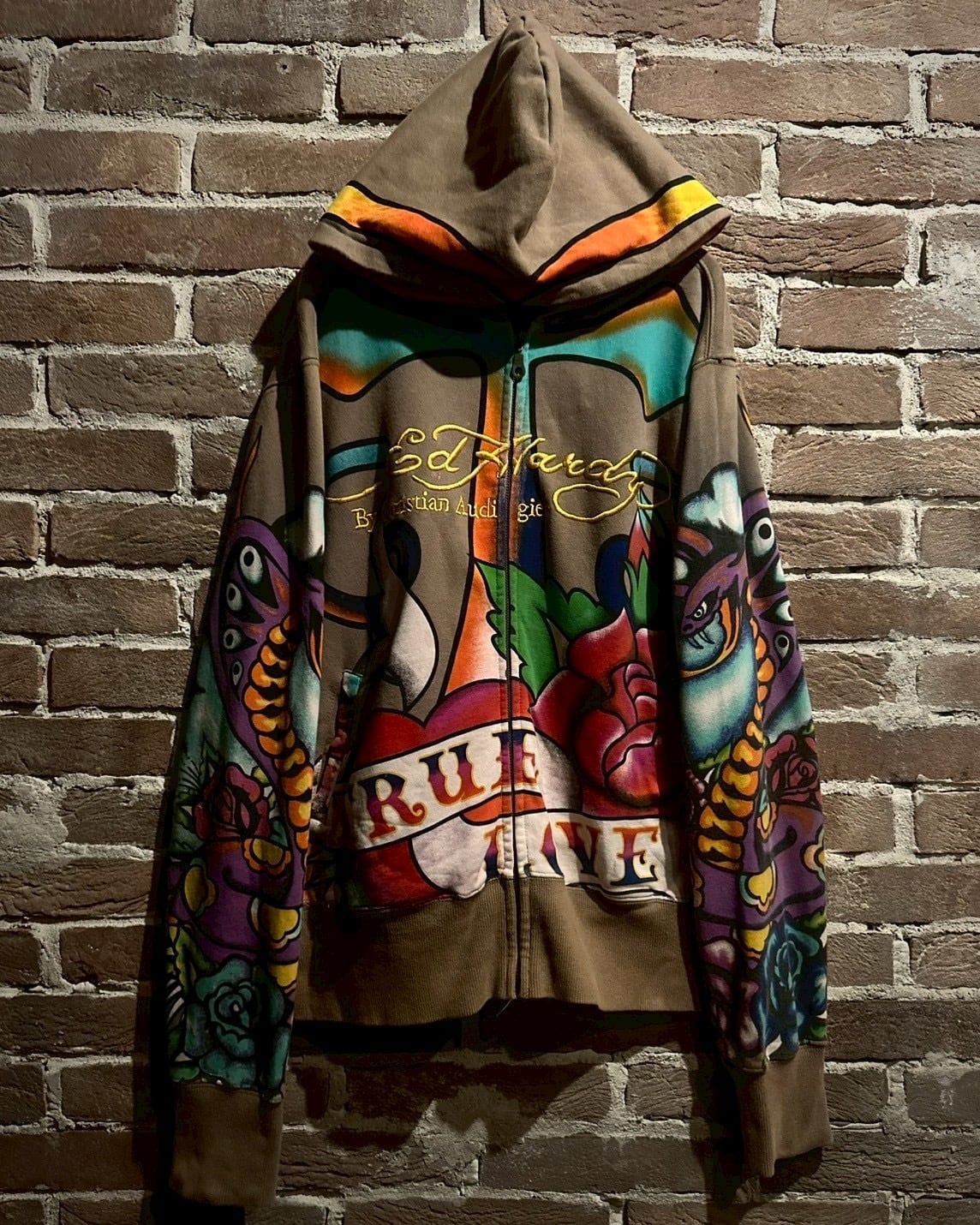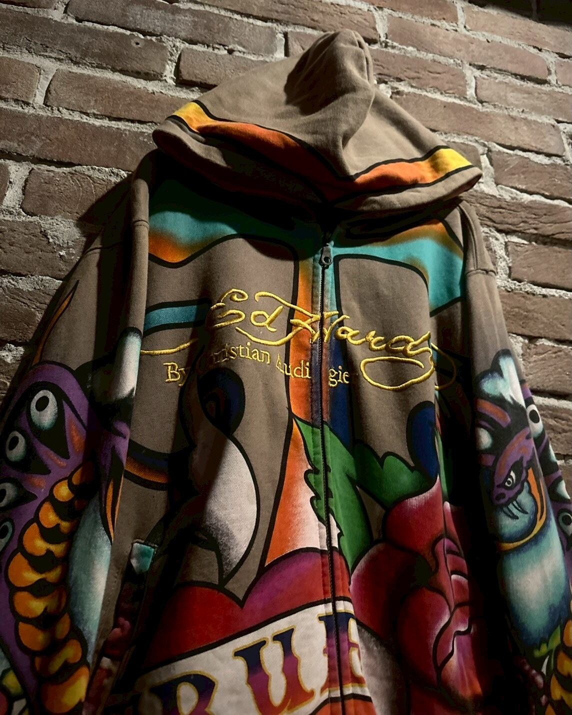 2000年代初頭にタトゥーアーティストの"エド・ハーディー"とフランス人デザイナー"クリスチャン・オードジェー"のタッグによって誕生した”Ed Hardy”より、ブランドらしさ全開のジップフーディーをご紹介いたします。