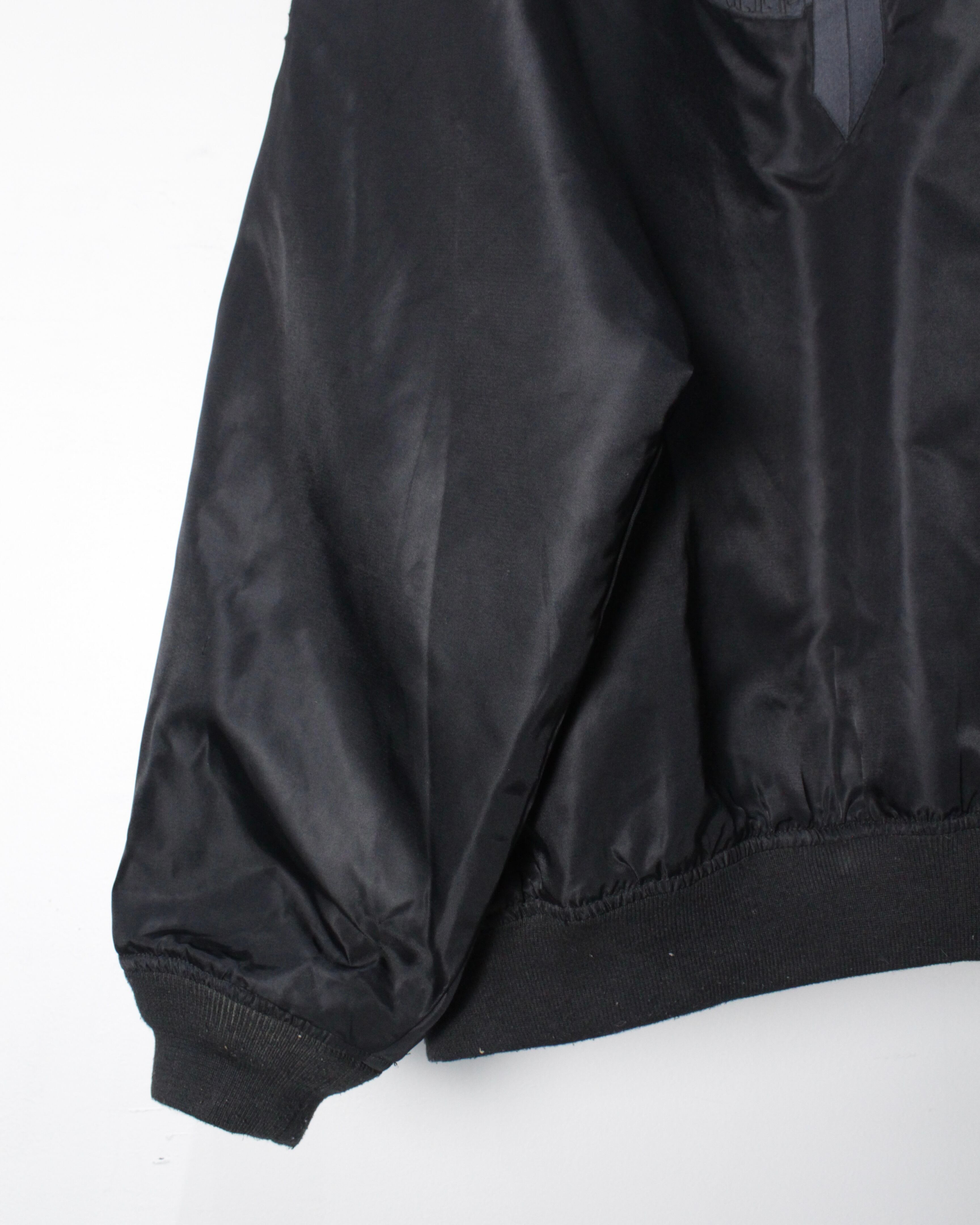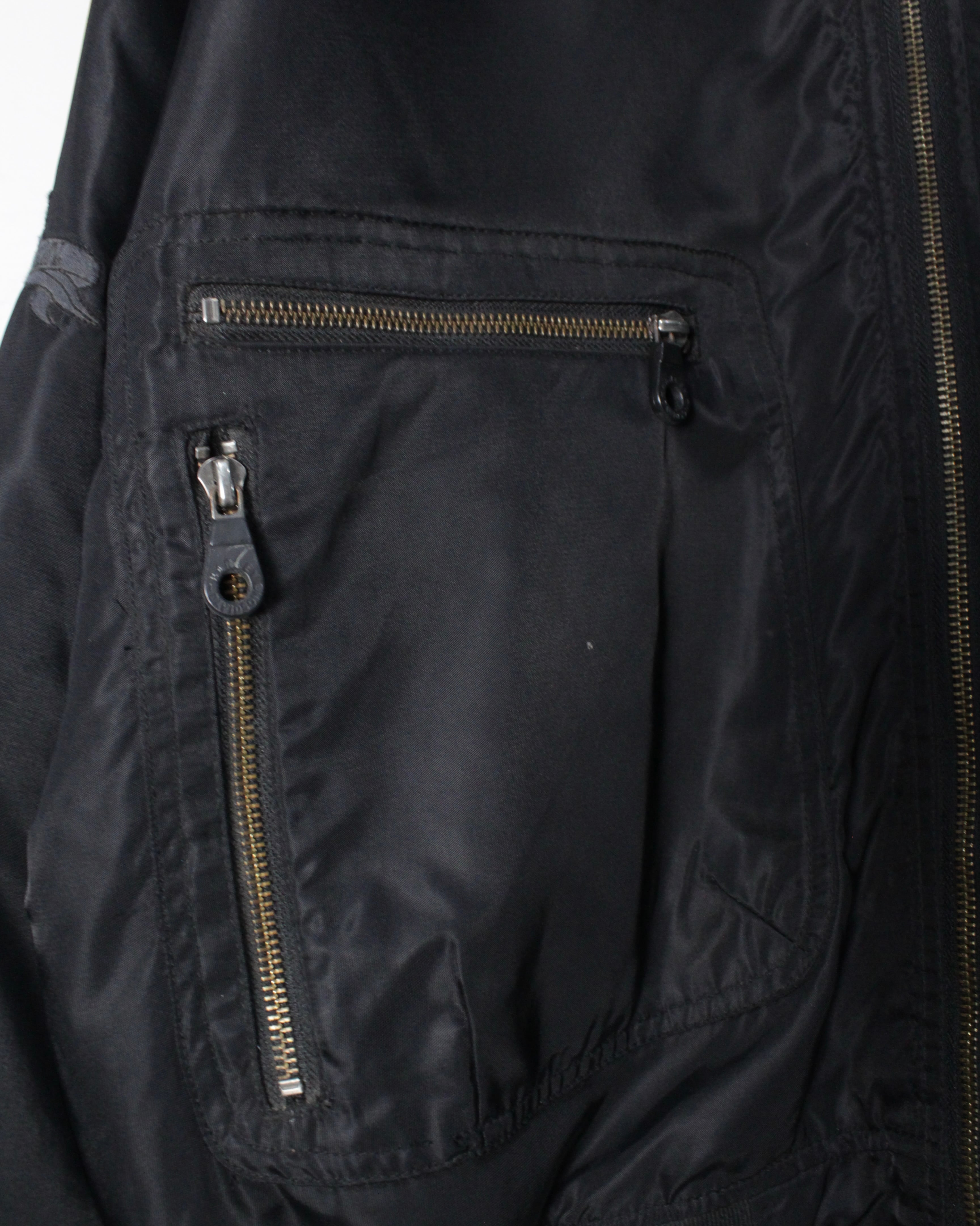 タフなナイロン素材を採用し、程よい光沢と耐久性を備え、複数のジップポケットで実用性も兼備。デニムやレザーパンツとの相性はもちろん、シンプルなスタイリングに羽織るだけでも主役級の存在感を発揮します。