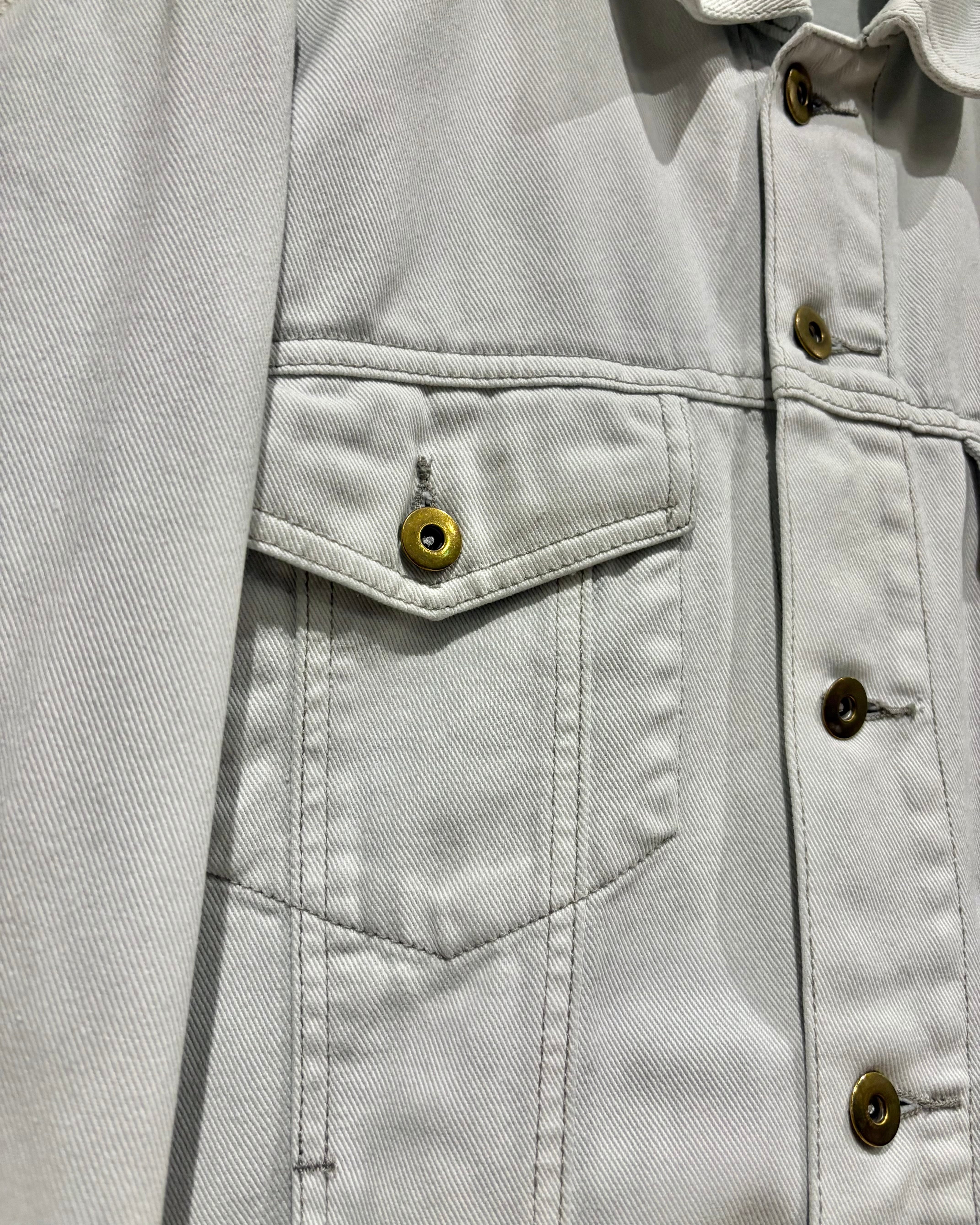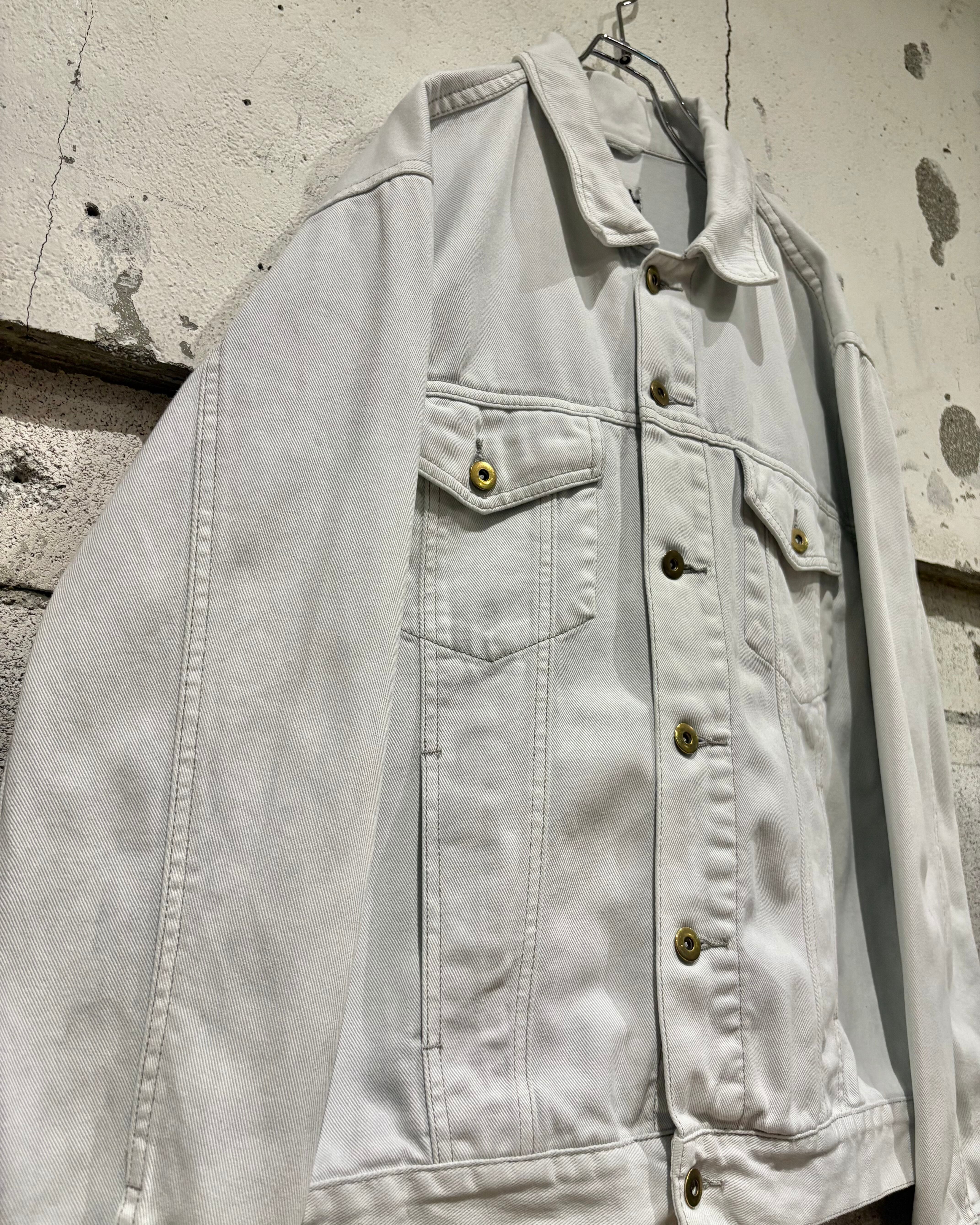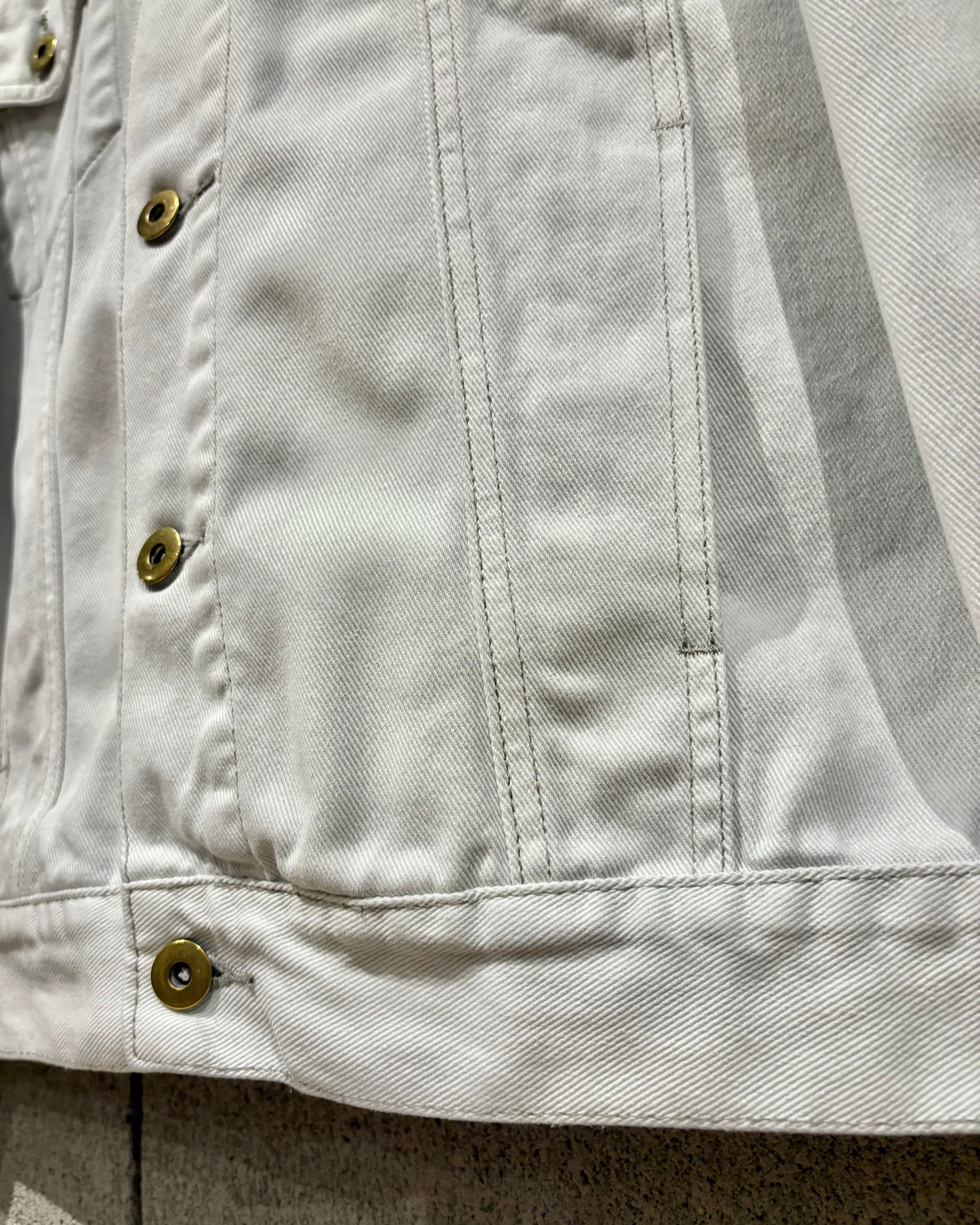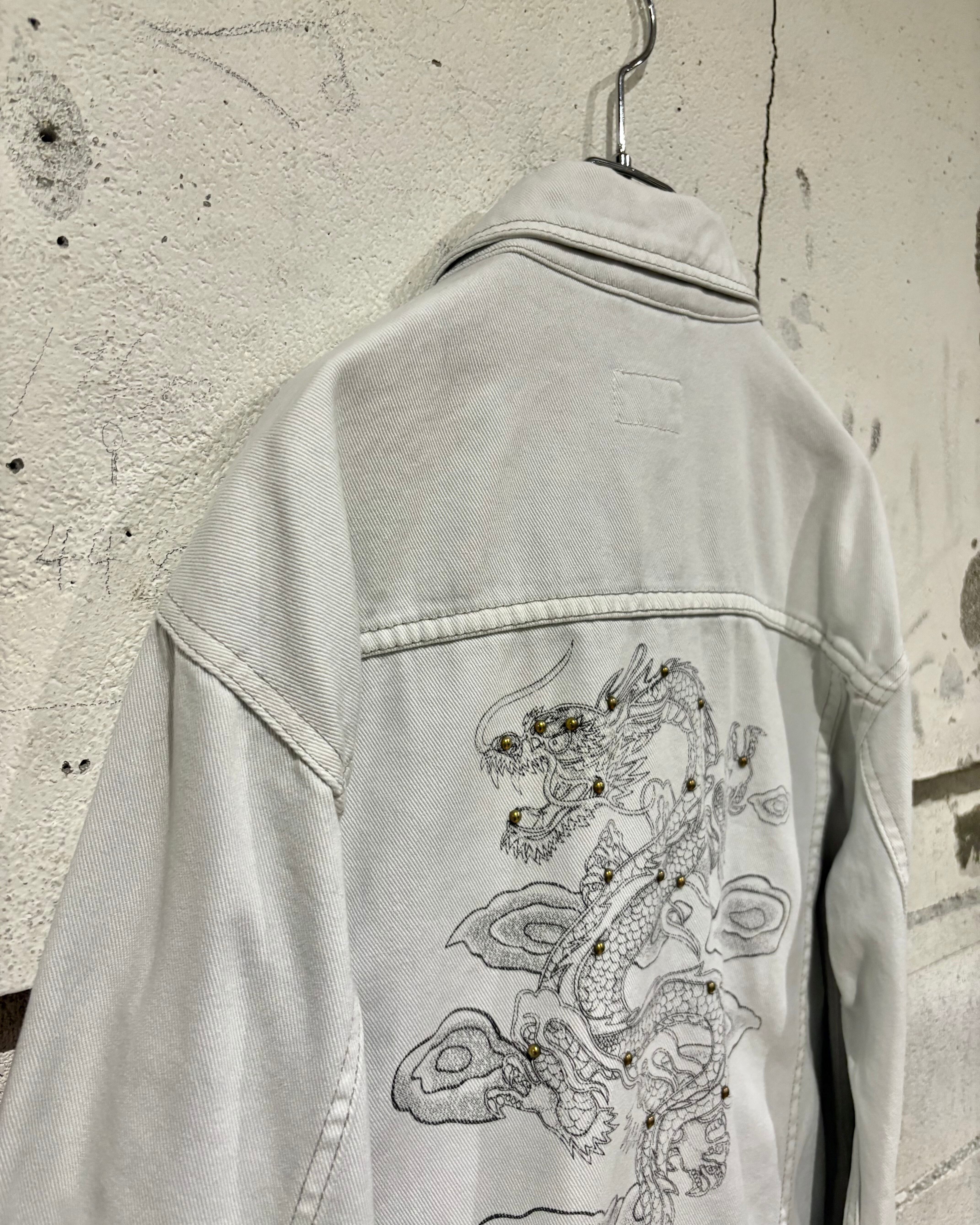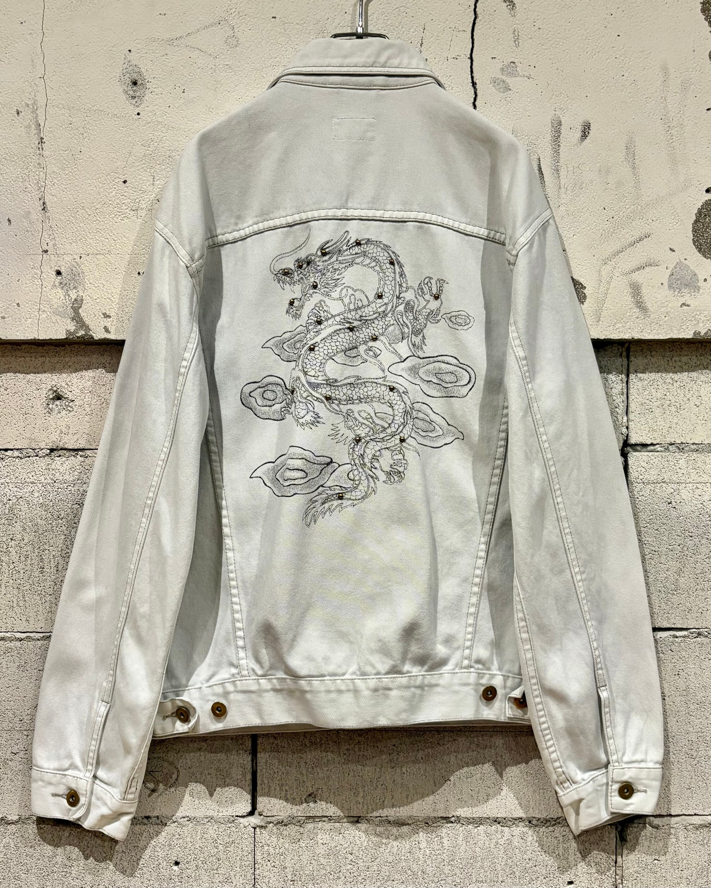 トラッカー型のボディに、背面に龍をのデザインを載せたホワイトデニムジャケット。