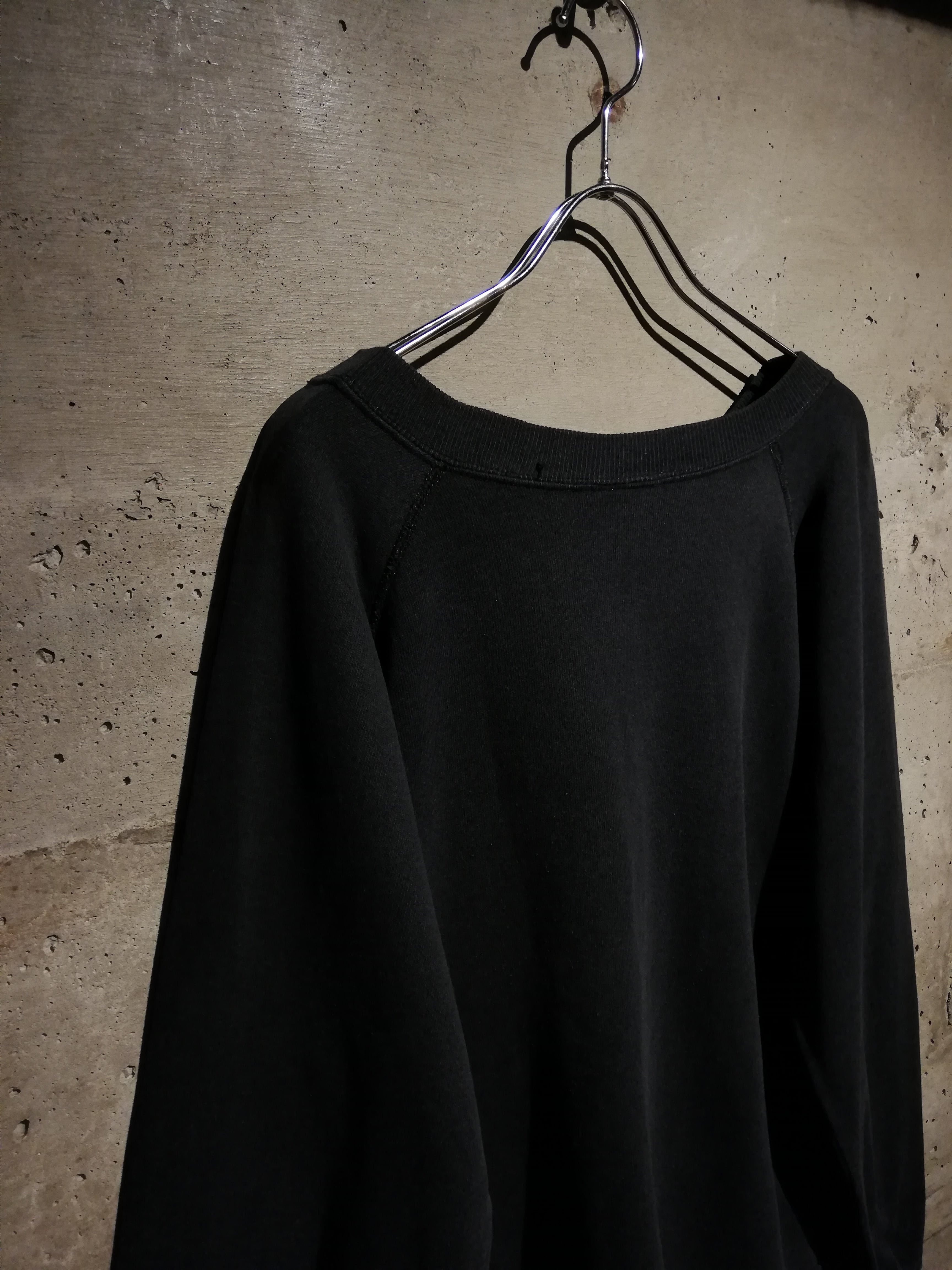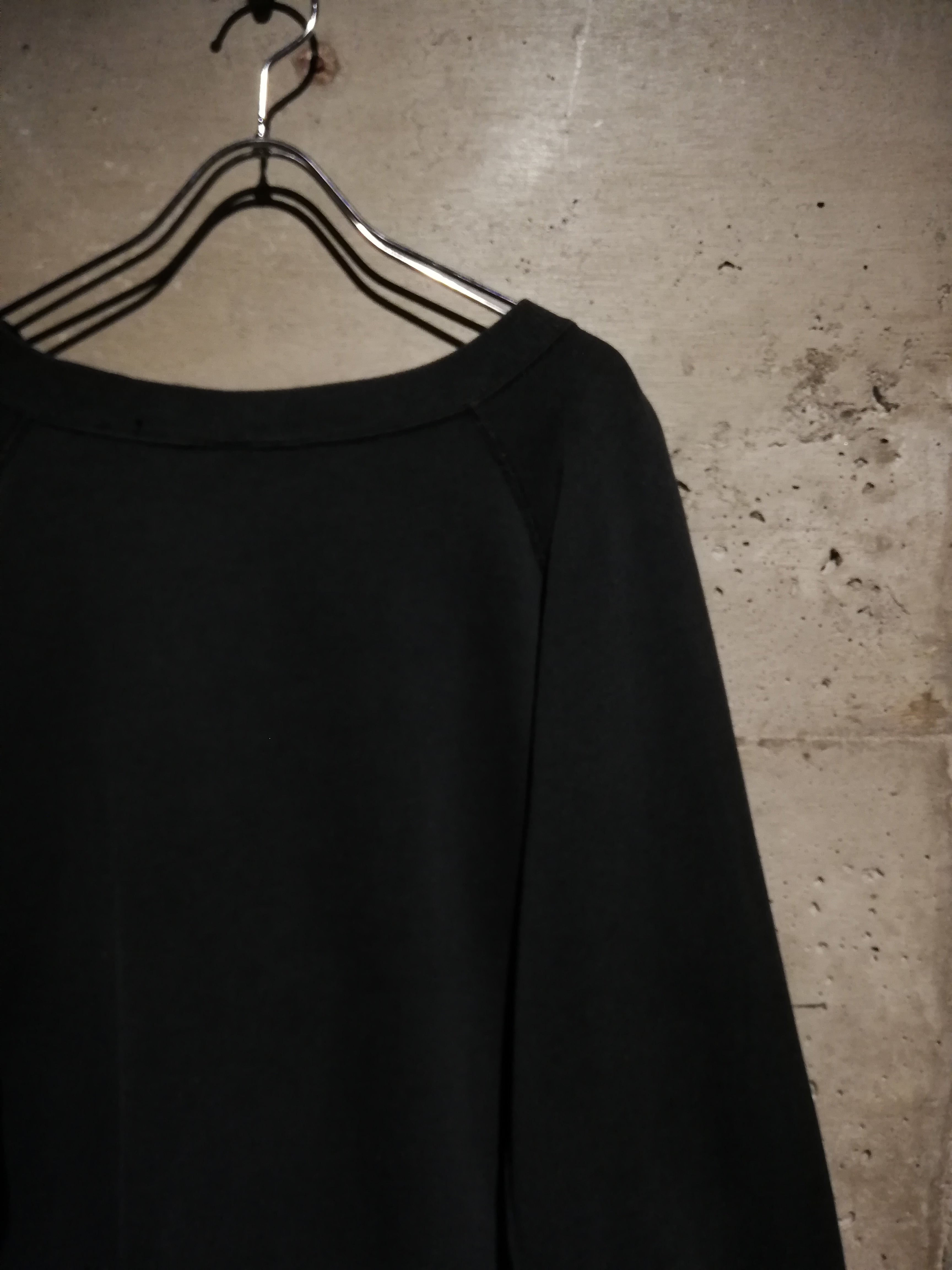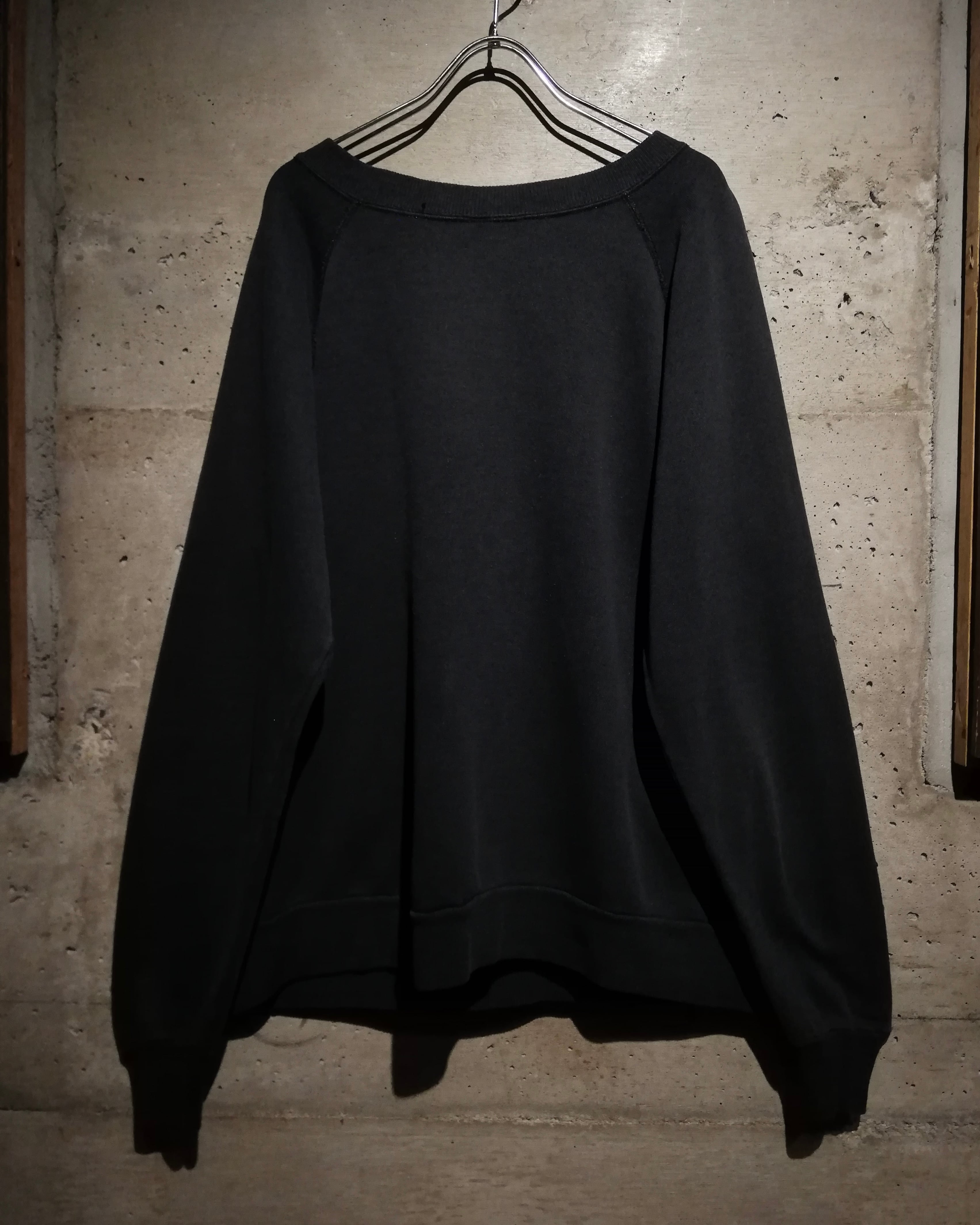 フェードした墨黒カラーと程よくヤレ感のあるボディとも相まって漂うヴィンテージらしい雰囲気も◎ラグランスリーブ仕様のため肩回りもリラックスして着用でき、ストリートなスタイリングからルーズな古着コーデまで幅広くご着用いただけます。