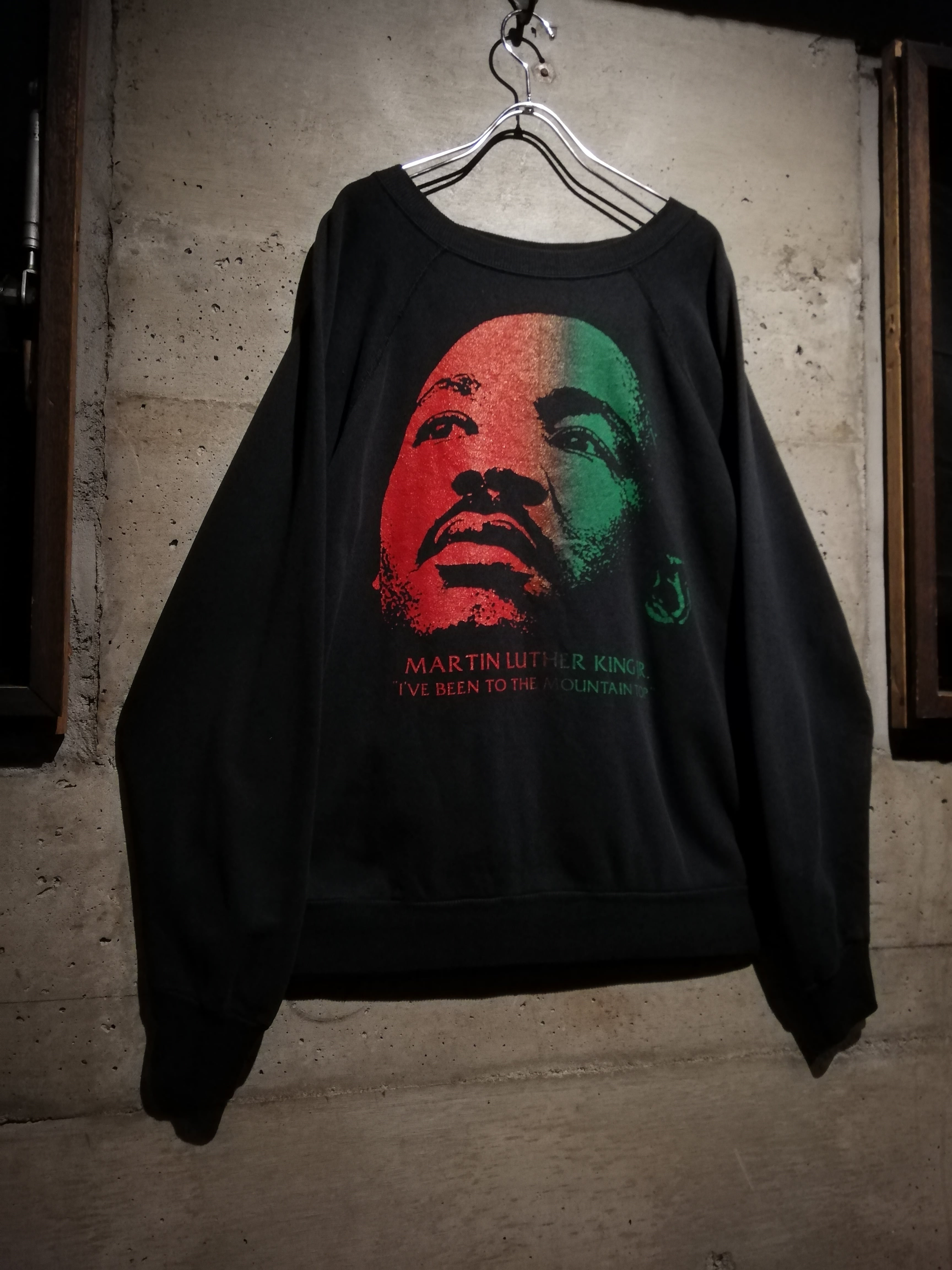 公民権運動の象徴的人物、“Martin Luther King Jr.”をフロントに大きくプリントした80年代のスウェット。