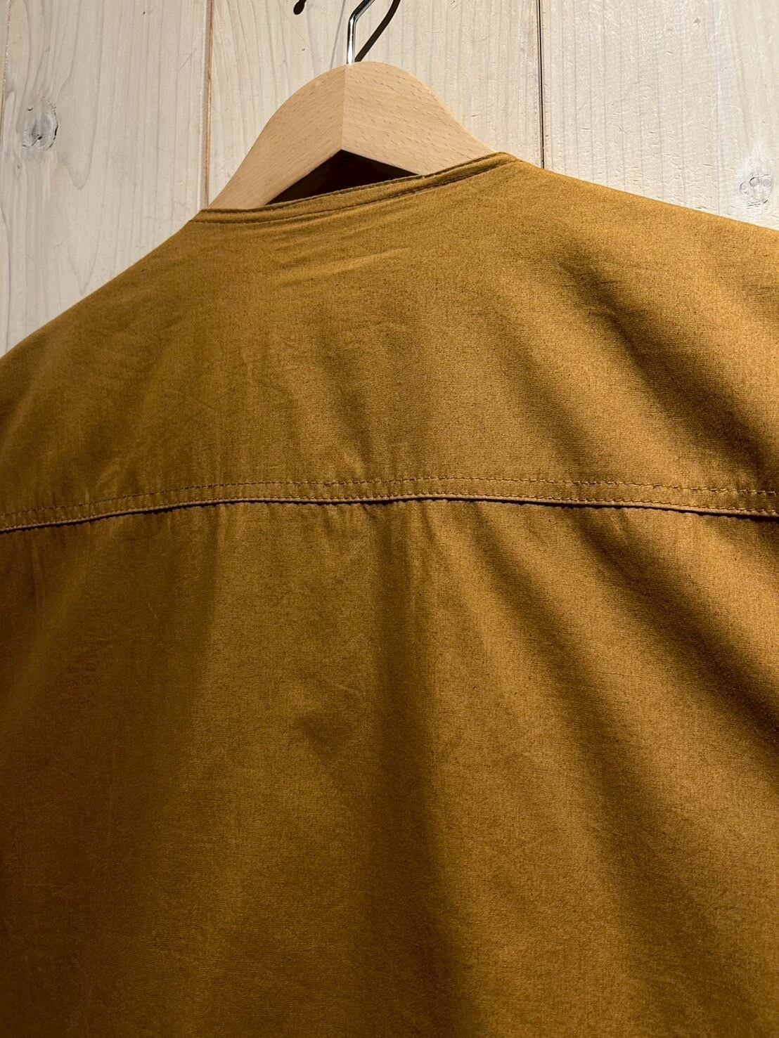 ライトブラウンの柔らかいスエードレザーを贅沢に使用し、フロントには大容量のフラップポケットを4つ搭載。実用性とデザイン性を兼ね備えたディテールが光る仕上がりです。ボタンには落ち着いた艶感を持つブラウンを合わせ、全体のトーンをより上品にまとめています。