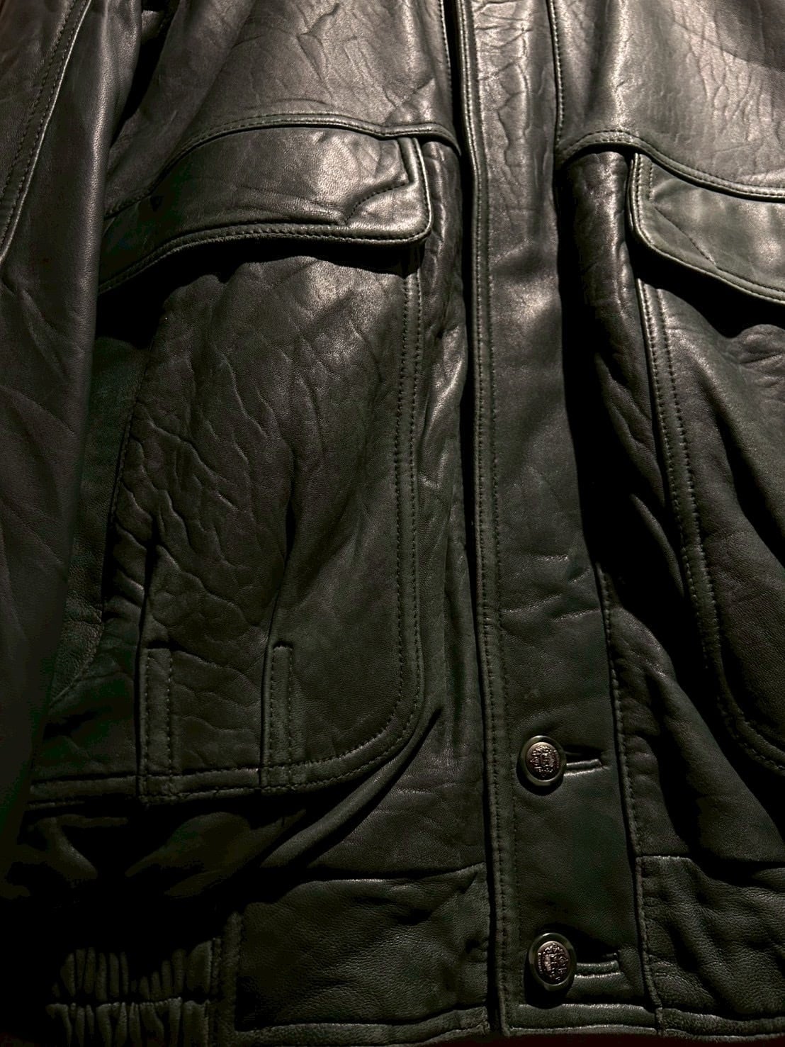 背面や袖にかけて見られるレザー特有のシボ感や経年によるアタリが、より一層雰囲気を高めており、ヴィンテージレザーならではの迫力を存分に味わえます。