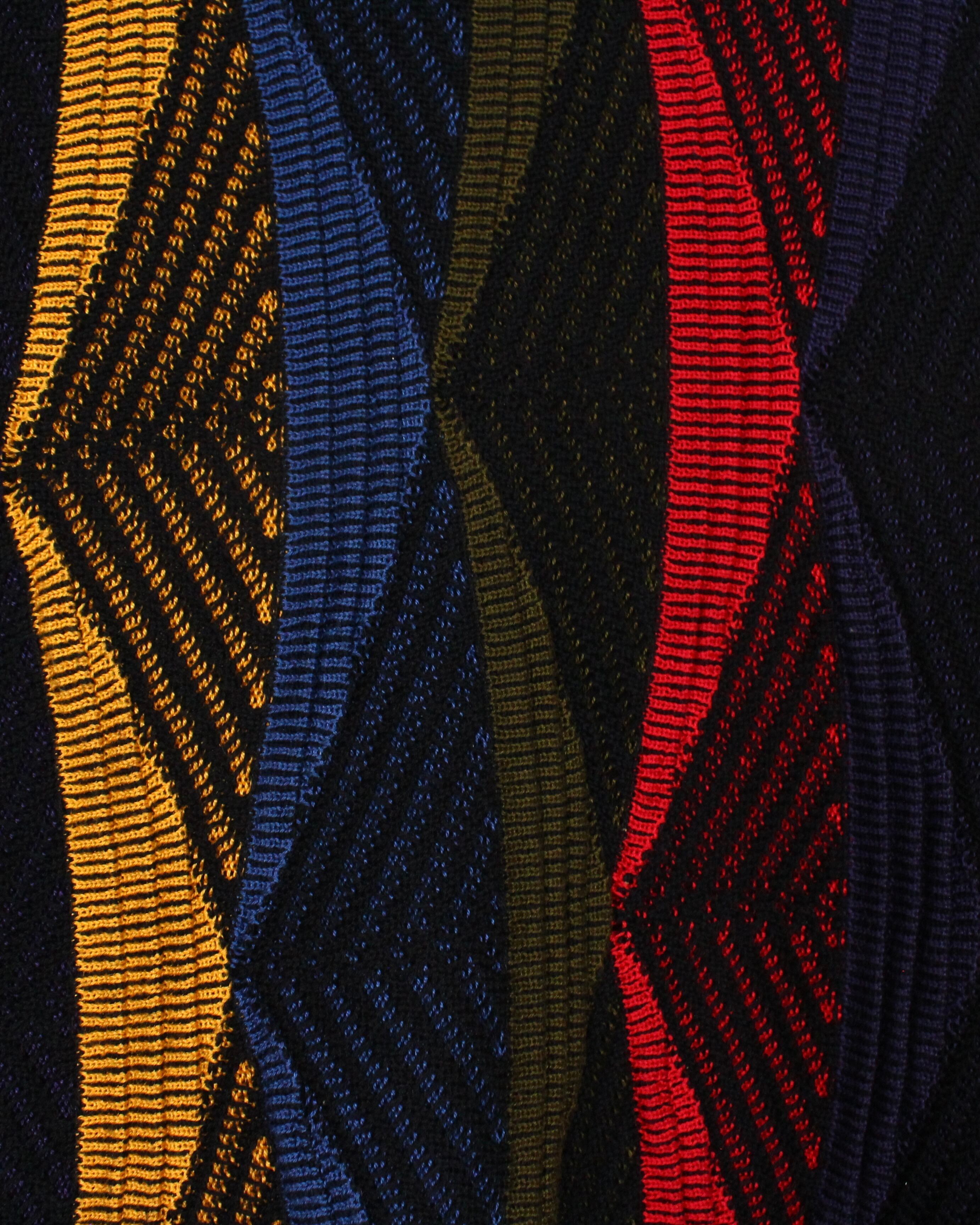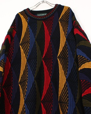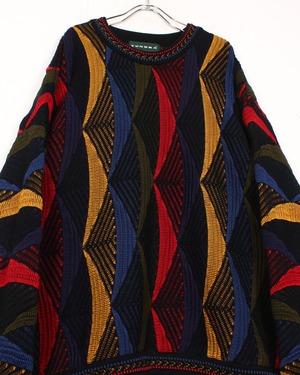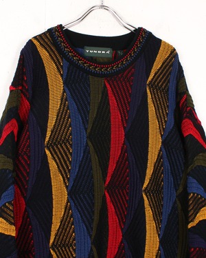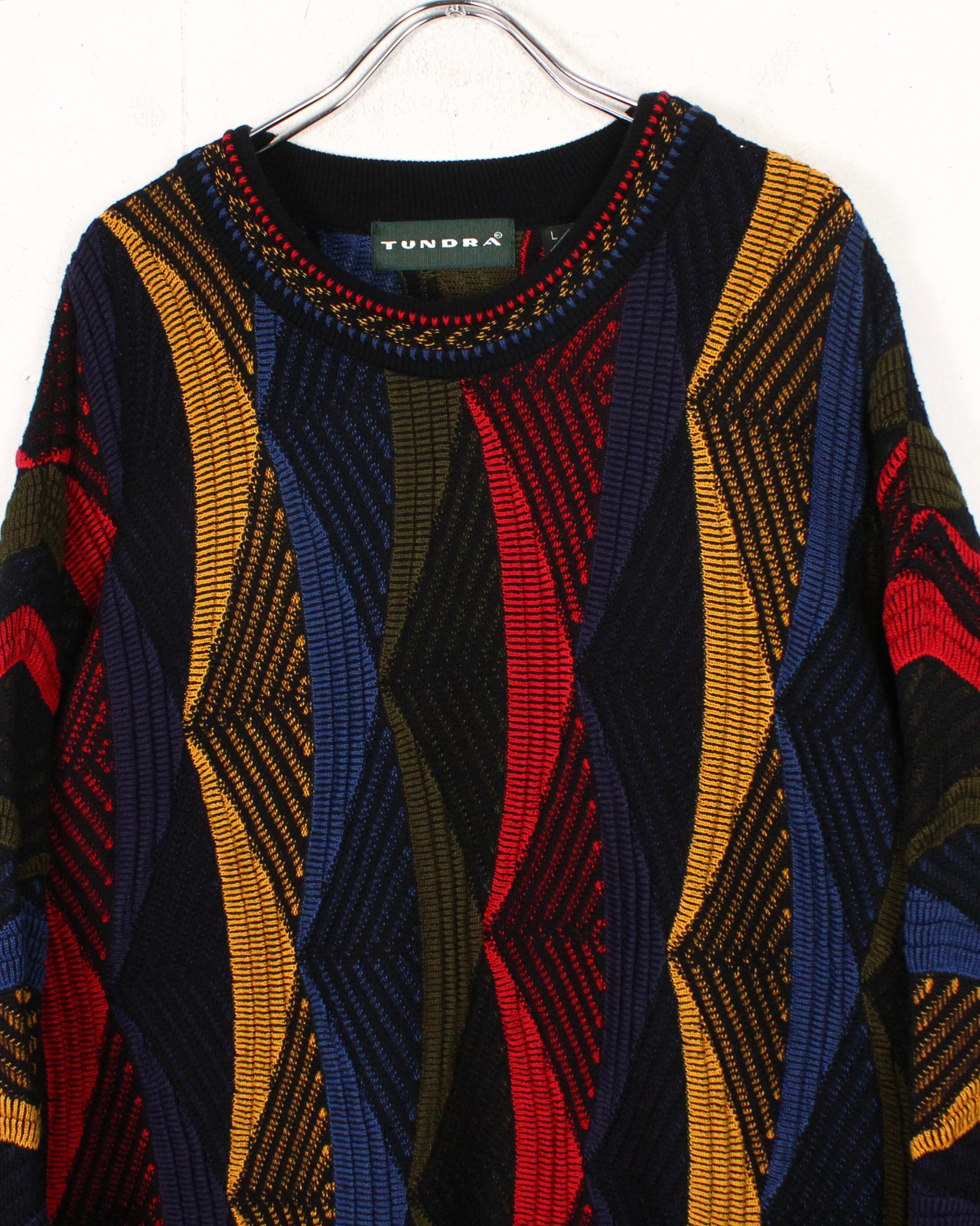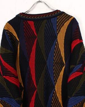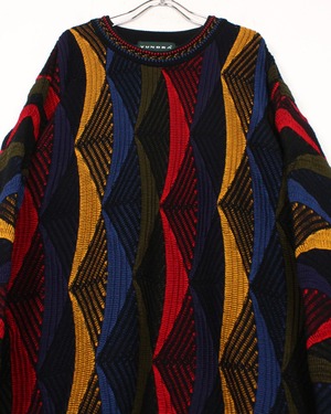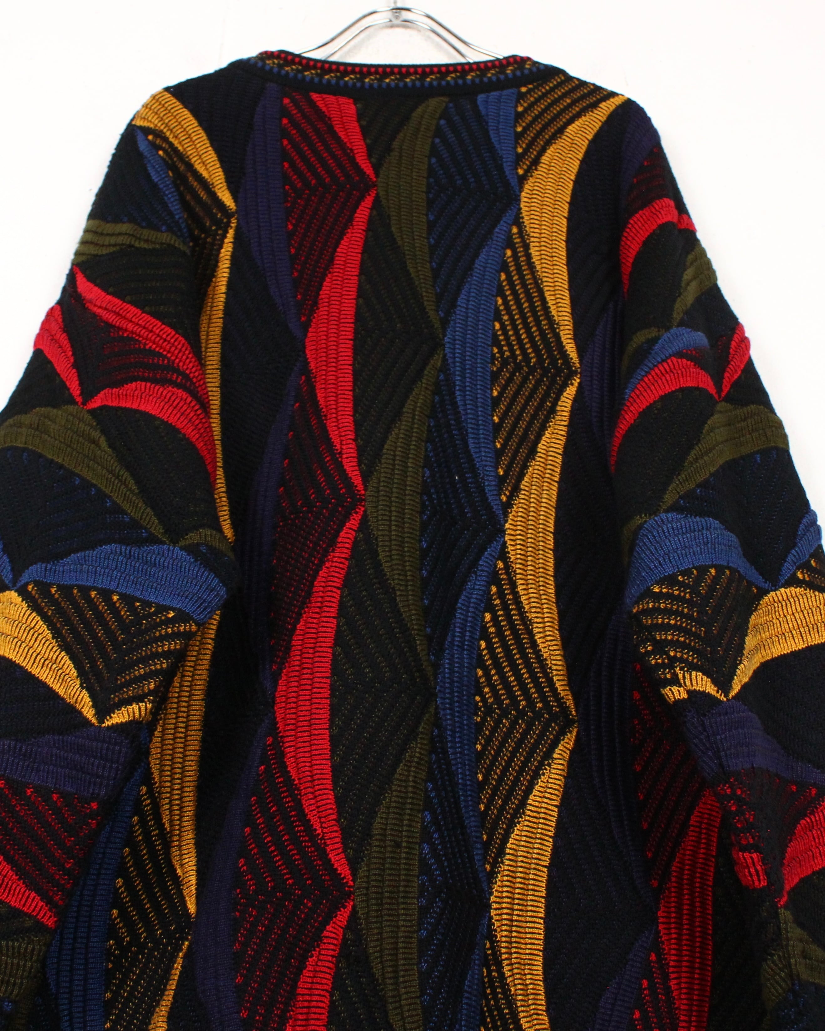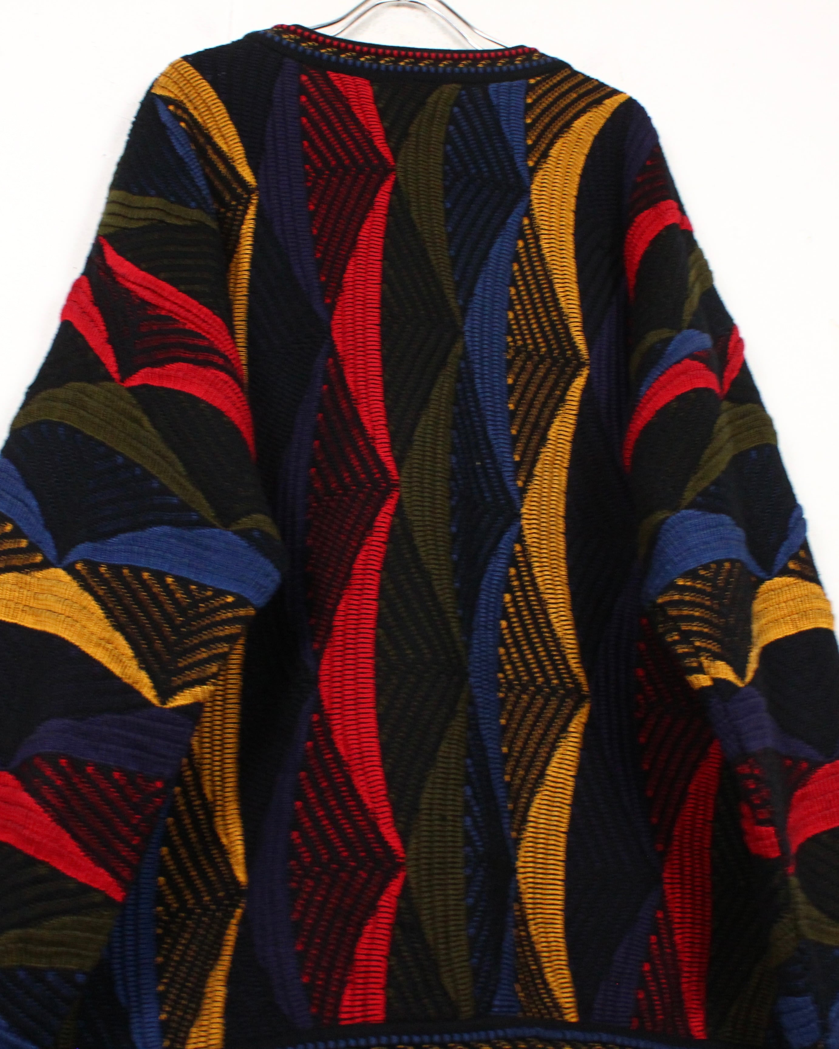 ブランドを象徴する立体的な編み地と、マルチカラーの鮮やかな配色が特徴的な3Dニット。