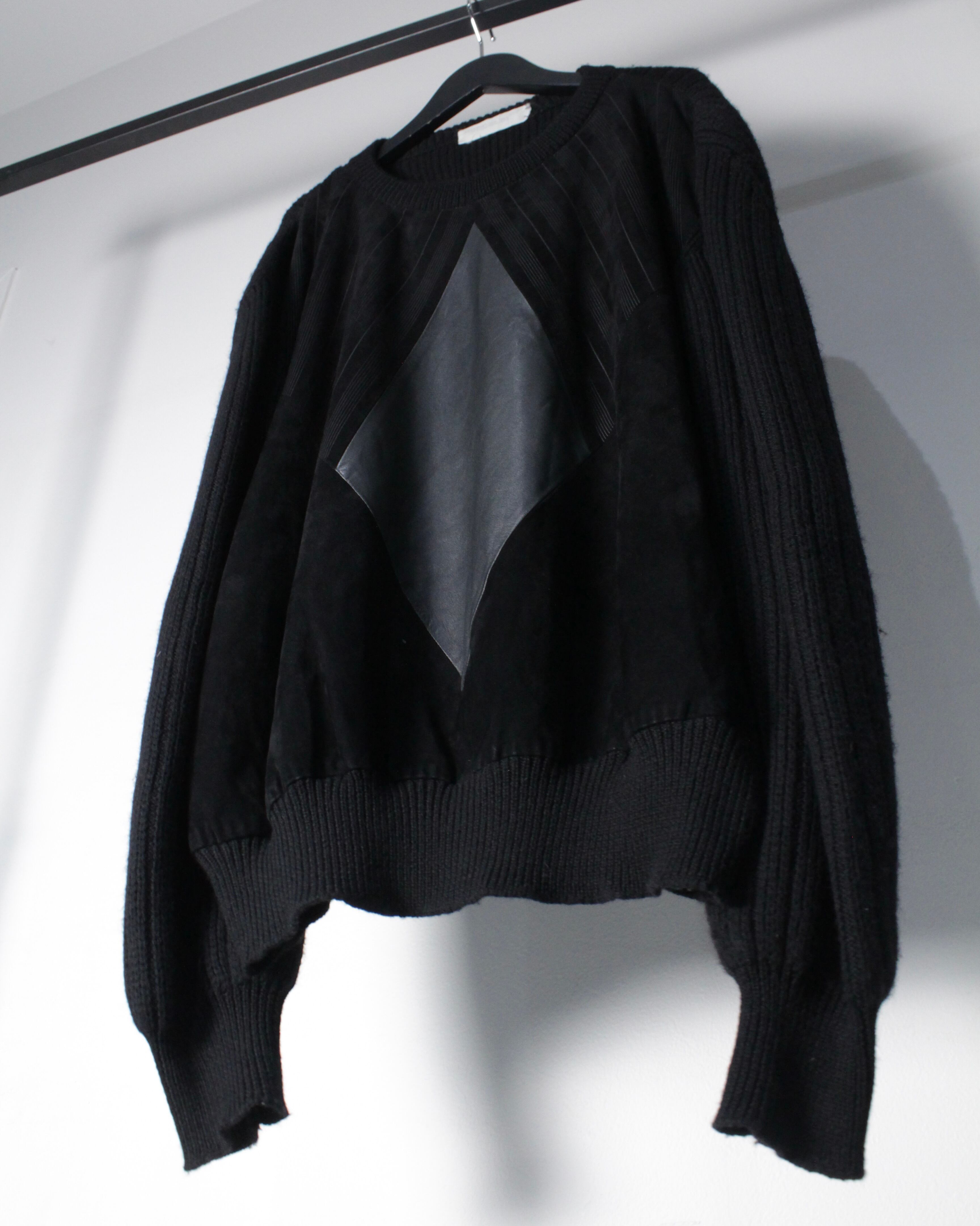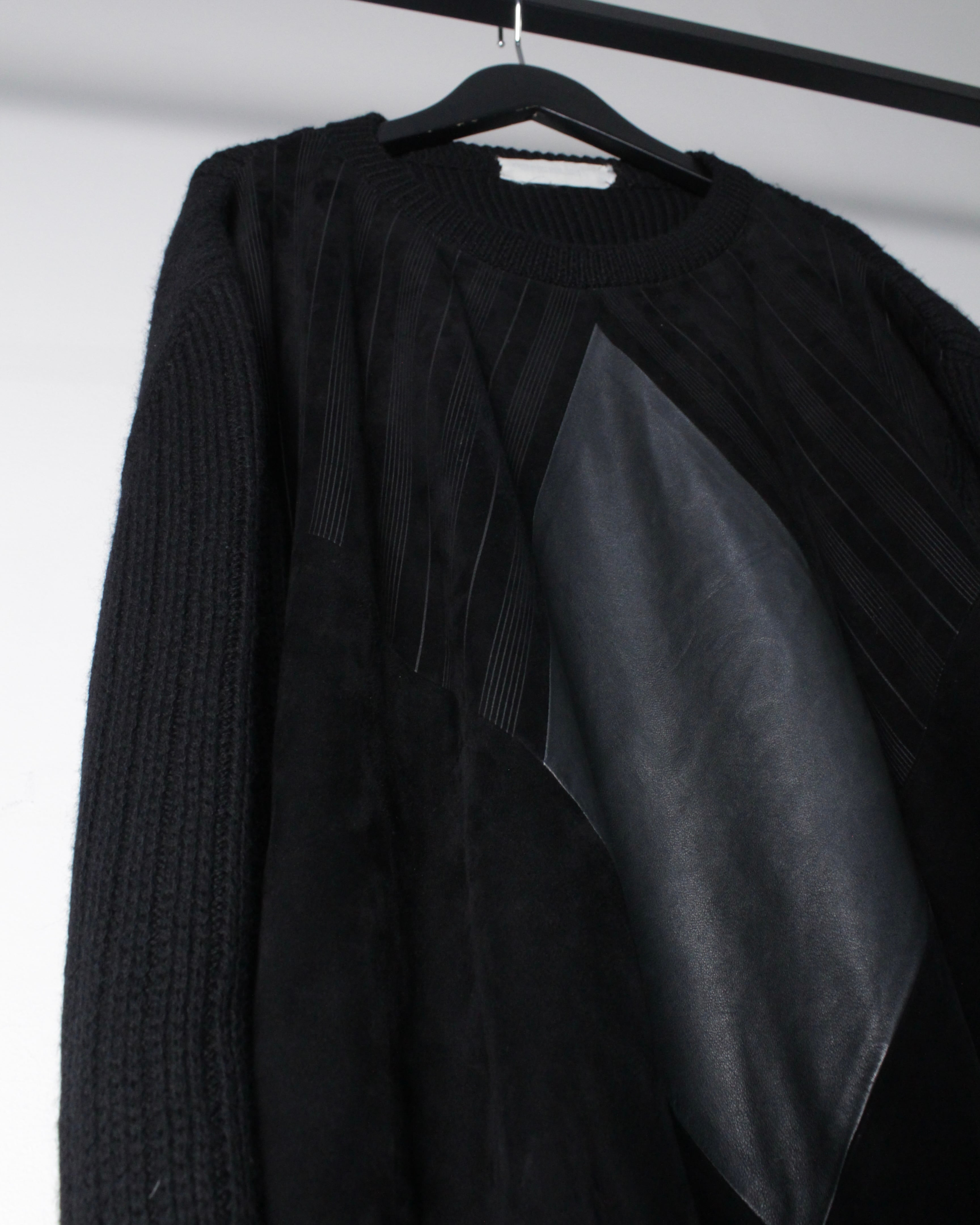 イタリア製ならではの上質なウールボディをベースに、フロントにはスムースレザーとスエードレザーを大胆に切り替えた、ラグジュアリーなニット。