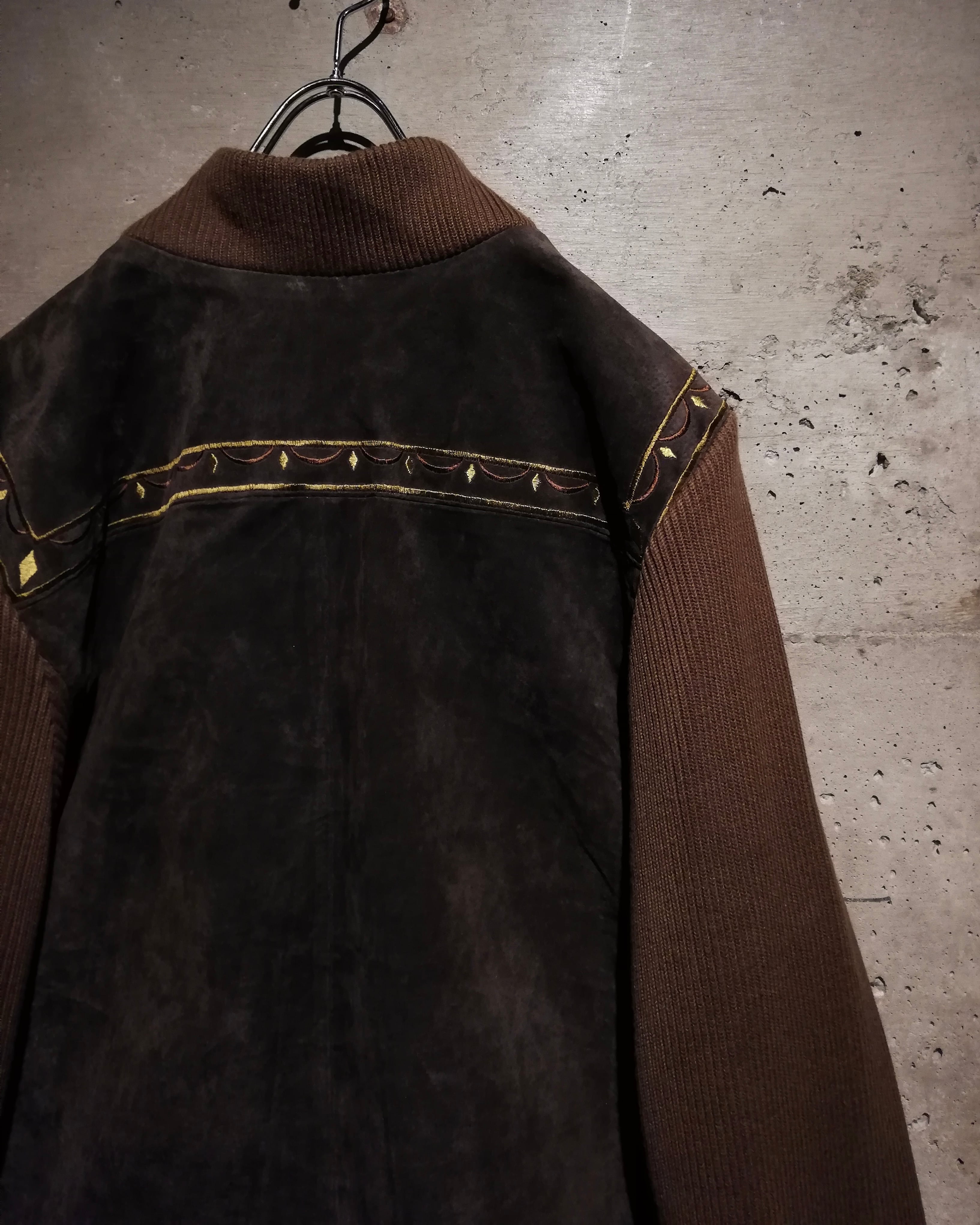 前身頃スエード切り替え部にスラッシュポケットを配したミニマルな仕様。ブラウンをベースとなった温かみのある配色でまとめ上げることでレトロな落ち着きのある高級感を漂わせます。