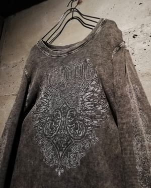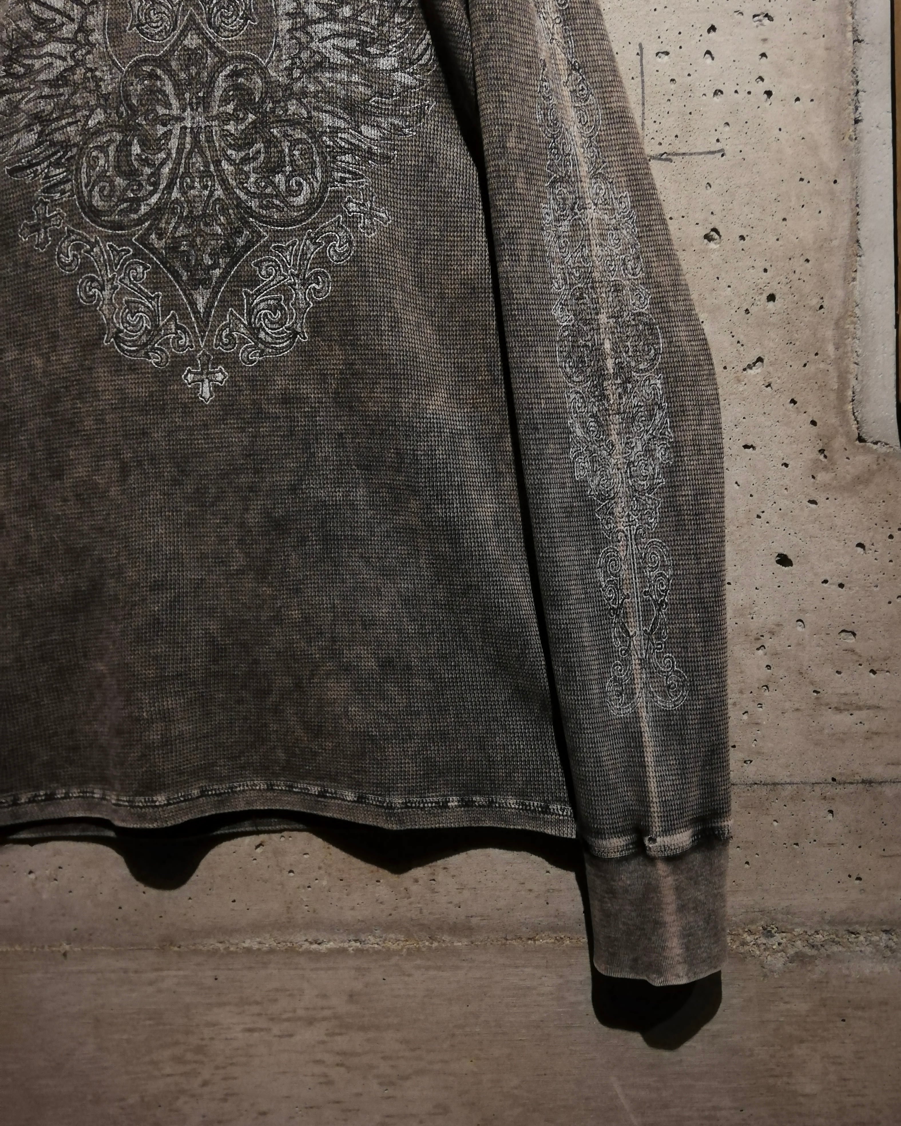 ハードなグラフィックでありながら素晴らしいデザインバランスに仕上げられた稀有かつスペシャルな”Affliction”のロンT。今のトレンド感を捉えつつ、唯一無二の存在感を放つ逸品となっております。