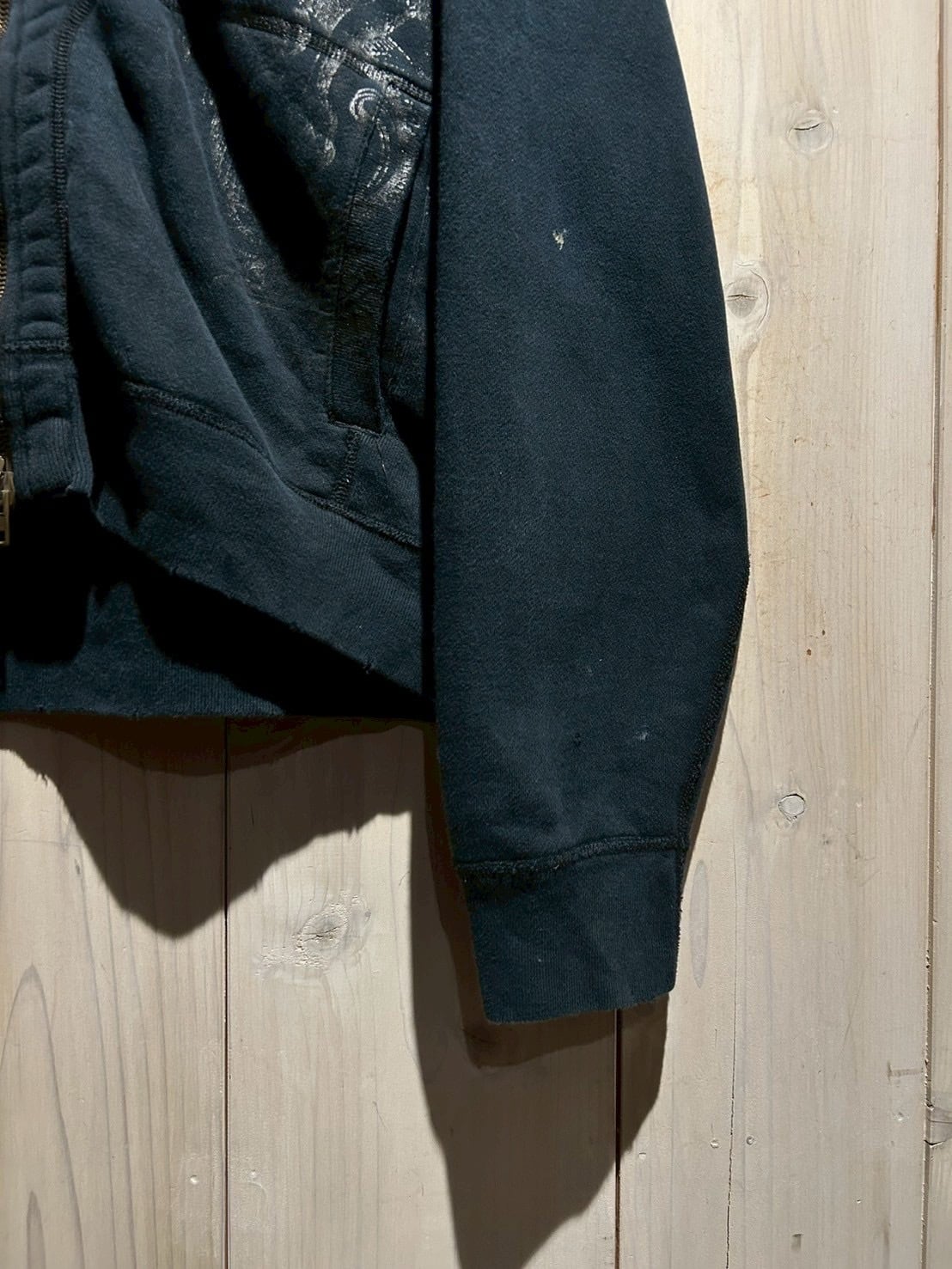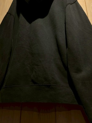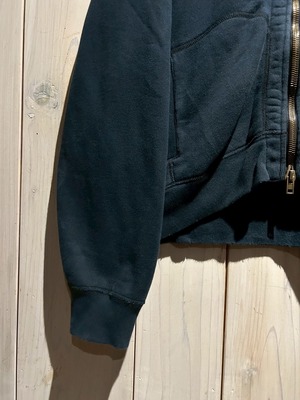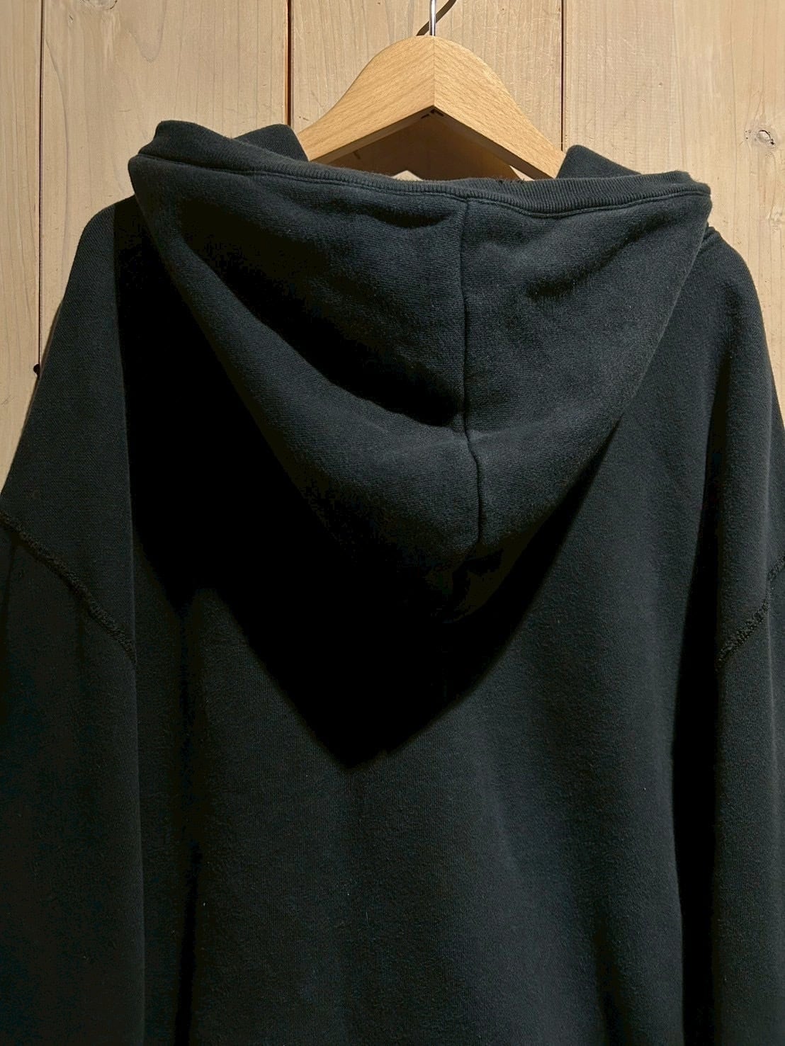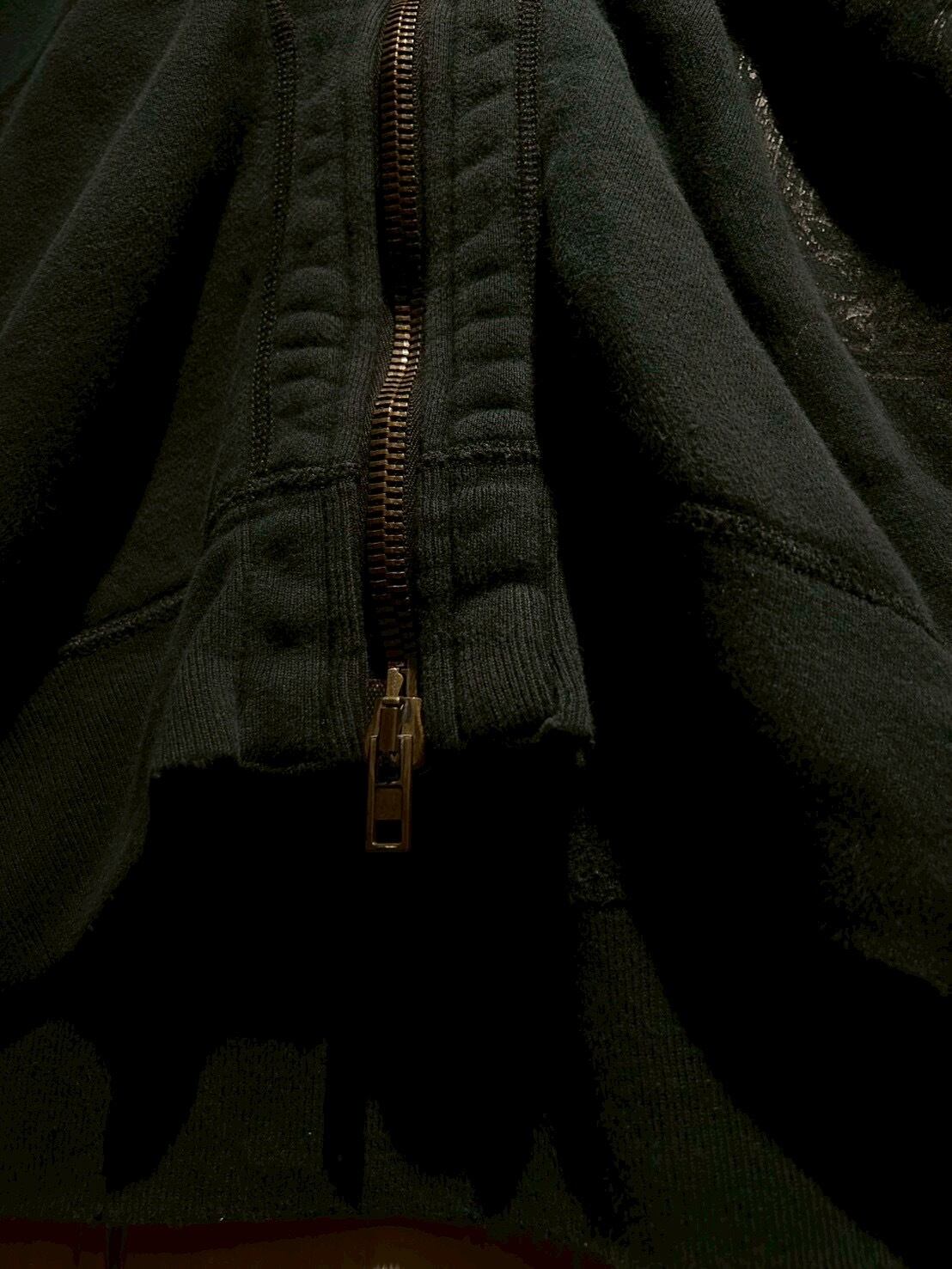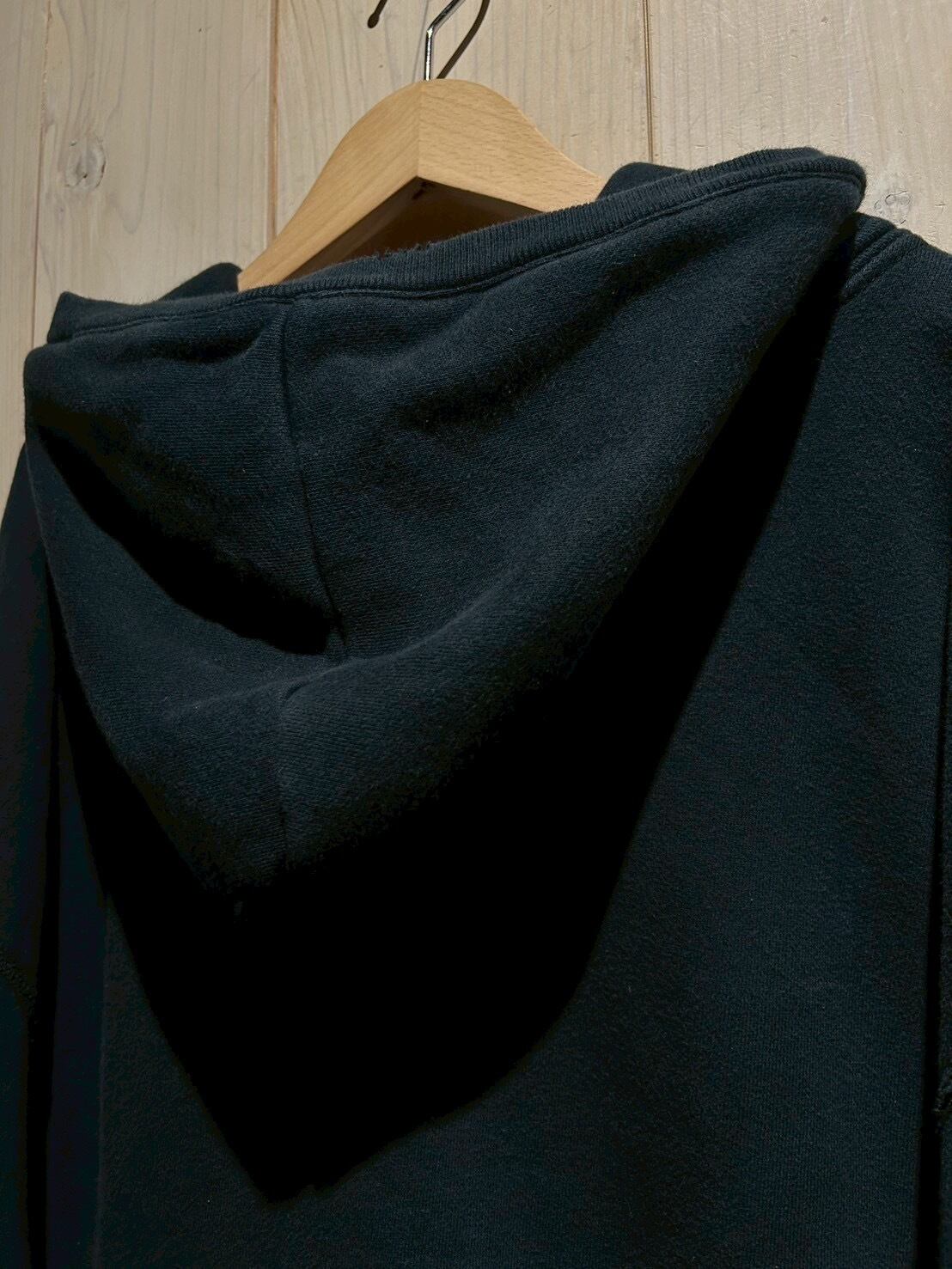 ボディはコットン×アクリル混のスウェット生地で、適度なハリを持ちながら柔らかい着心地。フロントはダブルジップ仕様となっており、スタイリングに応じてシルエットやレイヤード感を自在に調整可能です。程よくルーズなサイジングで、インナーにTシャツやシャツを合わせても収まりが良く、デイリーに使える万能な一枚。