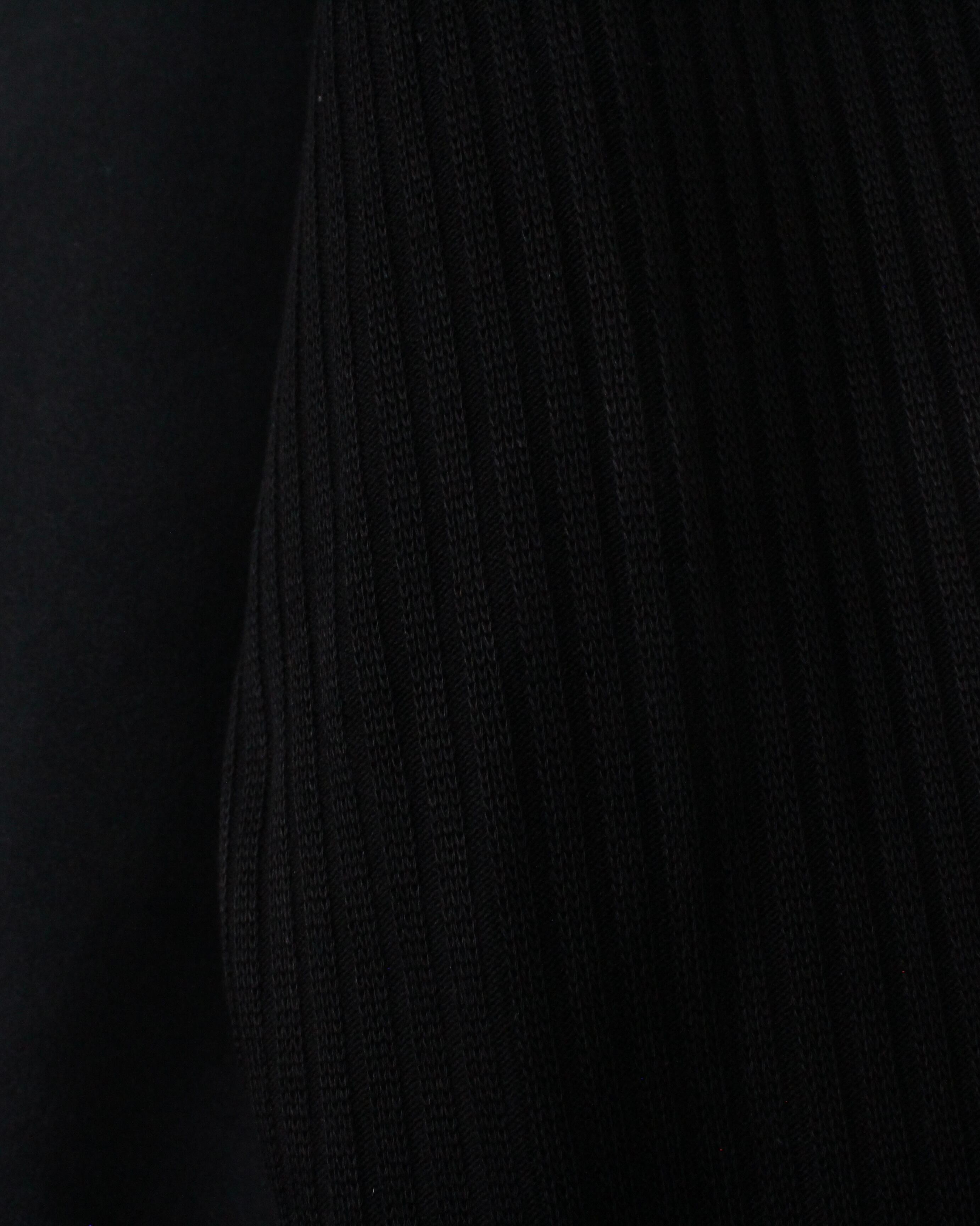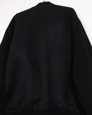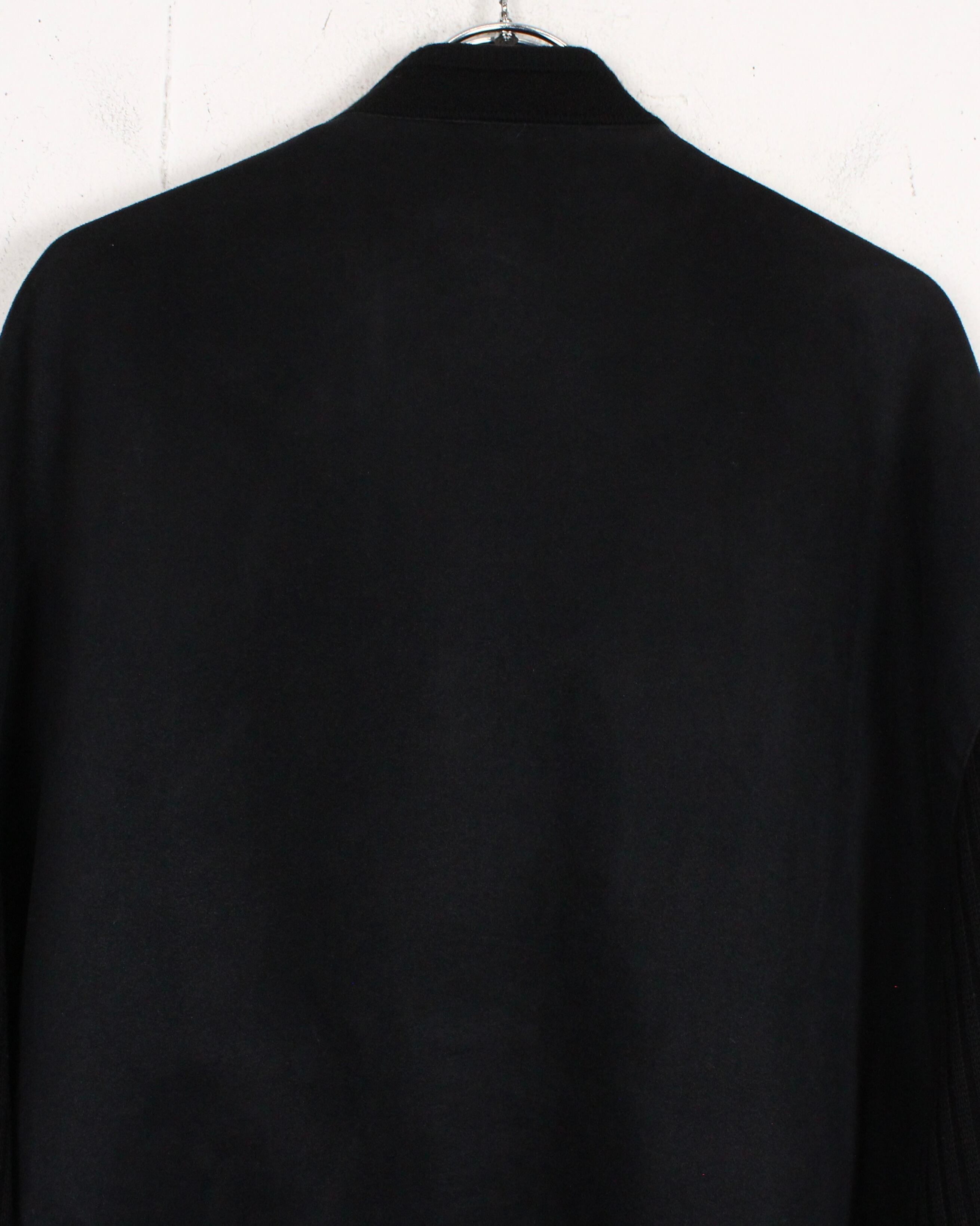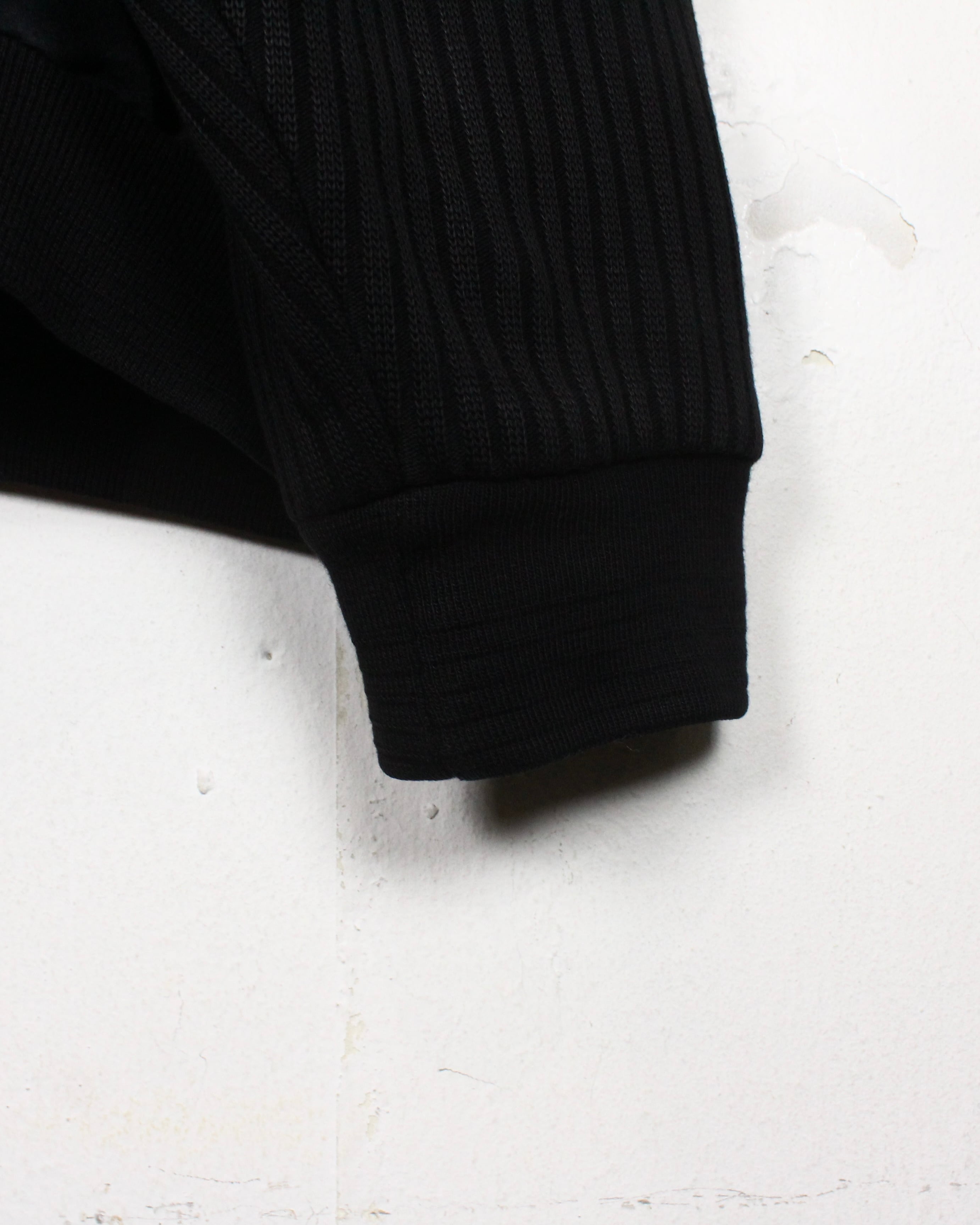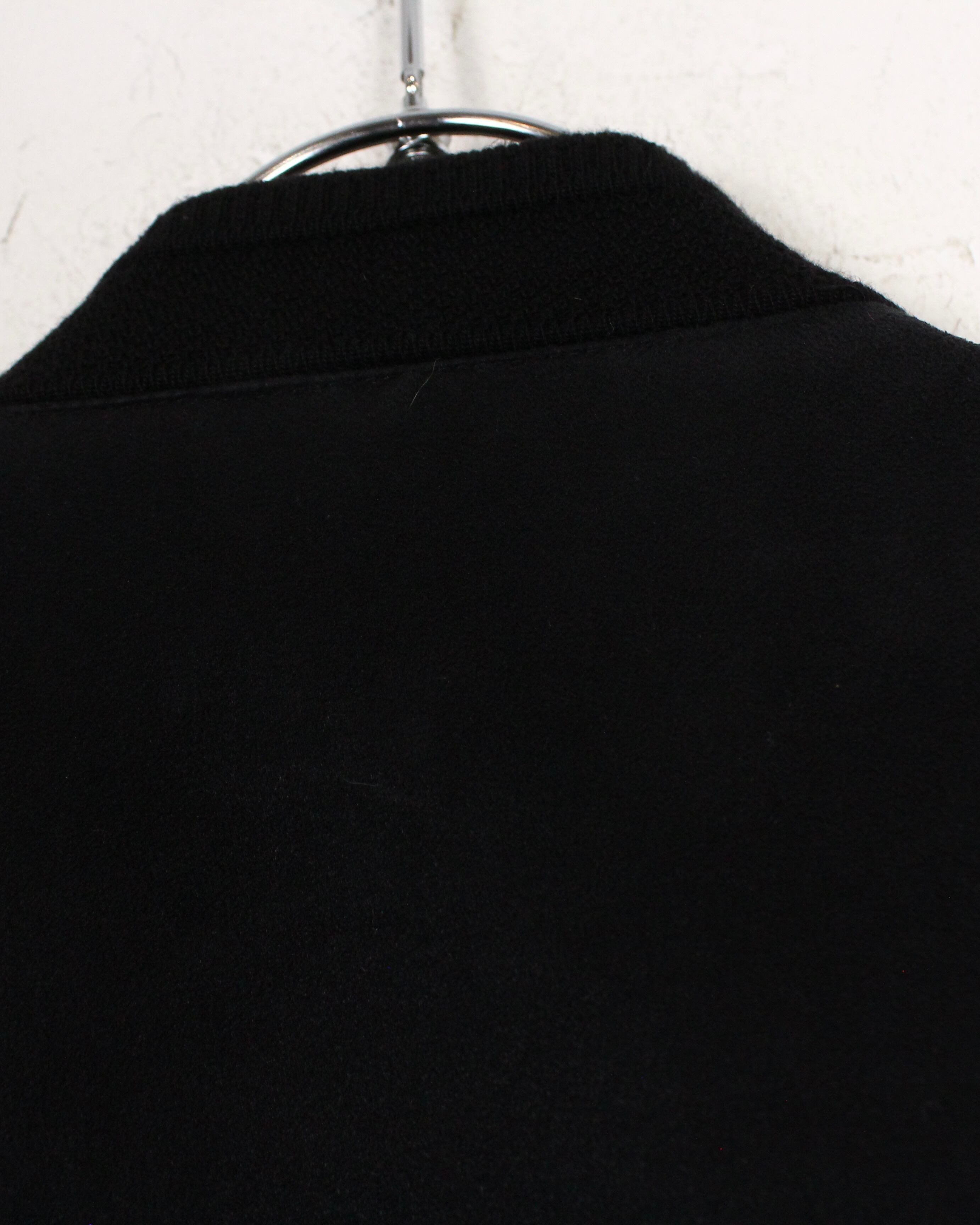 フロント、背面にはフェイクスエードを使用し、しっとりとした質感と奥行きのある表情を演出。スリーブやサイドにはニットを組み合わせることで、動きやすさと通気性を確保しつつ、無骨さとモード感が共存する仕上がりとなっています。