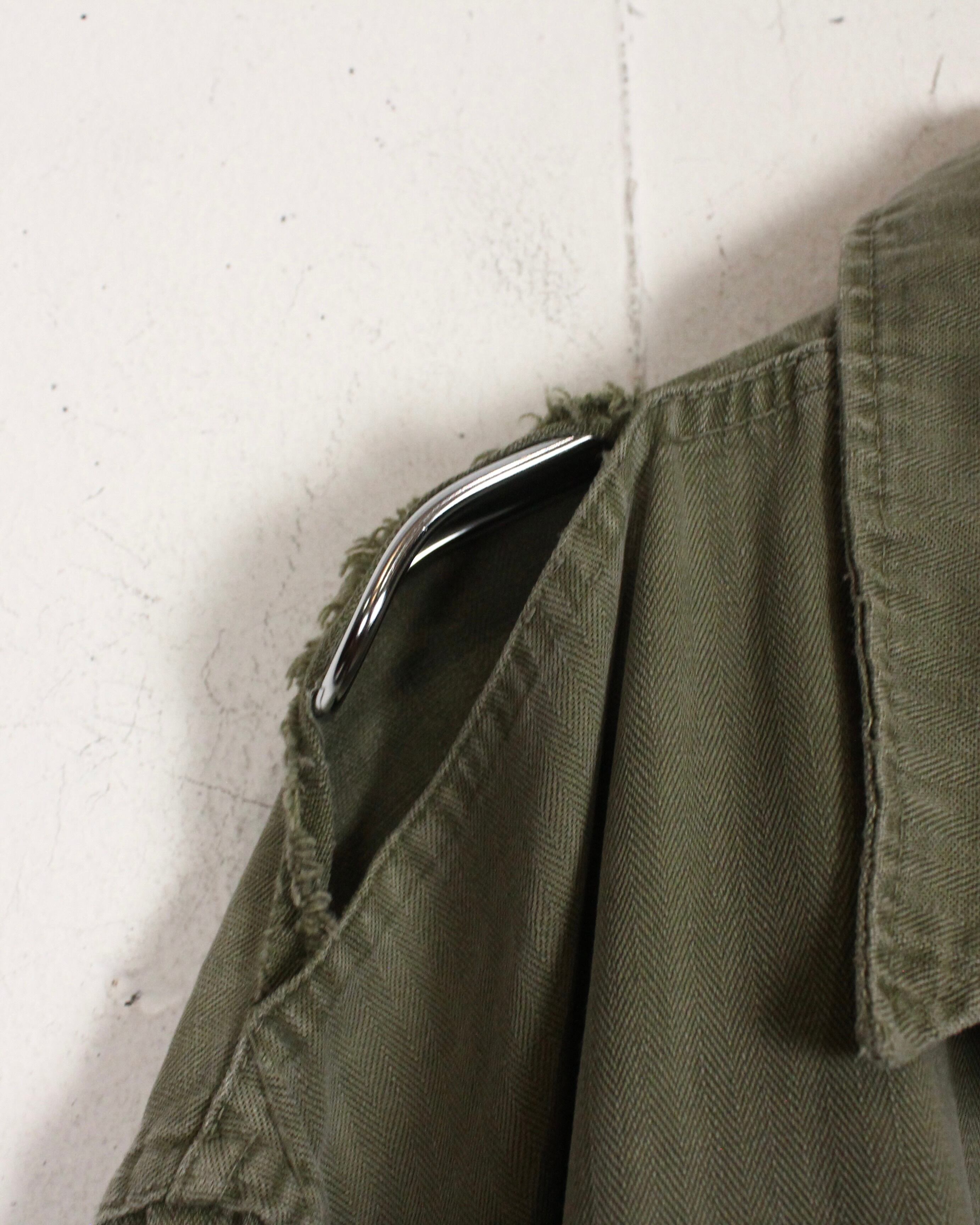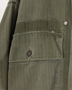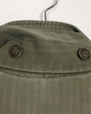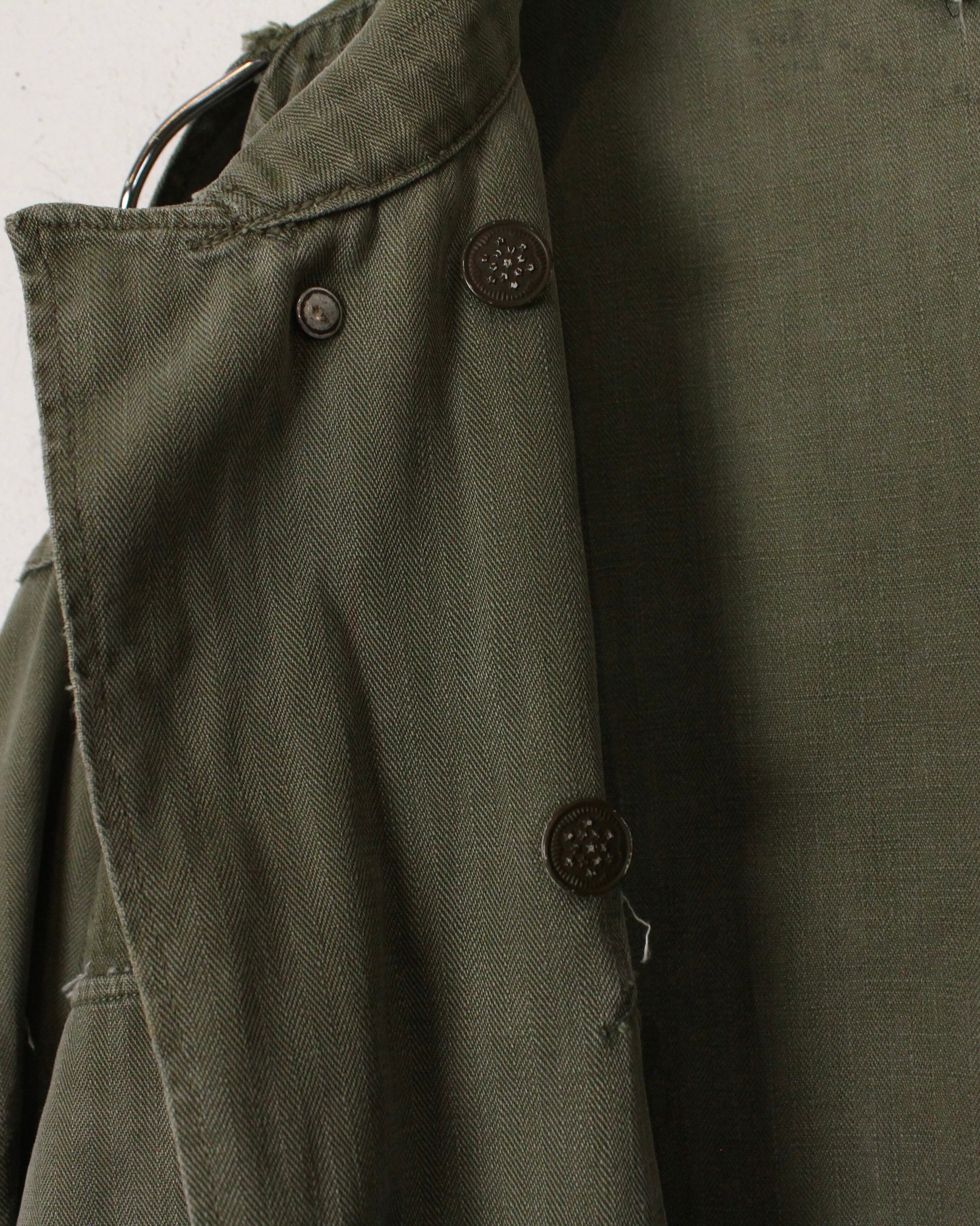 ディテール面では、アメリカ軍らしさを象徴する13スターボタンと大ぶりのフラップポケットを装備。野戦仕様の高い実用性とデザイン性を兼ね備え、縫製やパーツの経年変化も一点ごとに異なるのも、この年代ならではの大きな魅力です。