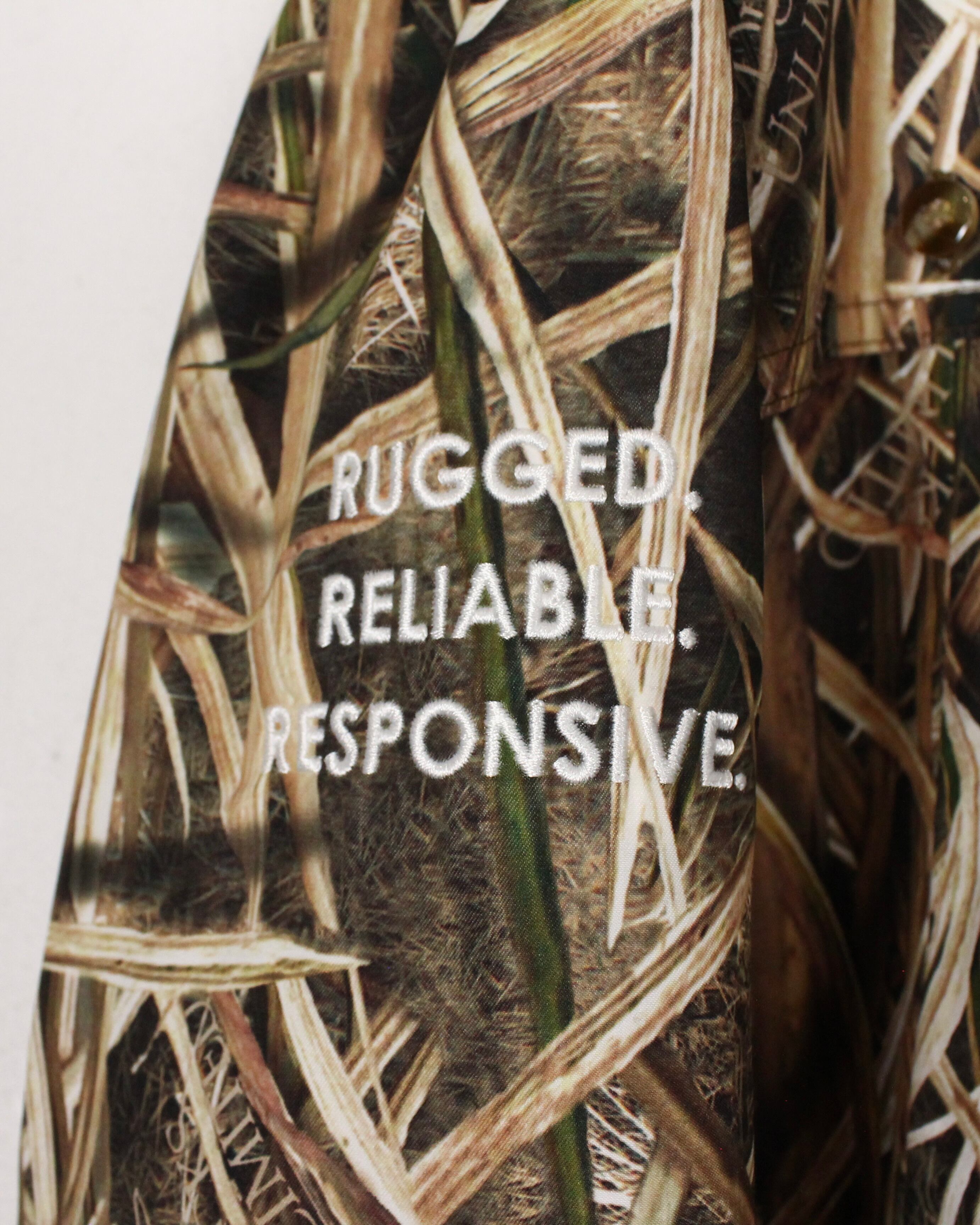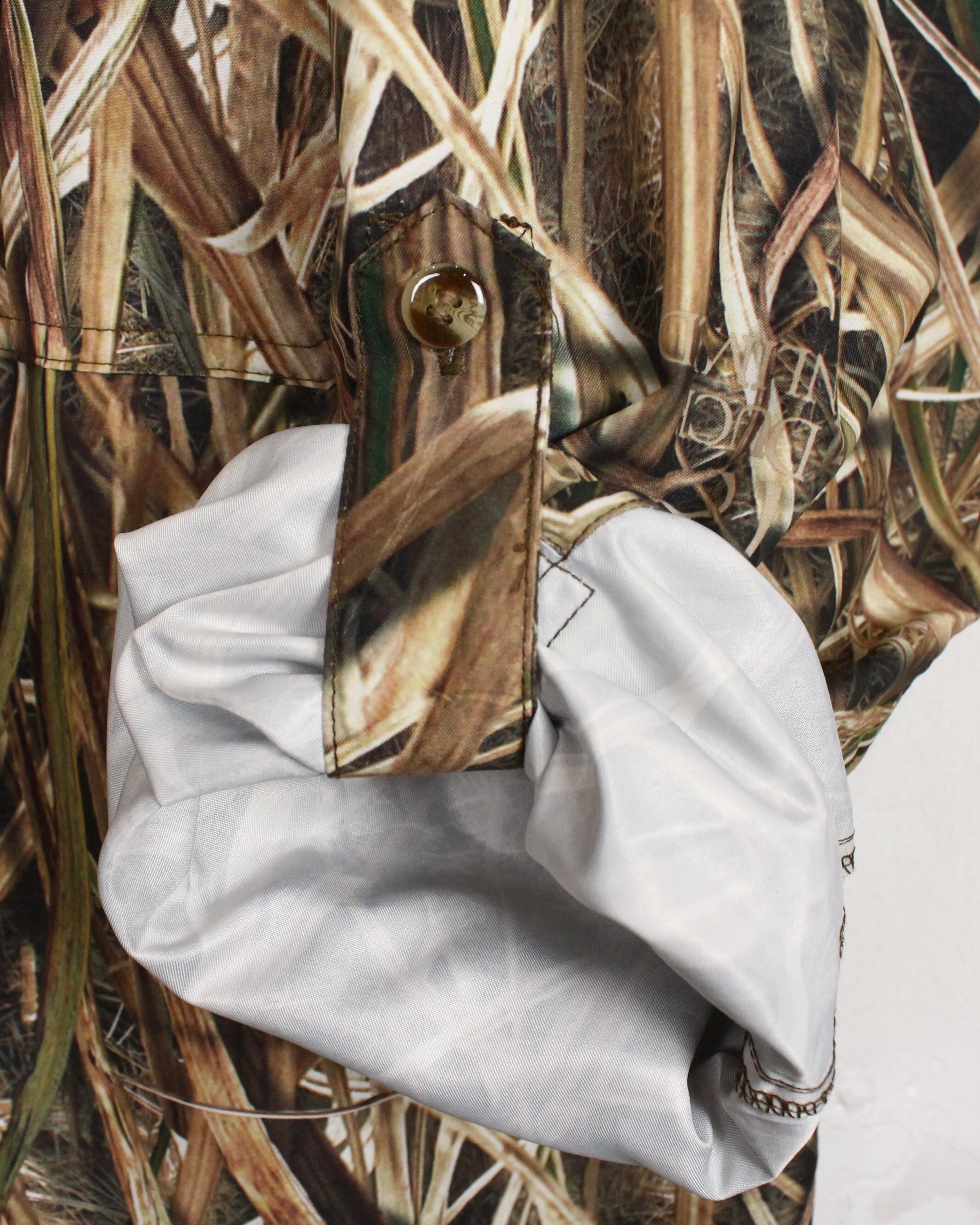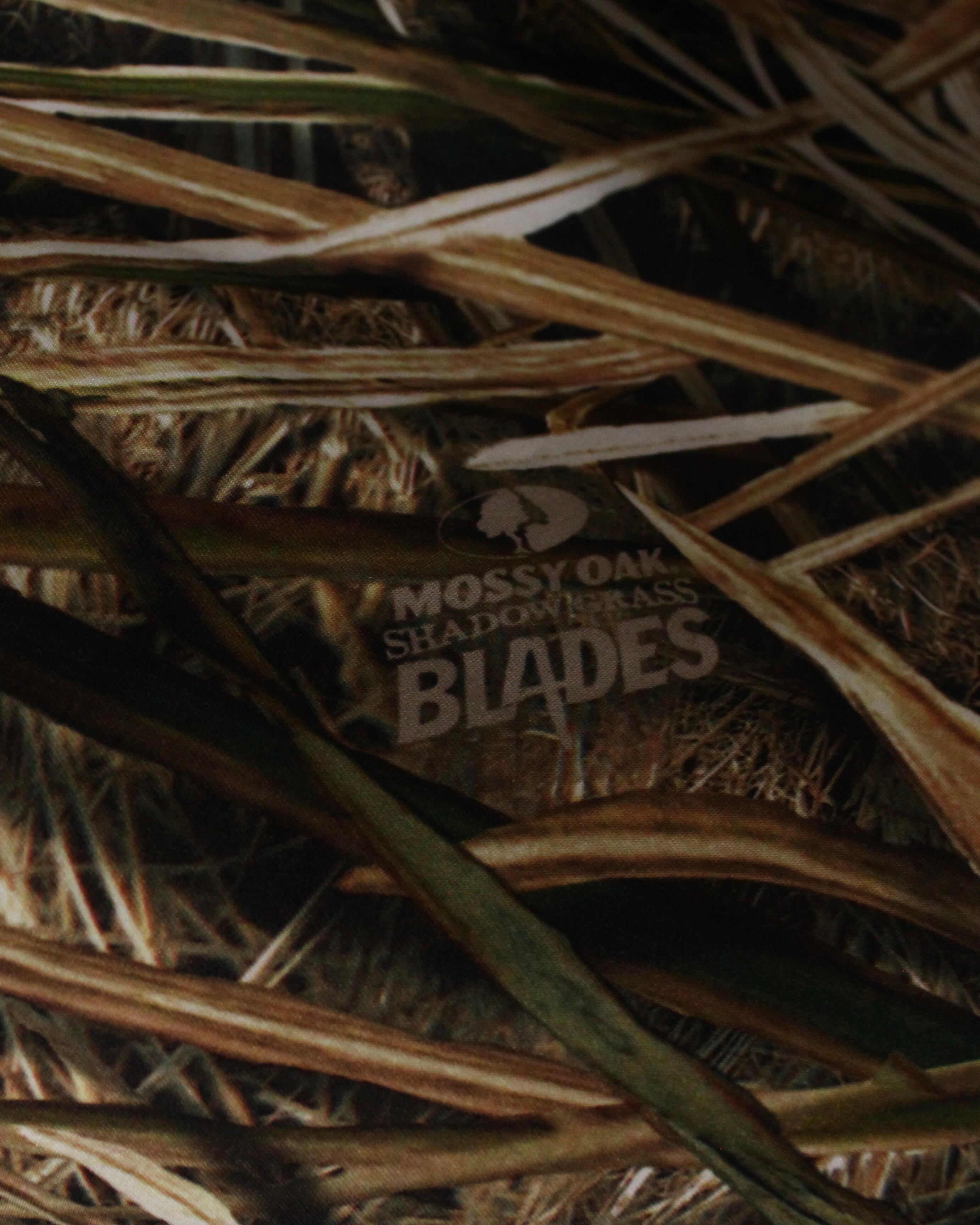ボディ全体を覆うのは、自然環境に完全に溶け込むよう計算された Mossy Oak Shadow Grass Blades カモフラージュ柄。水辺や草原地帯に特化したリアルなグラスブレードの描写は、まさにフィールドでの機能性を追求したデザインです。アウトドア特有の迫力を持ちながらも、ストリートやファッションシーンでも映える仕上がりとなっています。