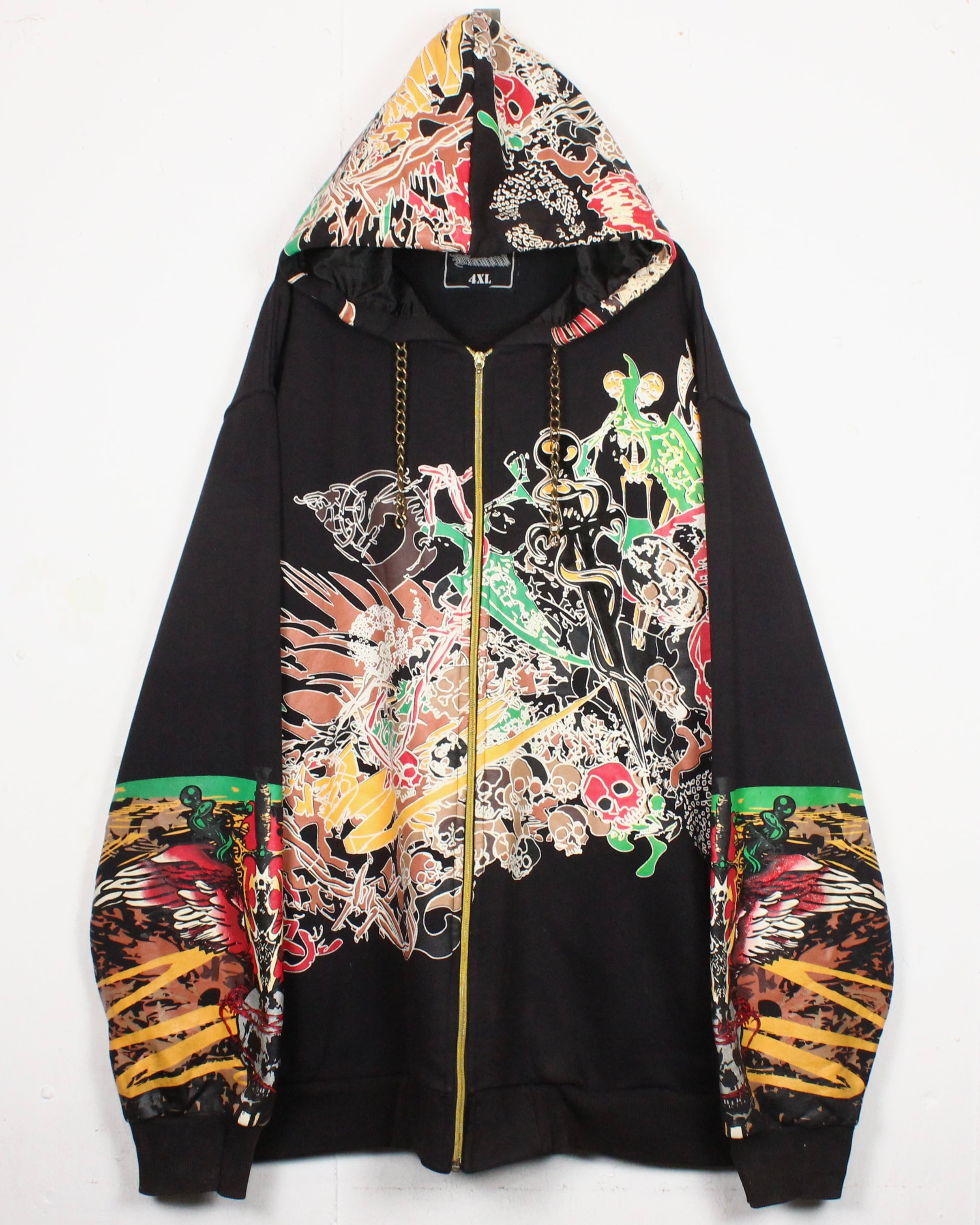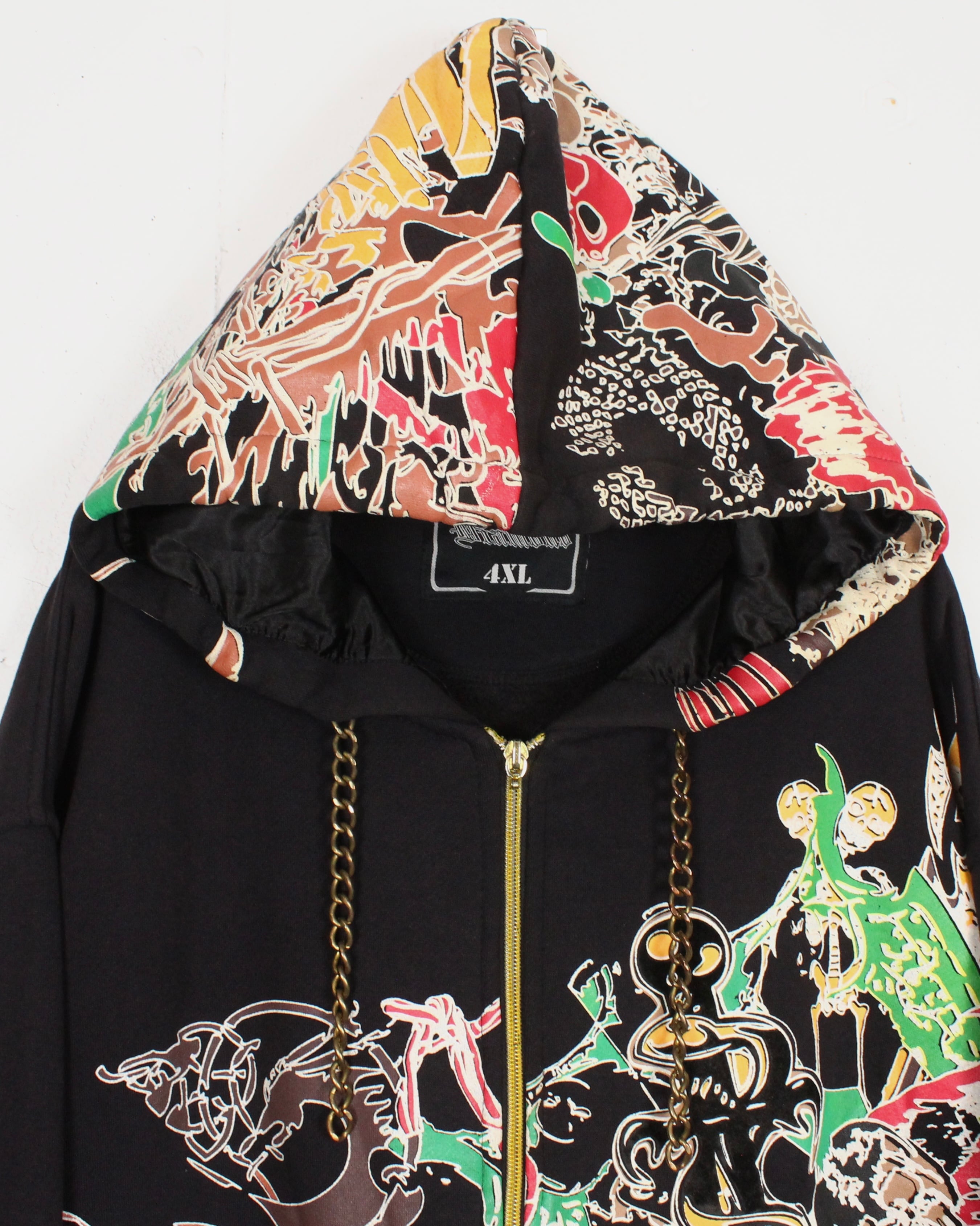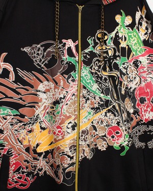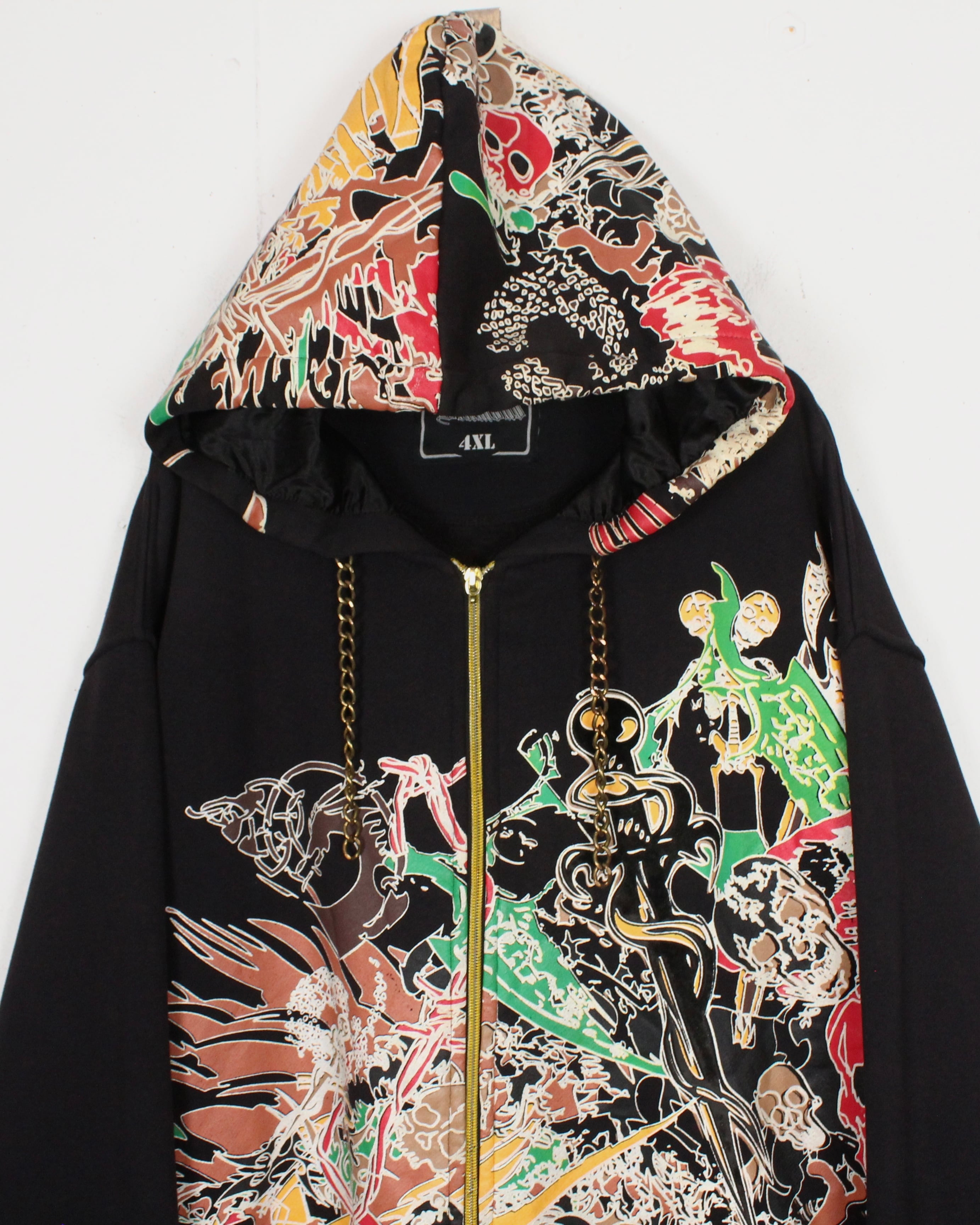 2000年代HIPHOPファッションを象徴するかのようなグラフィカルなジップフーディ。大胆かつ繊細に描き込まれた総柄プリントが印象的なスペシャルピースです。
