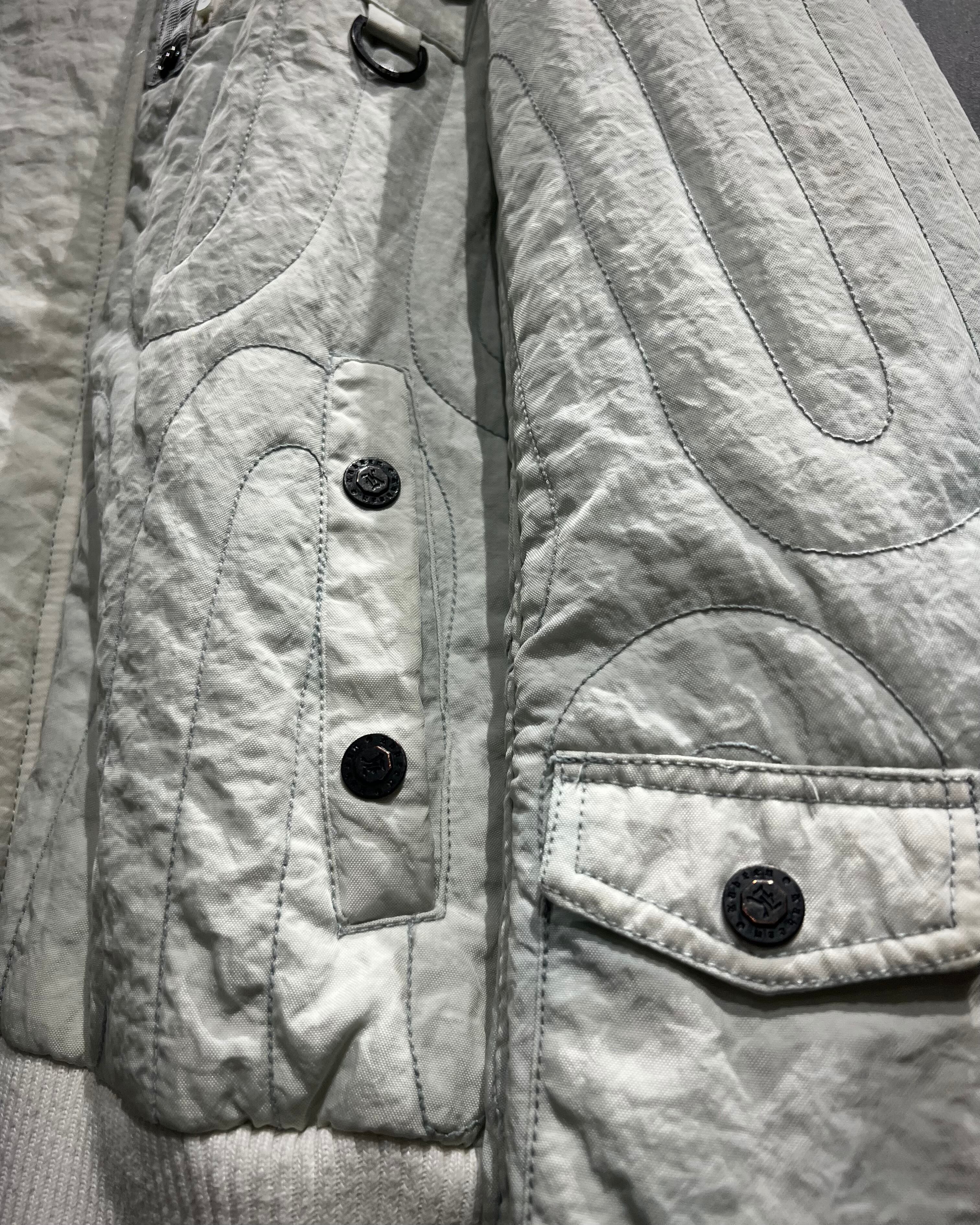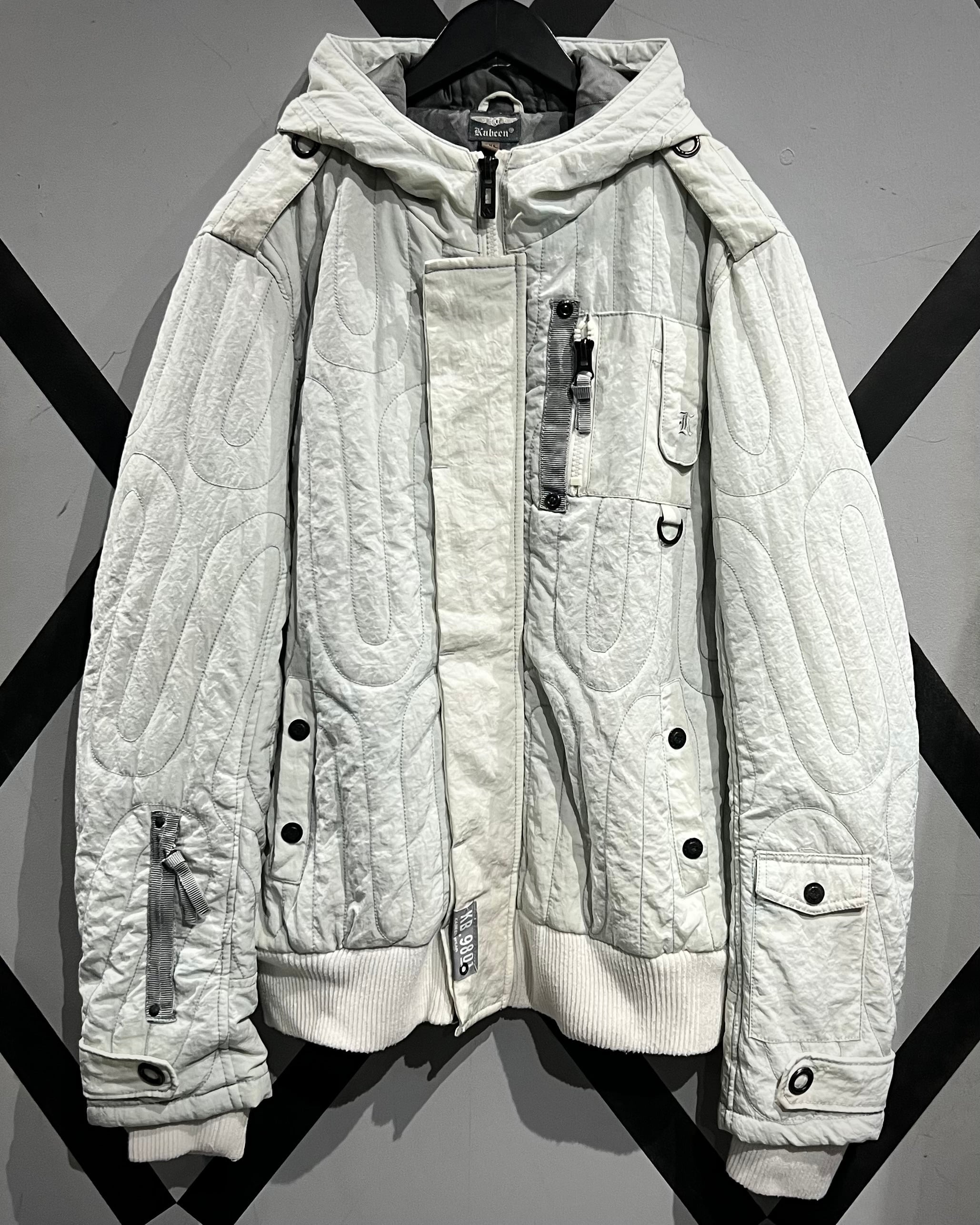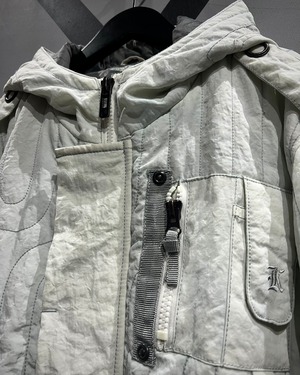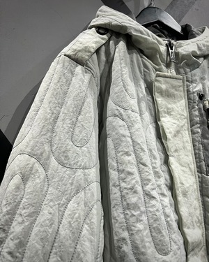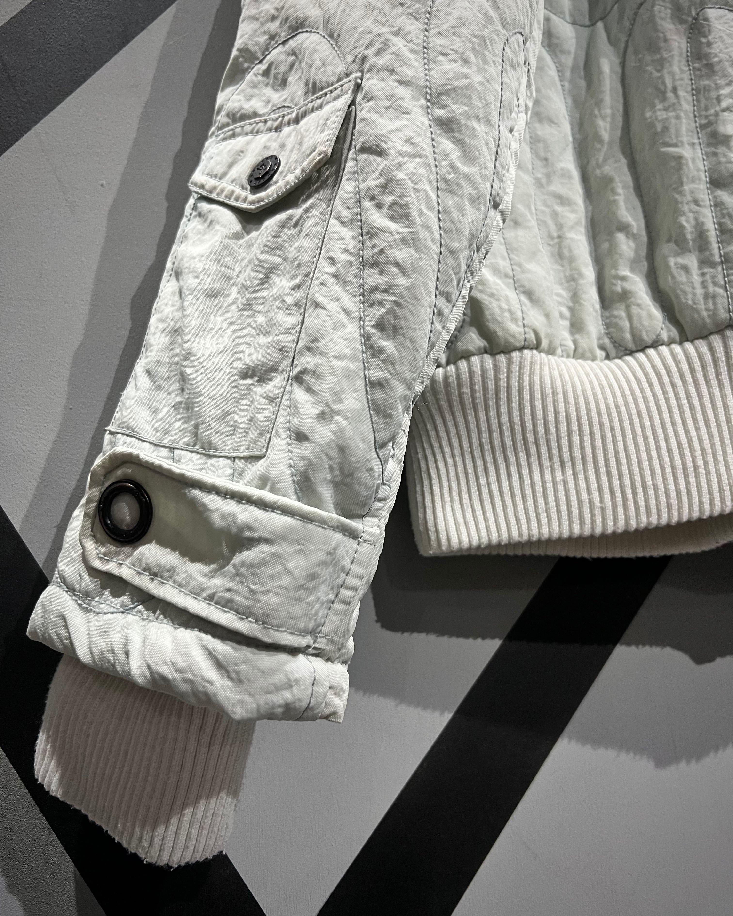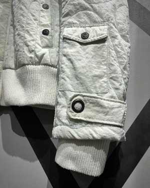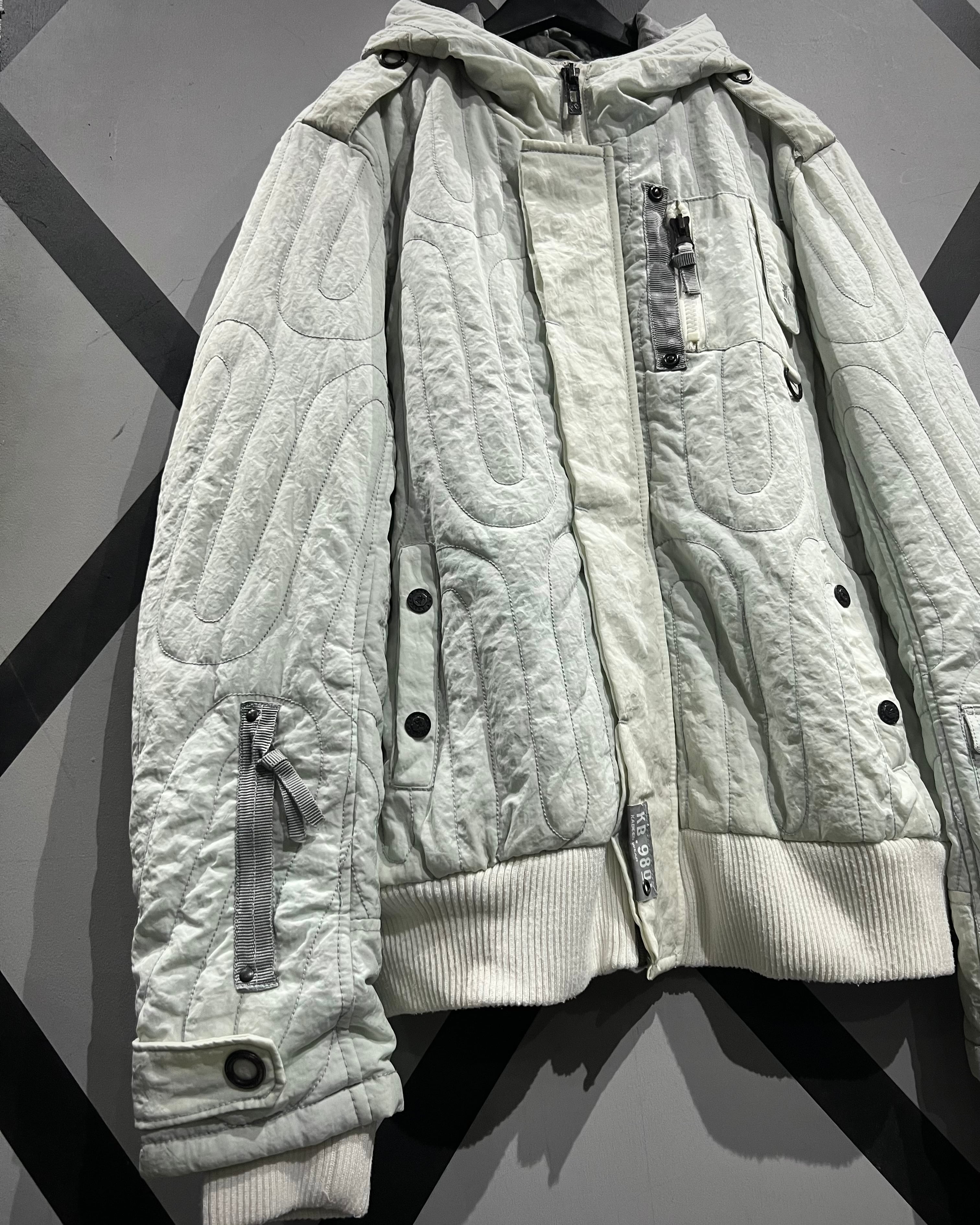 ハリ感のあるタフなホワイトのボディに、F-13フライトスーツを彷彿とさせる電熱線モチーフのステッチを走らせたスペシャルなジャケット。
