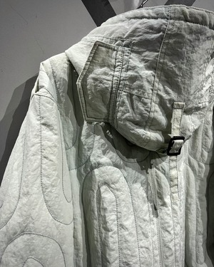 さらに左胸には縦型のジップポケットに加えD管、肩にはエポレット、アームやフードにまでフラップ付きポケットを搭載し、ディテールの作り込みは圧巻。フードに配されたベルトも含め、ミリタリーのバックボーンを巧みにデザインへと昇華しています。