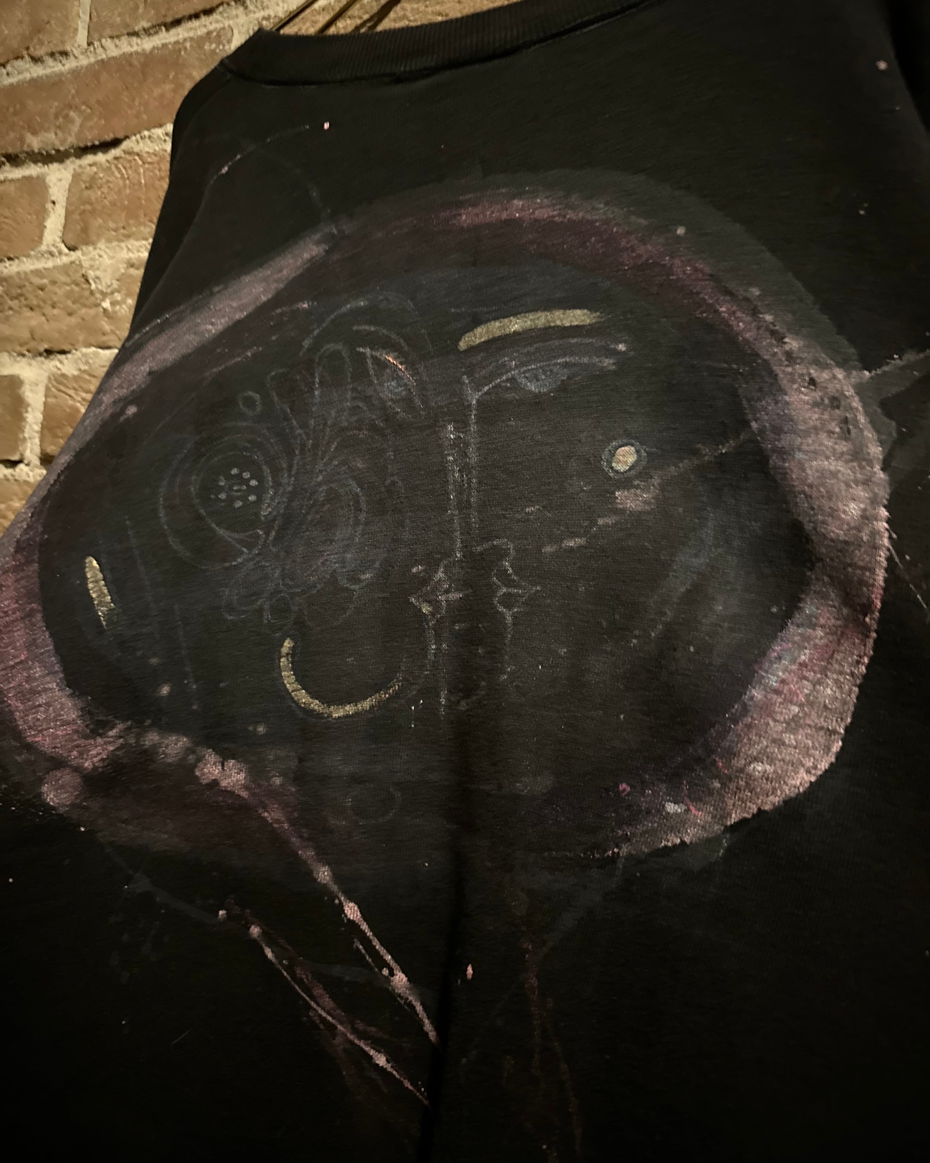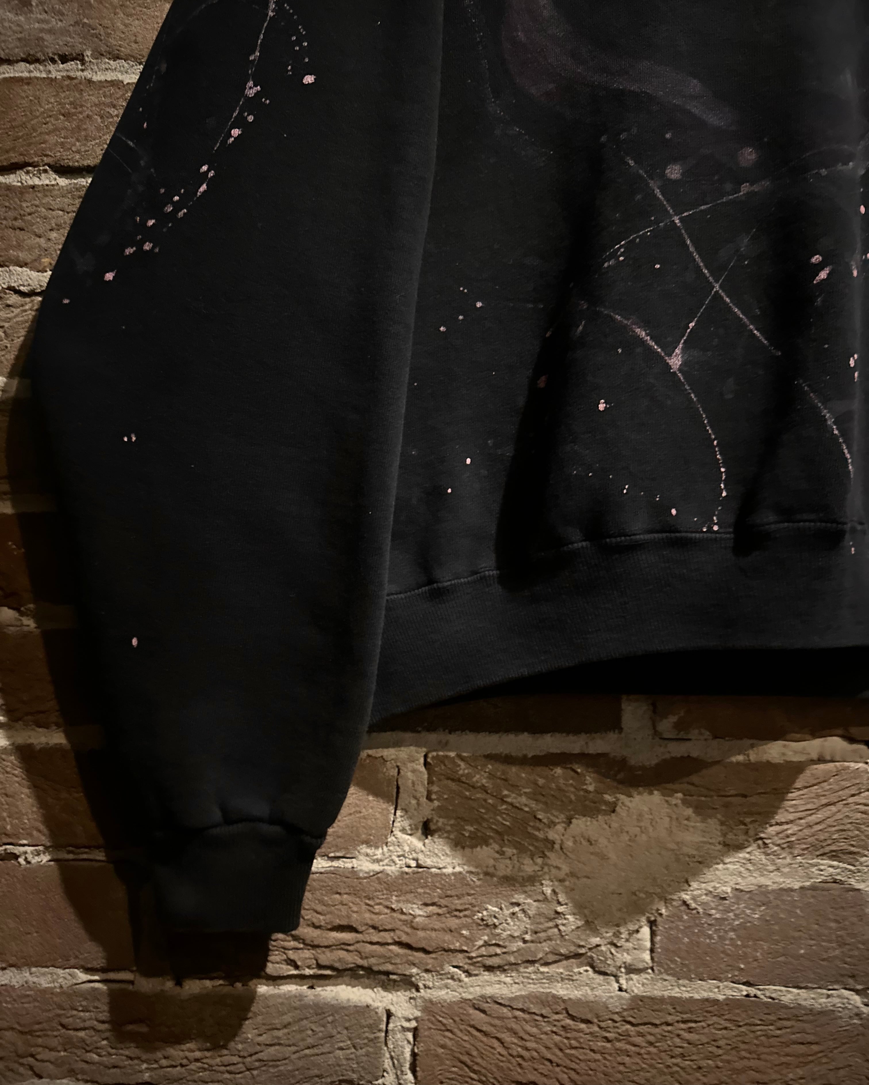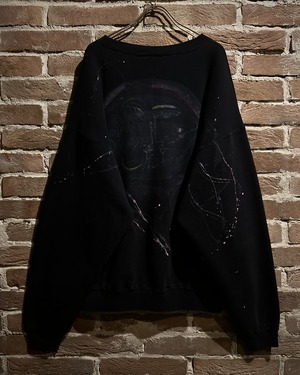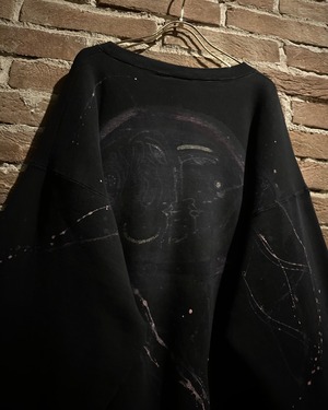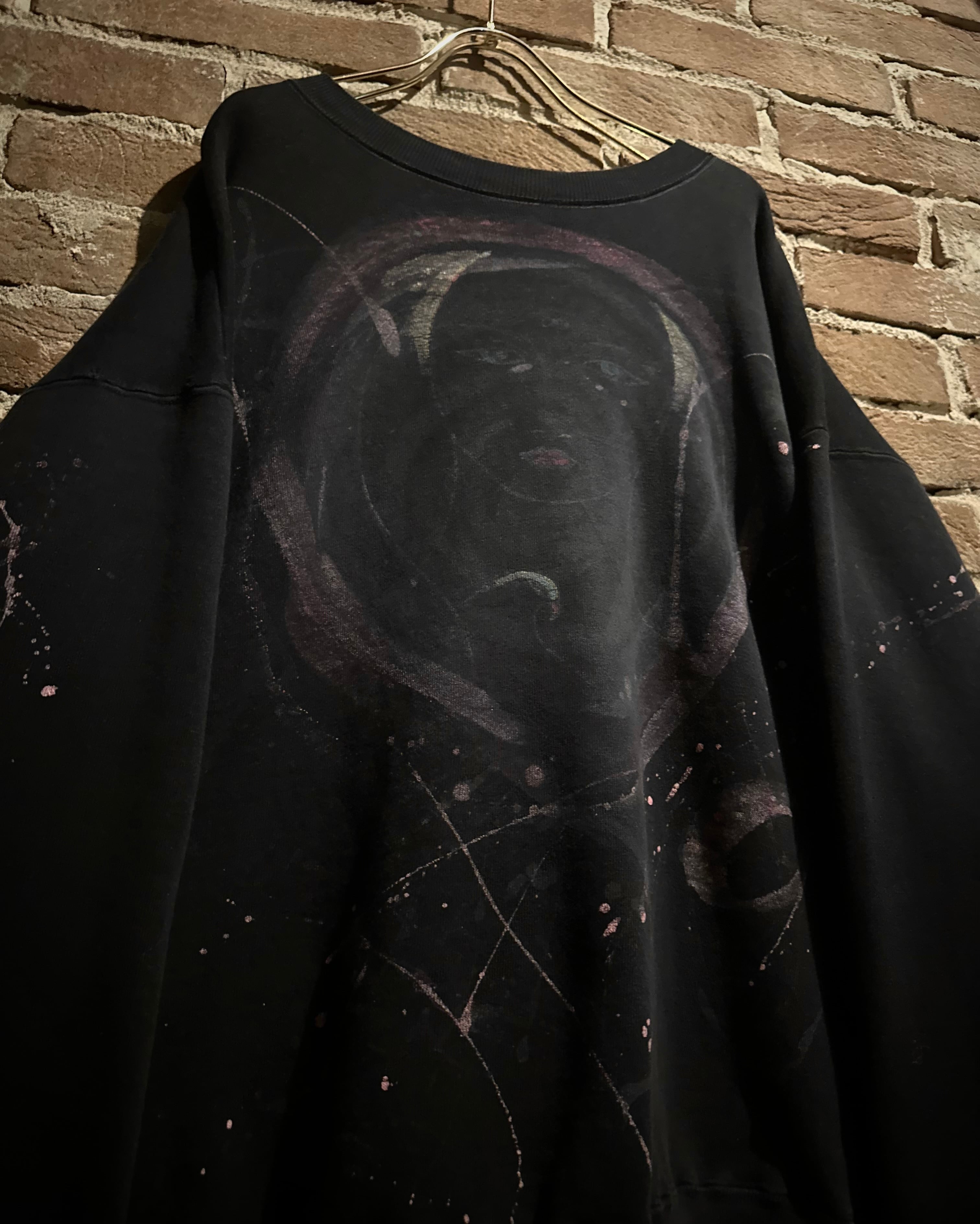 ブラックボディをベースに、フロントには抽象的かつ幻想的なフェイスモチーフをハンドペイントで載せたスペシャルなスウェット。