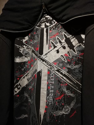 バックスタイルもクロスした剣や装飾的なグラフィックで埋め尽くされ、ゴシックや雰囲気を漂わせる、このブランドならではの非常にハイなデザインに仕上がっています。