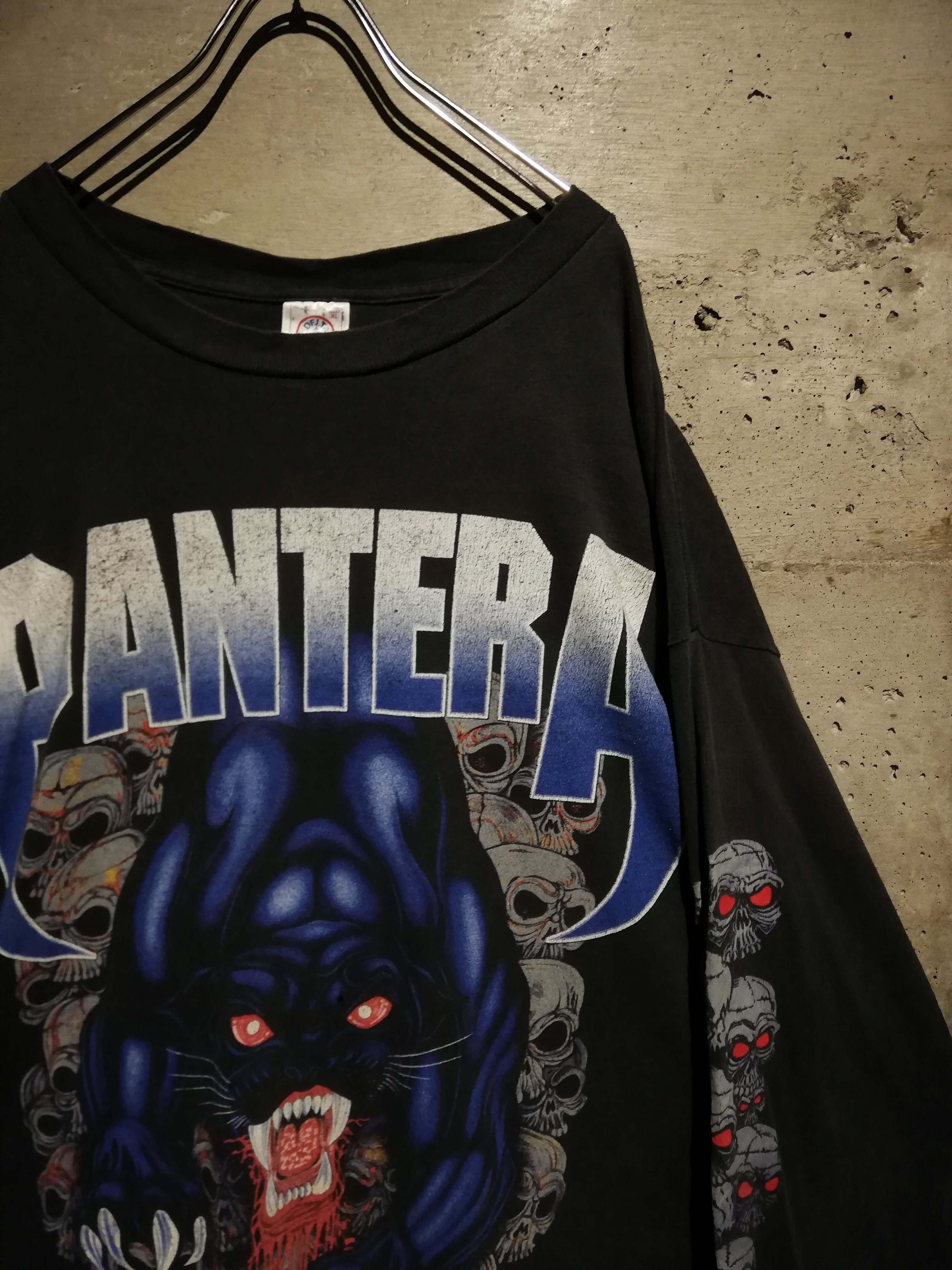 90年代のバンドTシャツ市場の中でも、PANTERAは特に人気が高く、グラフィックの完成度や当時の音楽的背景から、コレクターズアイテムとしての評価も非常に高い1枚。ロンTとなると現存数も少なく、入手難易度が高まっています。音楽とファッション、そしてカルチャーを横断する、“PANTERA”のスペシャルなロンTです。