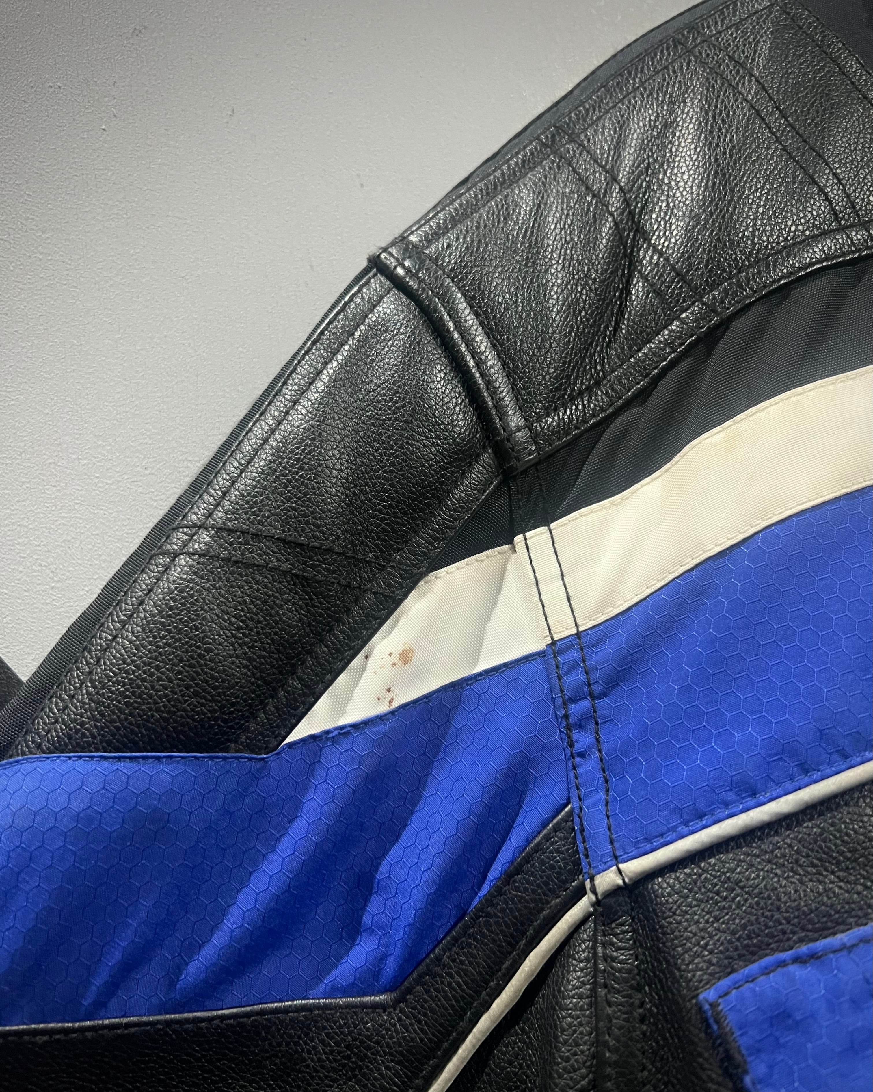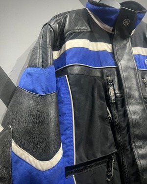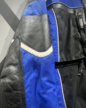 ブラックを基調に、鮮やかなブルーとホワイトのラインを走らせ、モータースポーツのスピリットを体現したレーシングジャケット。