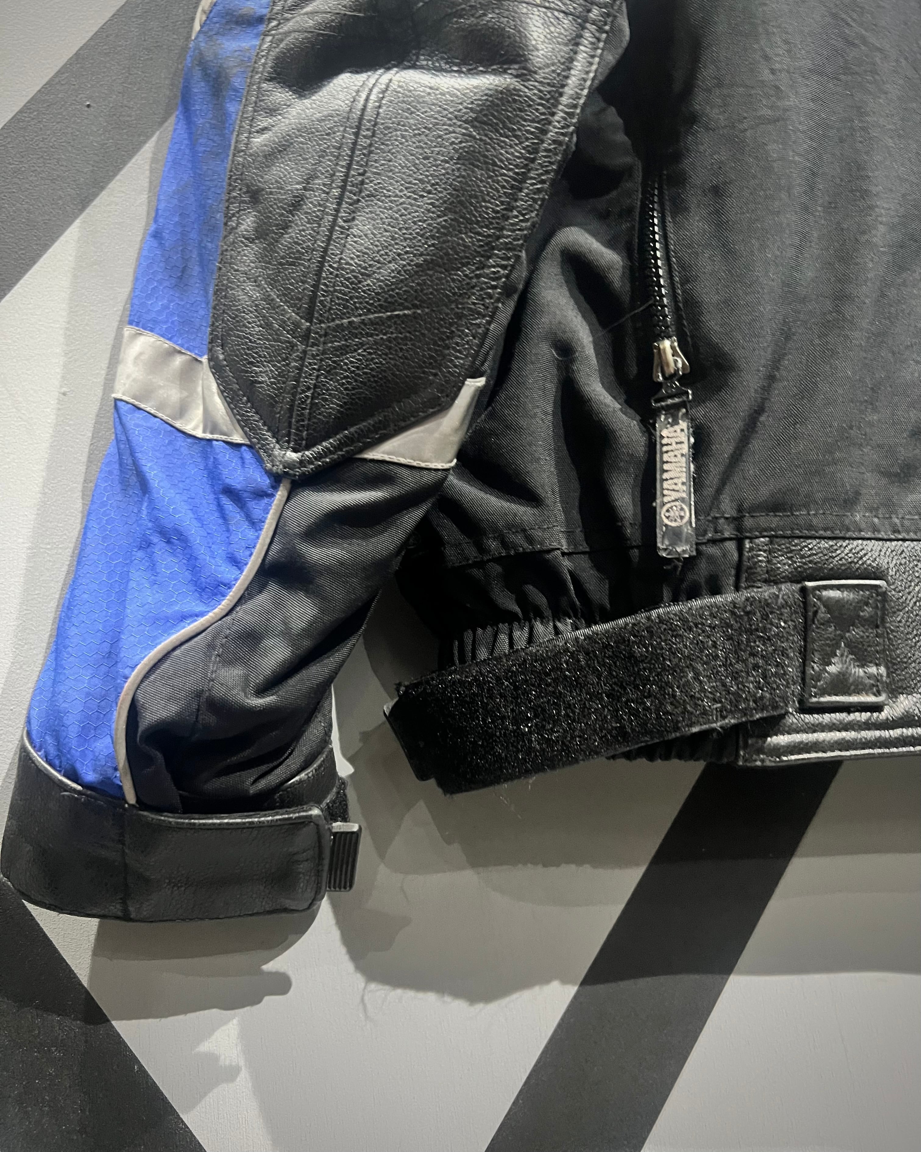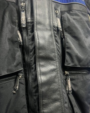 素材には、重厚感あるレザーと耐久性の高いナイロンを切り替えで採用。肩や肘にはレザーの補強が施され、ライディング時のプロテクション性を意識した本格的なディテールが魅力です。ナイロン部分は軽やかさと動きやすさを確保しつつ、レザー特有のタフで無骨な質感が全体を引き締めています。表情豊かな素材の切り替えによって、ストリートシーンにおいても存在感抜群。