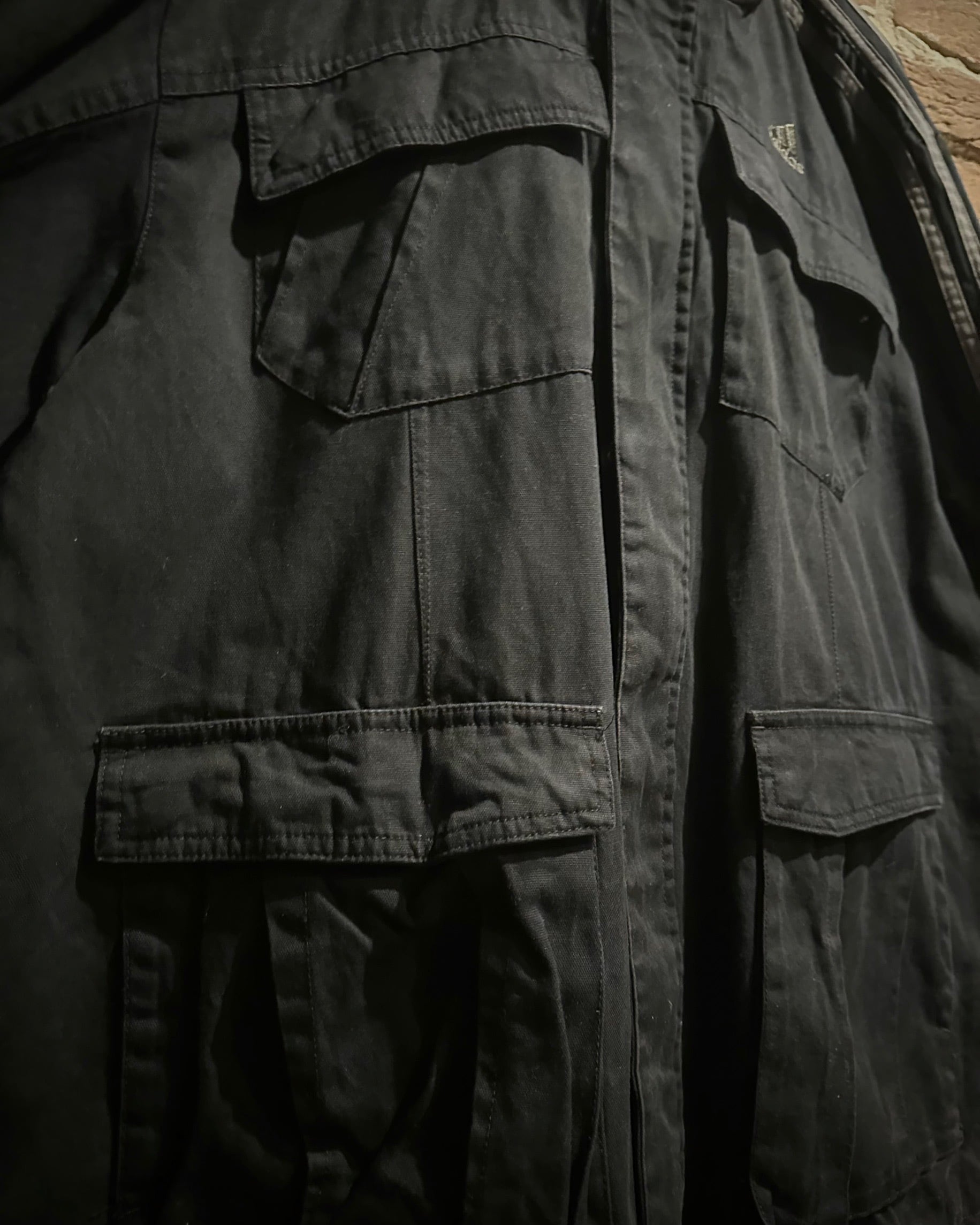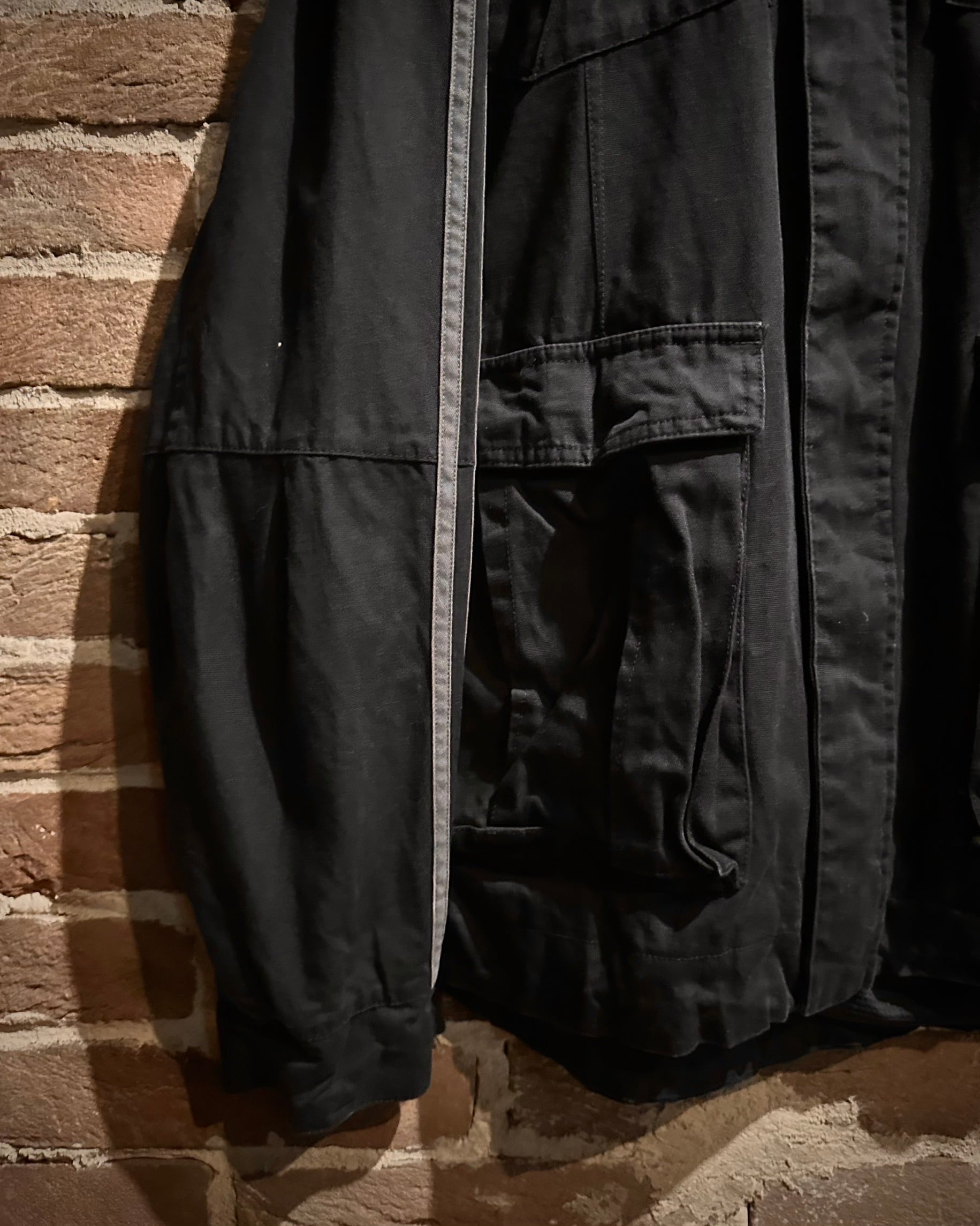 ベースにはハリと厚みのあるブラックコットンを採用。素材が持つタフさと重量感が、ストリートからアウトドアまで幅広いスタイルに映える無骨な存在感を放ちます。
