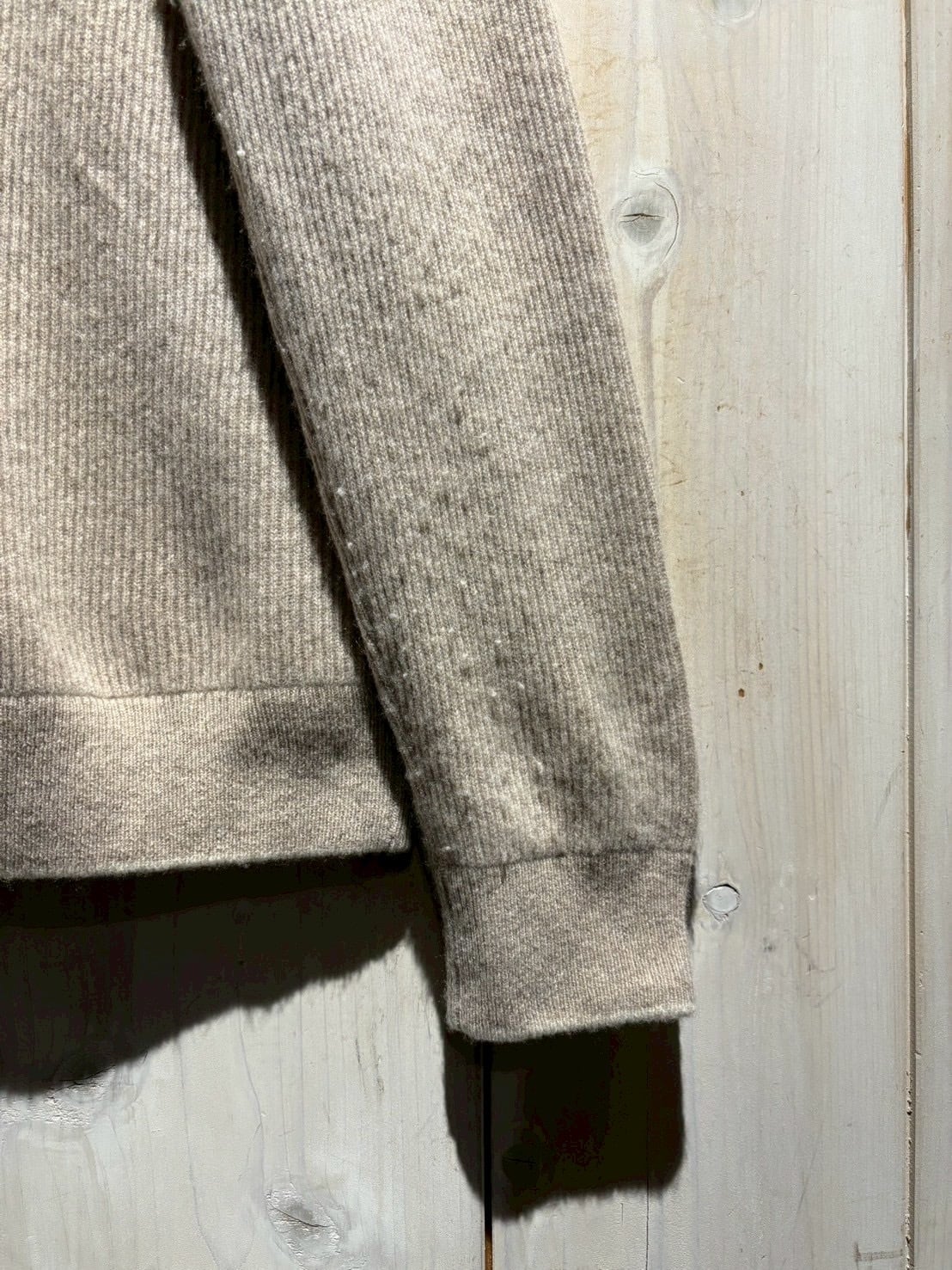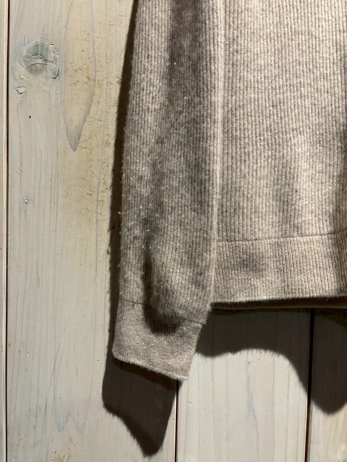カシミヤ特有の、しっとりとした柔らかさと滑らかさは一度袖を通せば違いを実感できるクオリティです。軽やかでありながら抜群の保温性を誇り、肌に直接触れた時の温もりや包み込まれるような着心地は、他の素材では決して味わえない唯一無二の魅力を持っています。