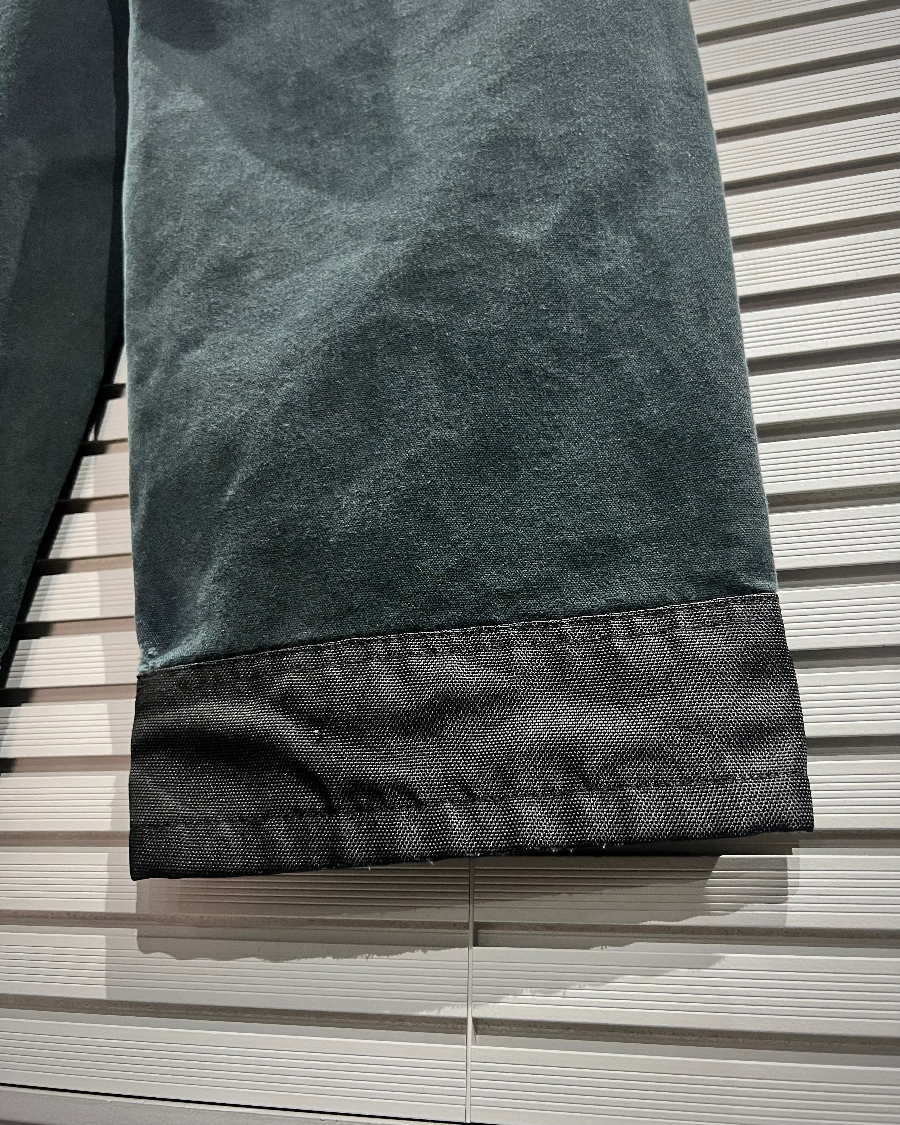 シルエットは程よくワイドで無骨さを演出しつつも、レングスは野暮ったさを感じさせない絶妙なバランス。タフな素材感と相まって、着用を重ねることでさらに味わいを増していくこと間違いなし。