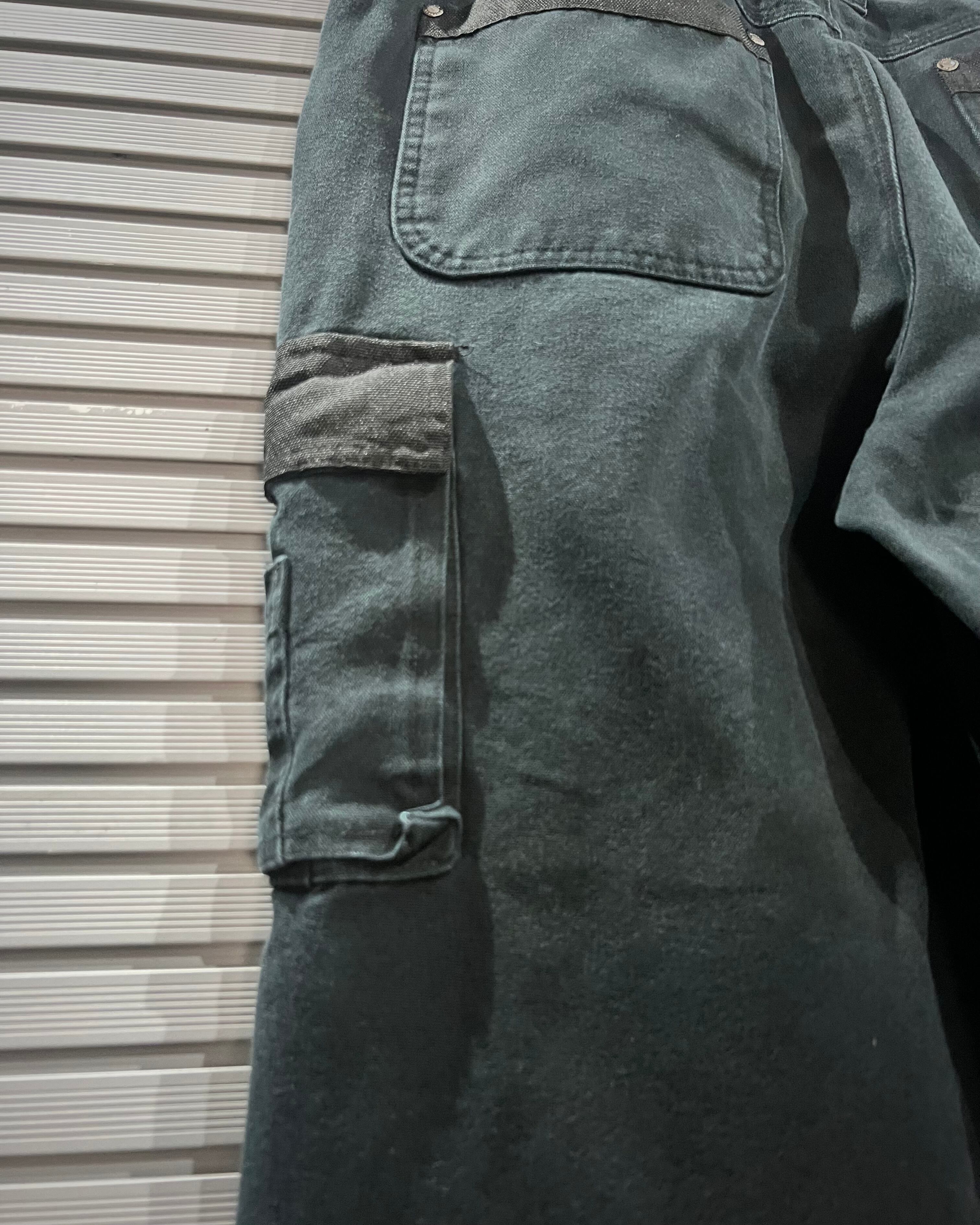 サイドにはハンマーループやツールポケットを備え、ワークウェア本来の実用性をしっかり確保。