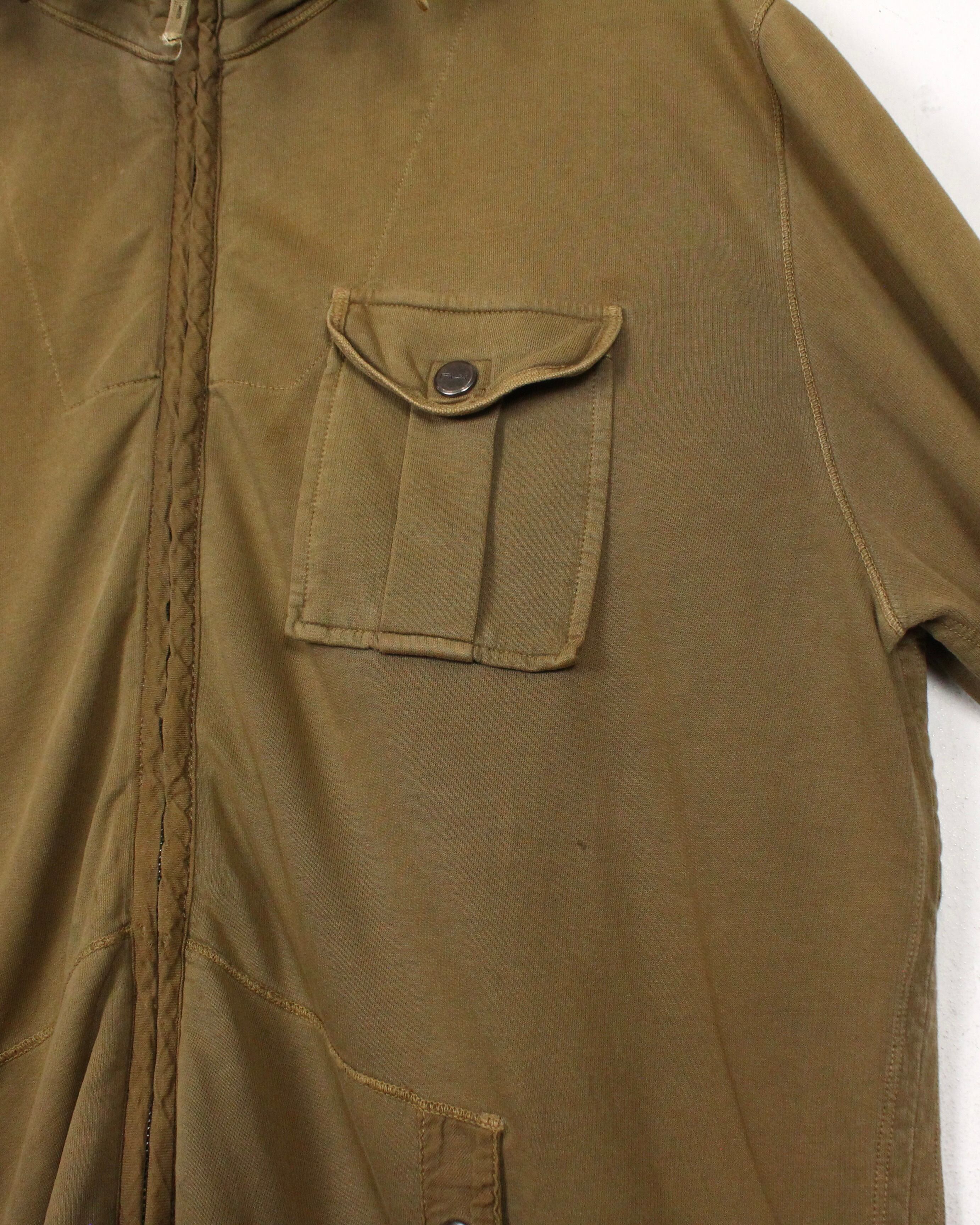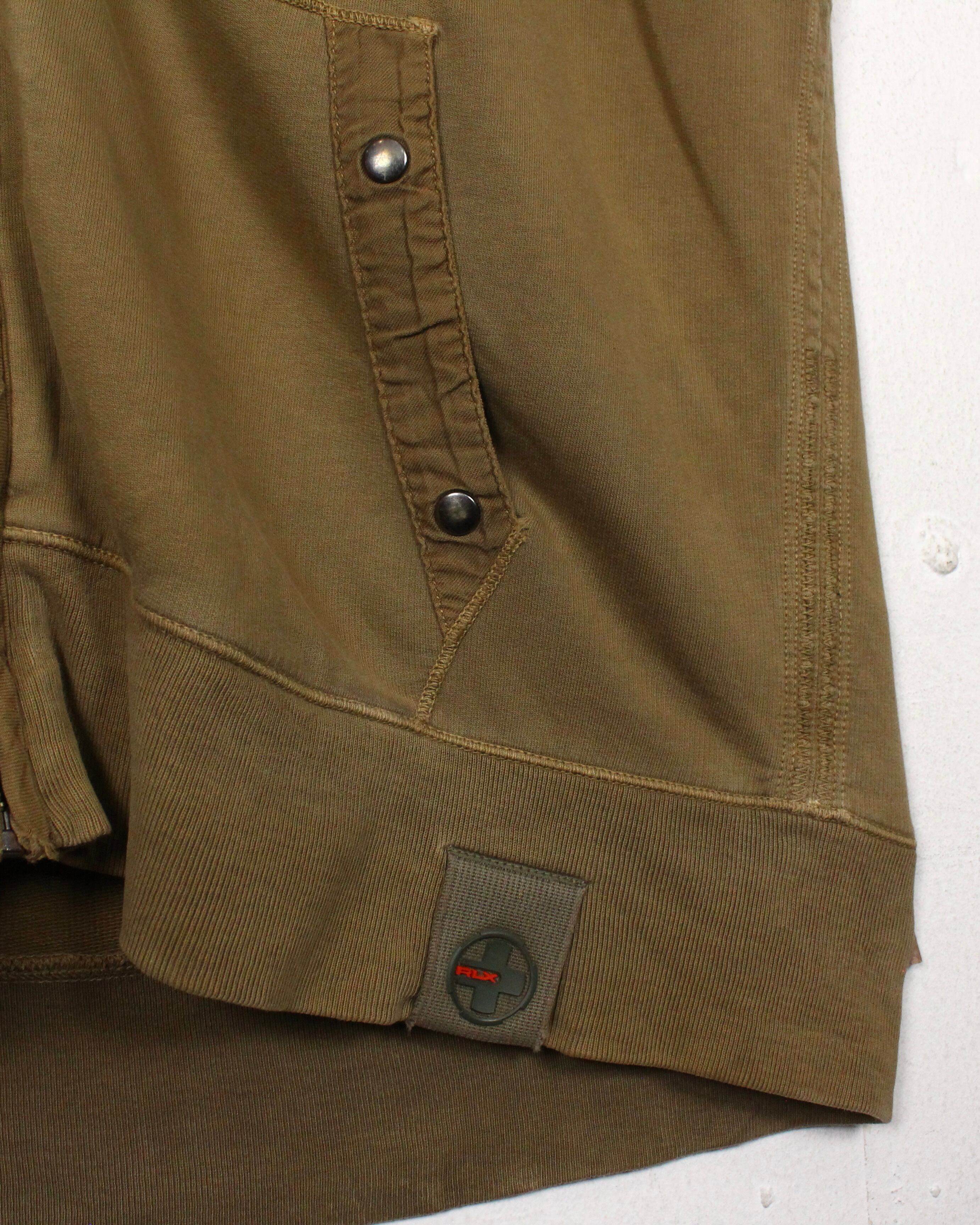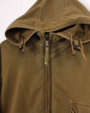 タフなコットンを採用したボディに、このラインらしく様々なギミックを落とし込んだジップアップフーディ。