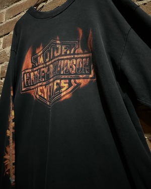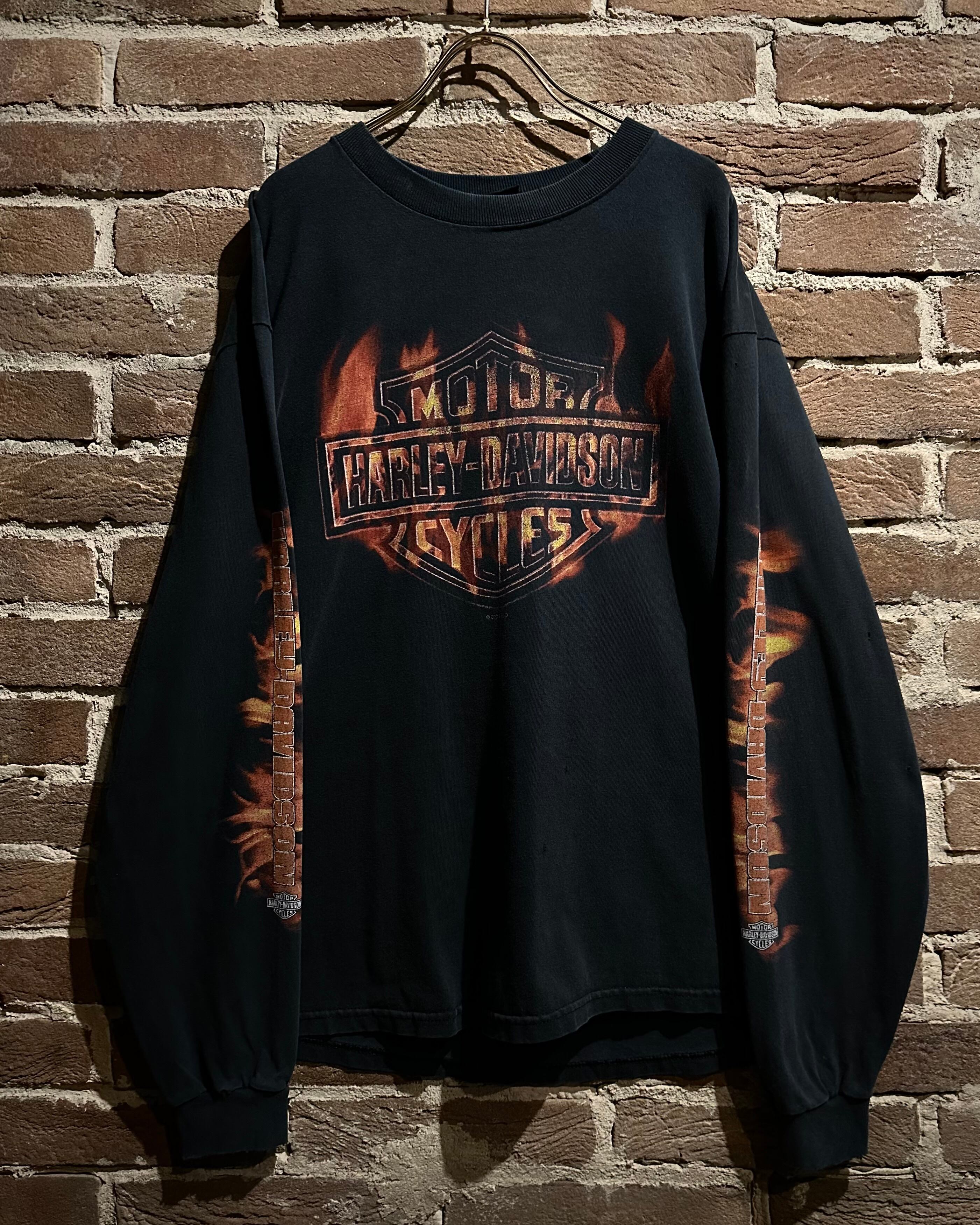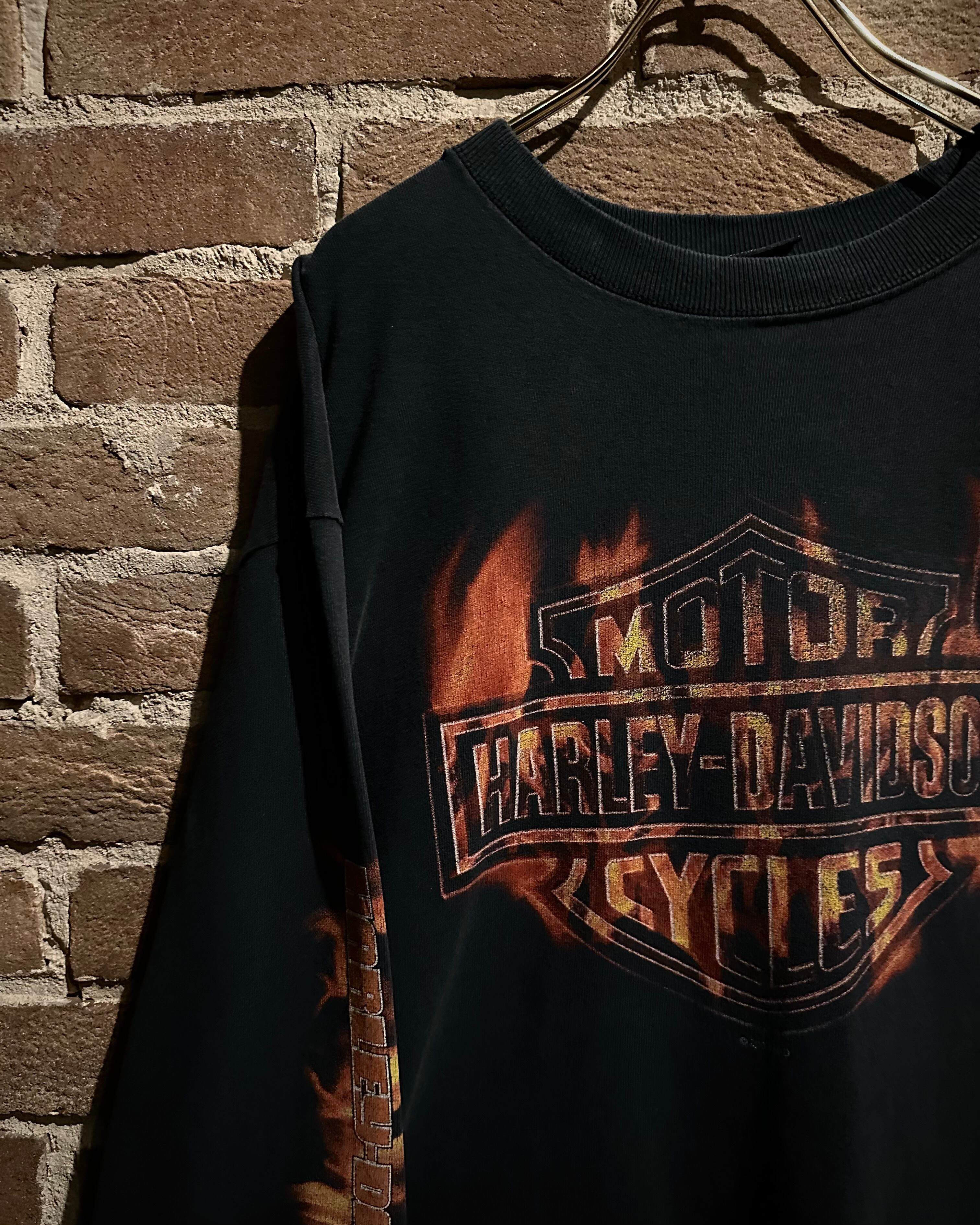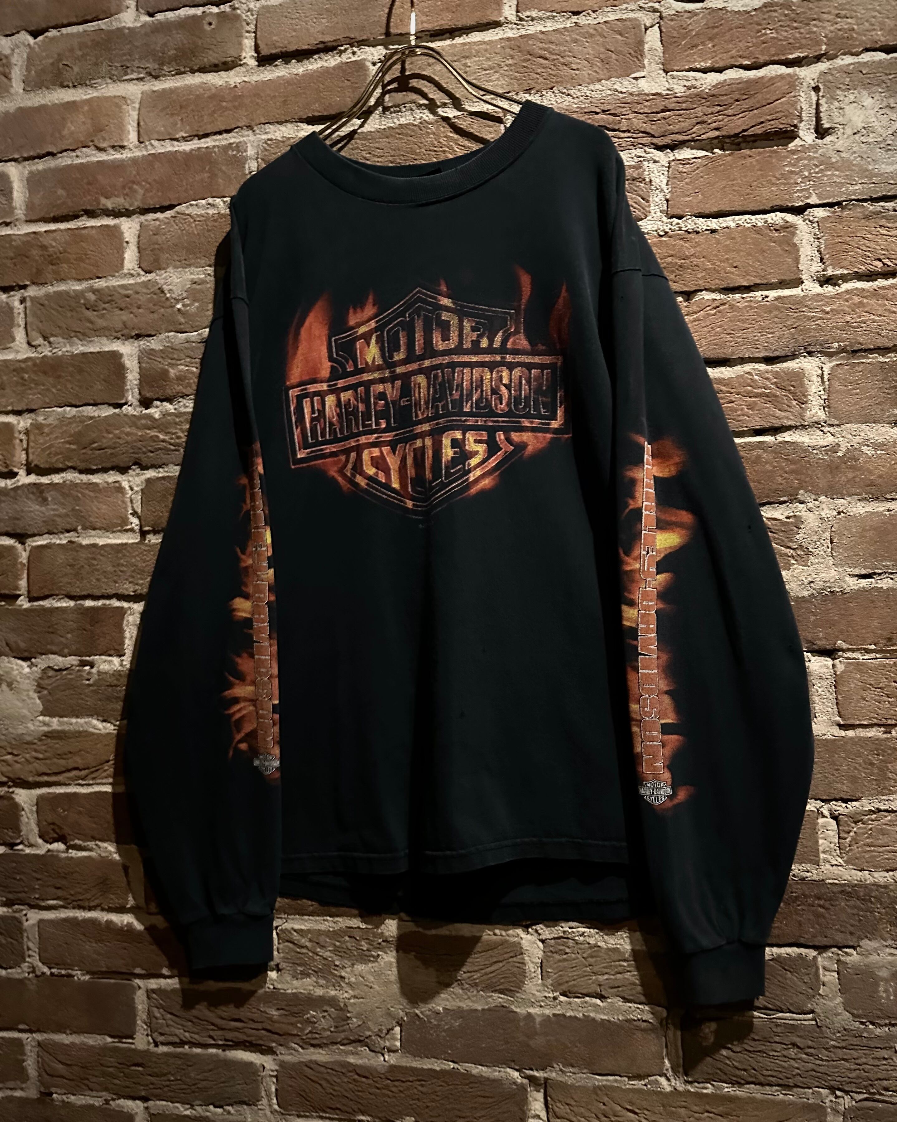 漆黒のボディに浮かび上がるフレイムプリントが圧倒的な存在感を放つ、“HARLEY DAVISON”のロングスリーブTシャツ。