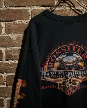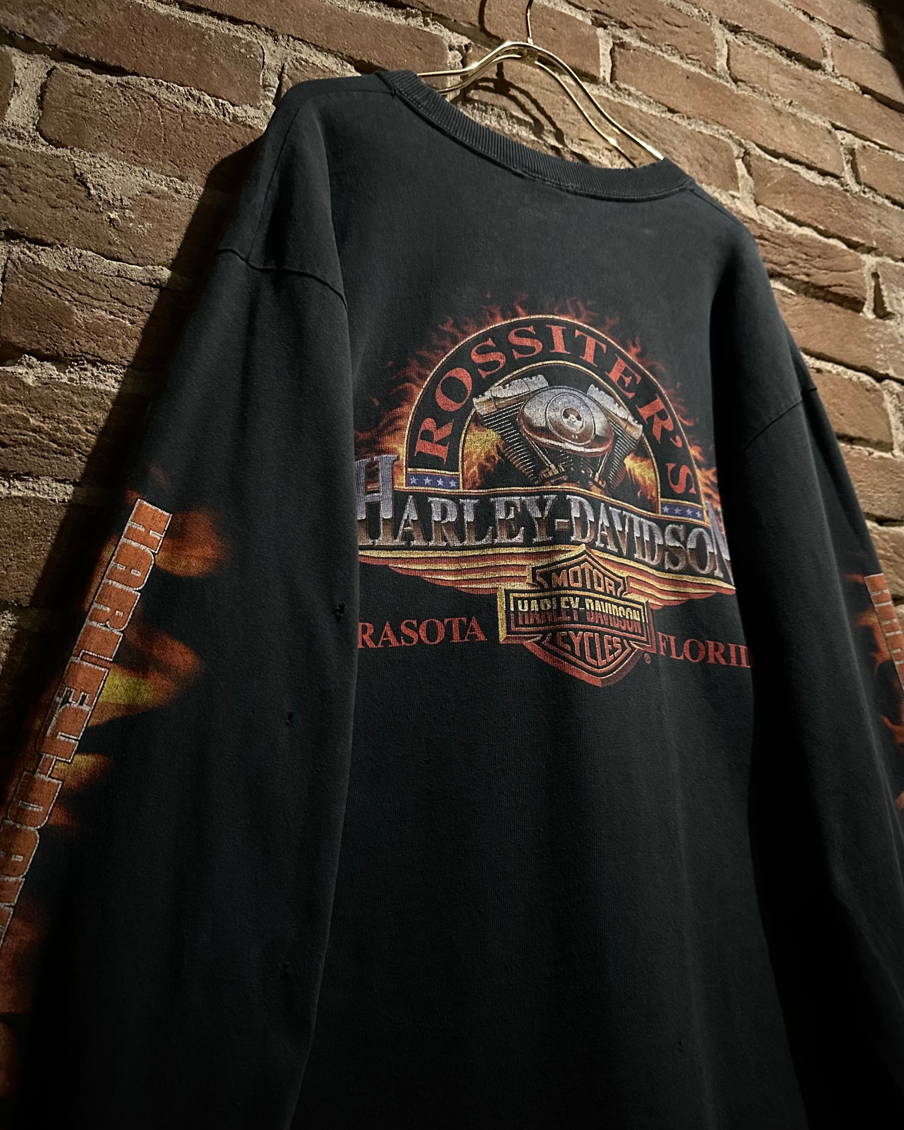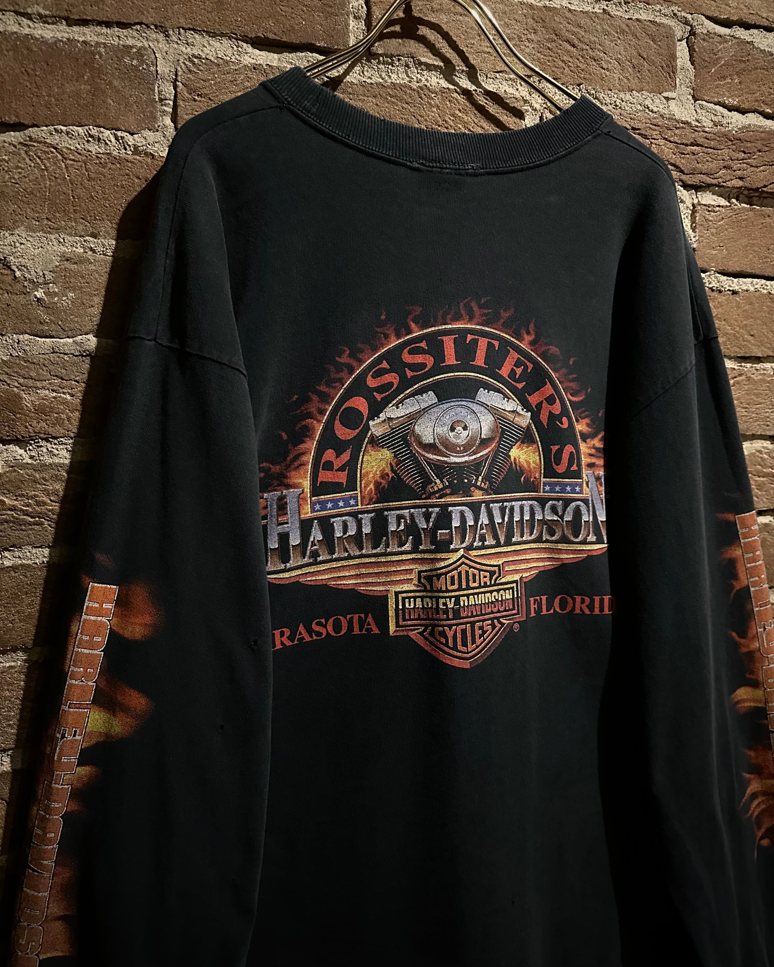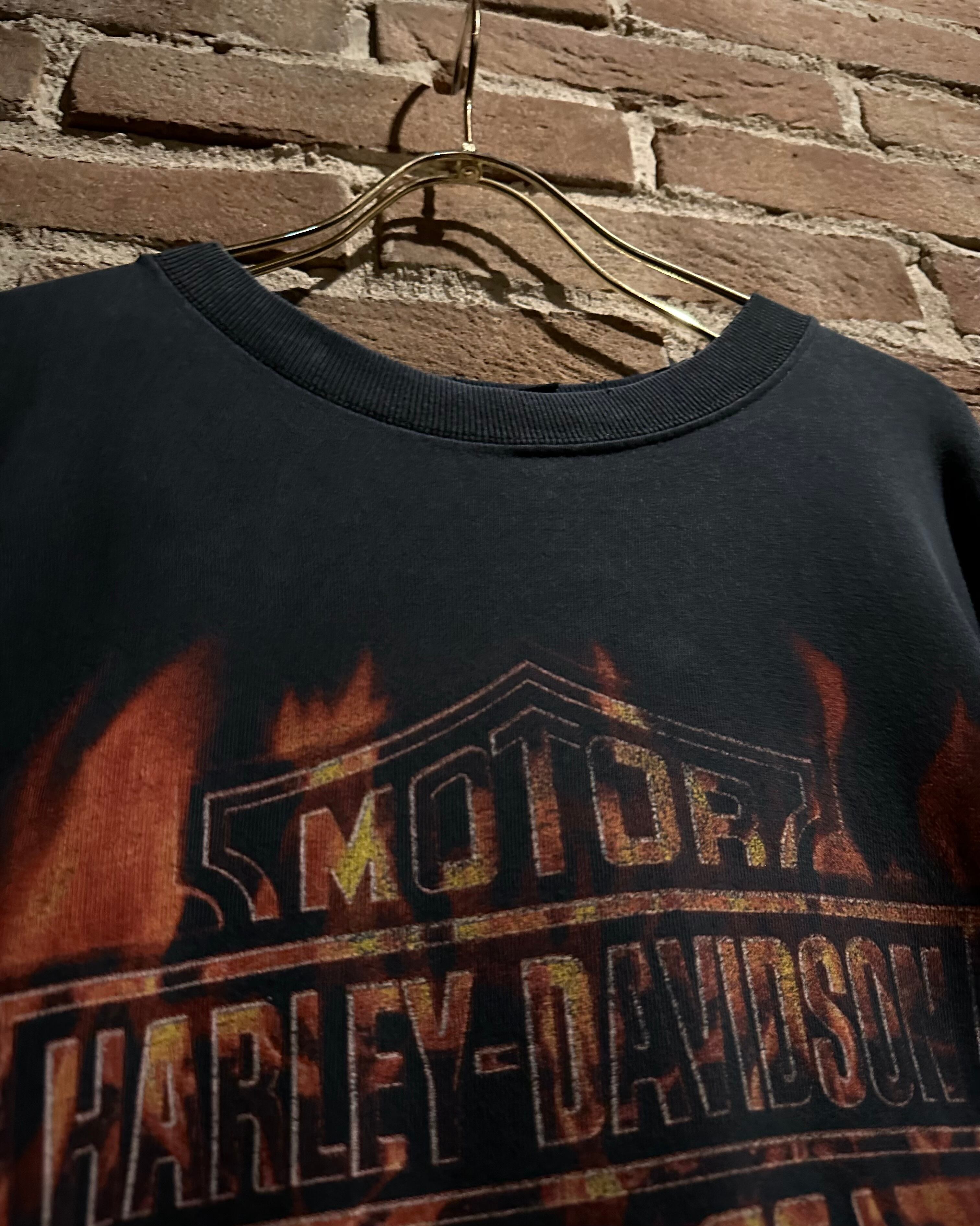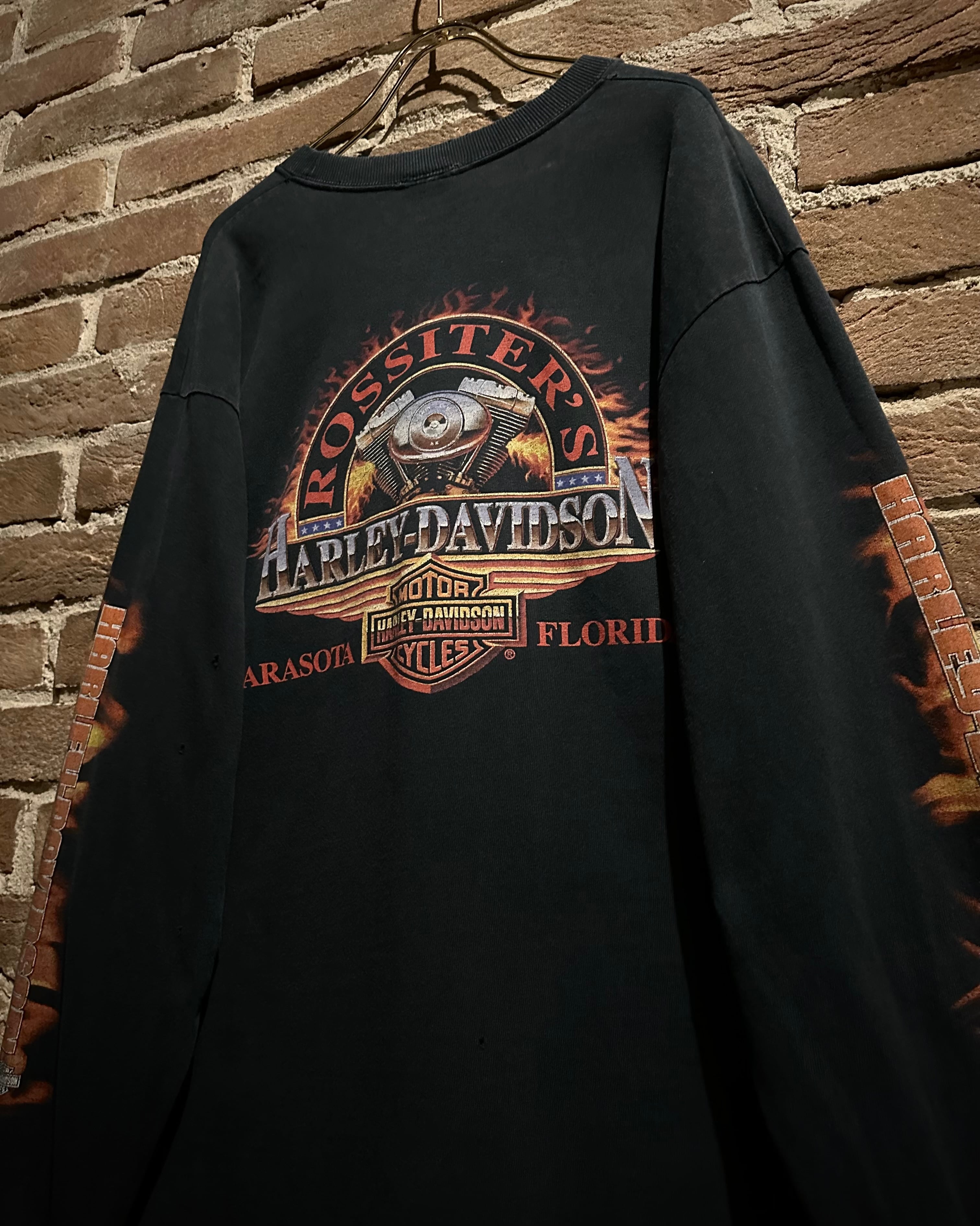 漆黒のボディに浮かび上がるフレイムプリントが圧倒的な存在感を放つ、“HARLEY DAVISON”のロングスリーブTシャツ。