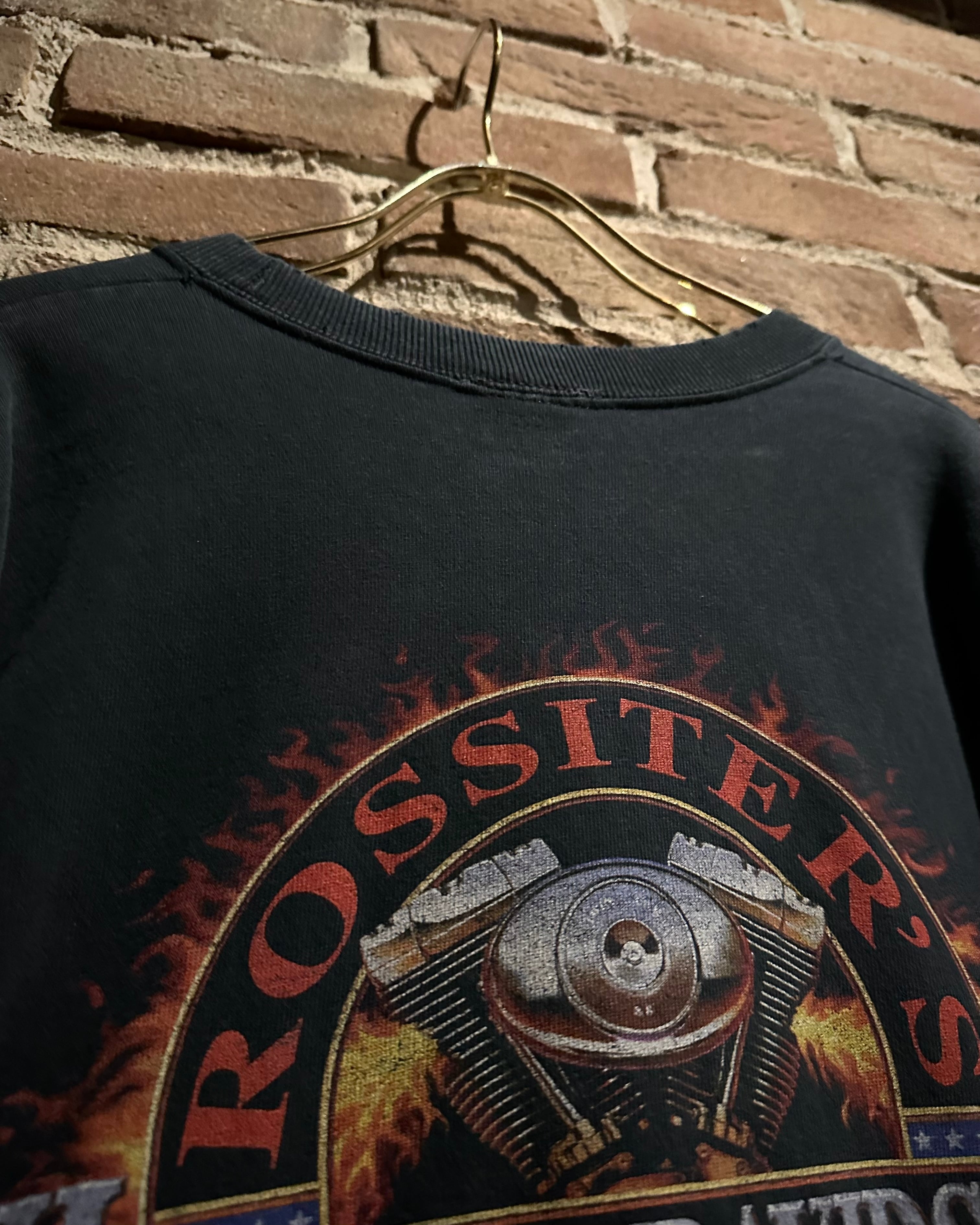 袖には「HARLEY-DAVIDSON」の文字をフレイムと共に刻み込み、バックには「ROSSITER’S HARLEY-DAVIDSON」×エンジンモチーフのグラフィックを大胆にプリント。まさに全方位において死角なしの1着です。