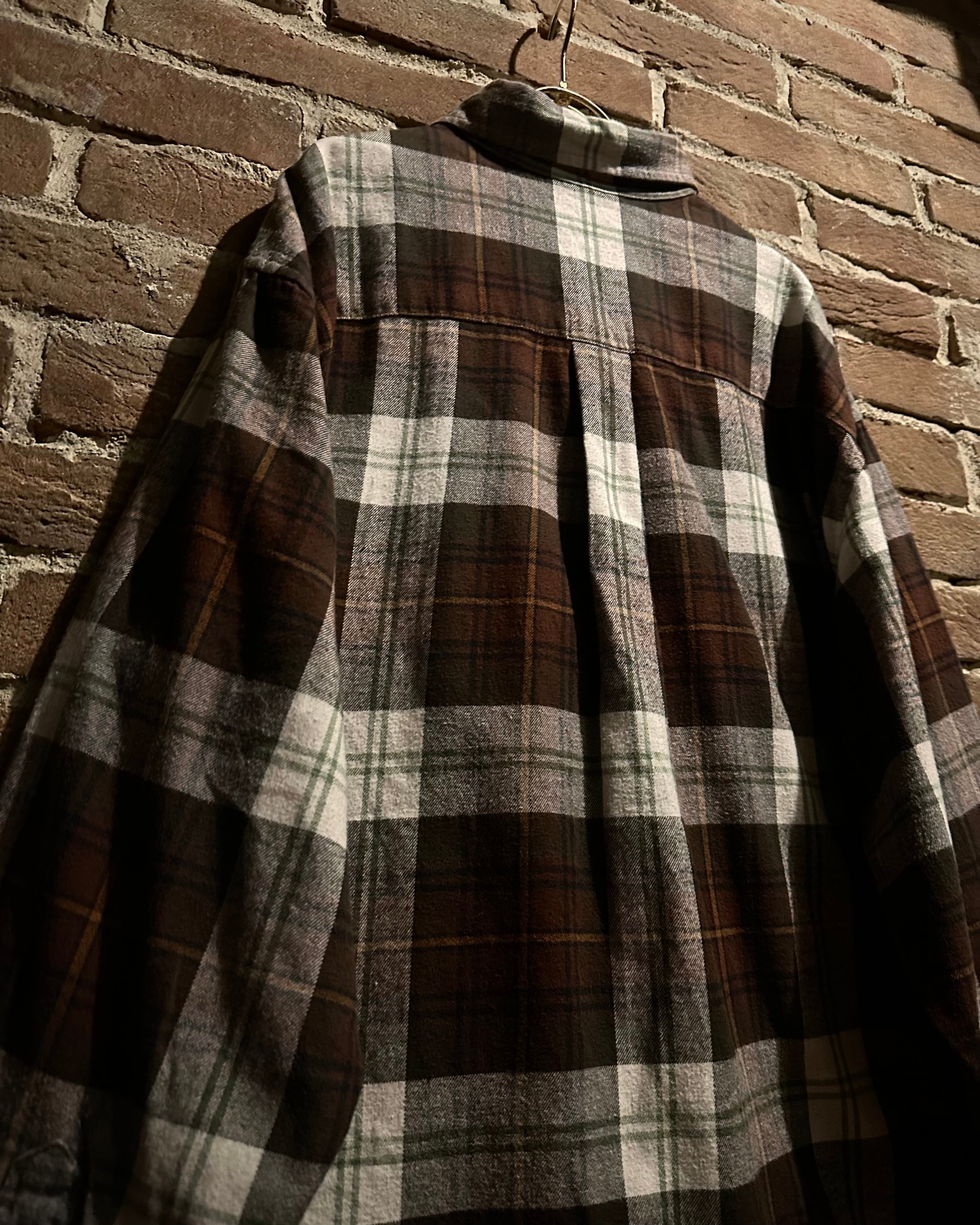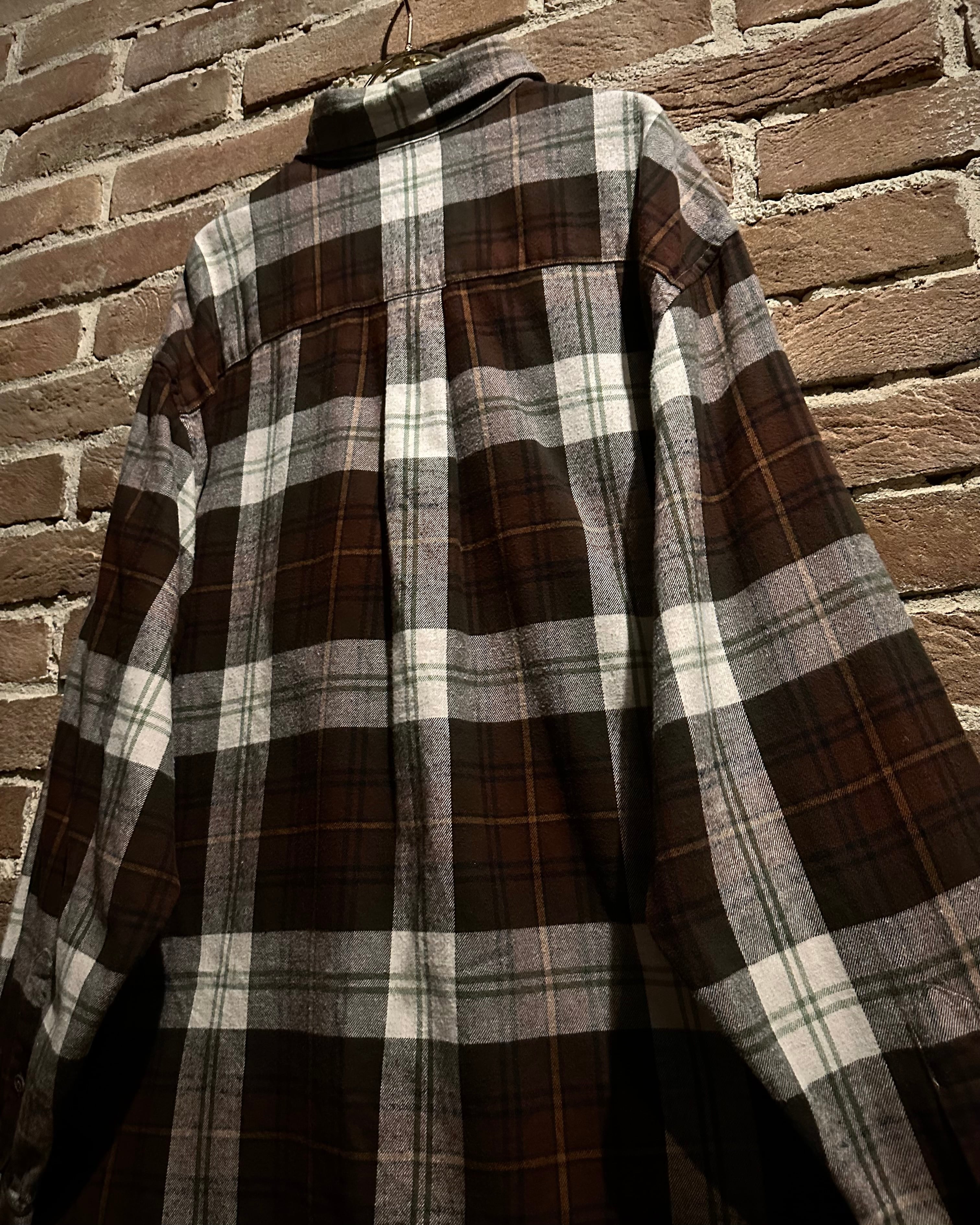 ネルシャツの無骨さに、ブランドらしいクラシックな空気感が掛け合わさった逸品。日常使いに馴染む気軽さを持ちながらも、ディテールやデザインで他と差をつけられる、古着好きにはたまらない1着です。