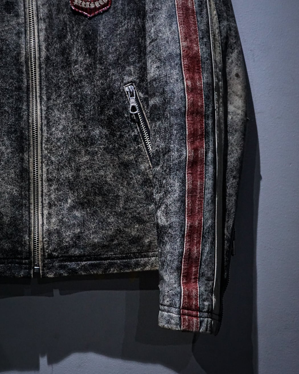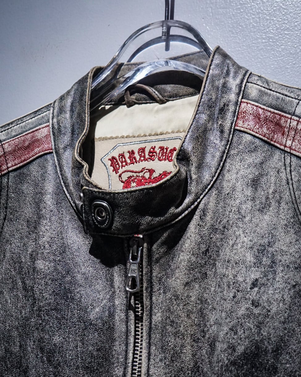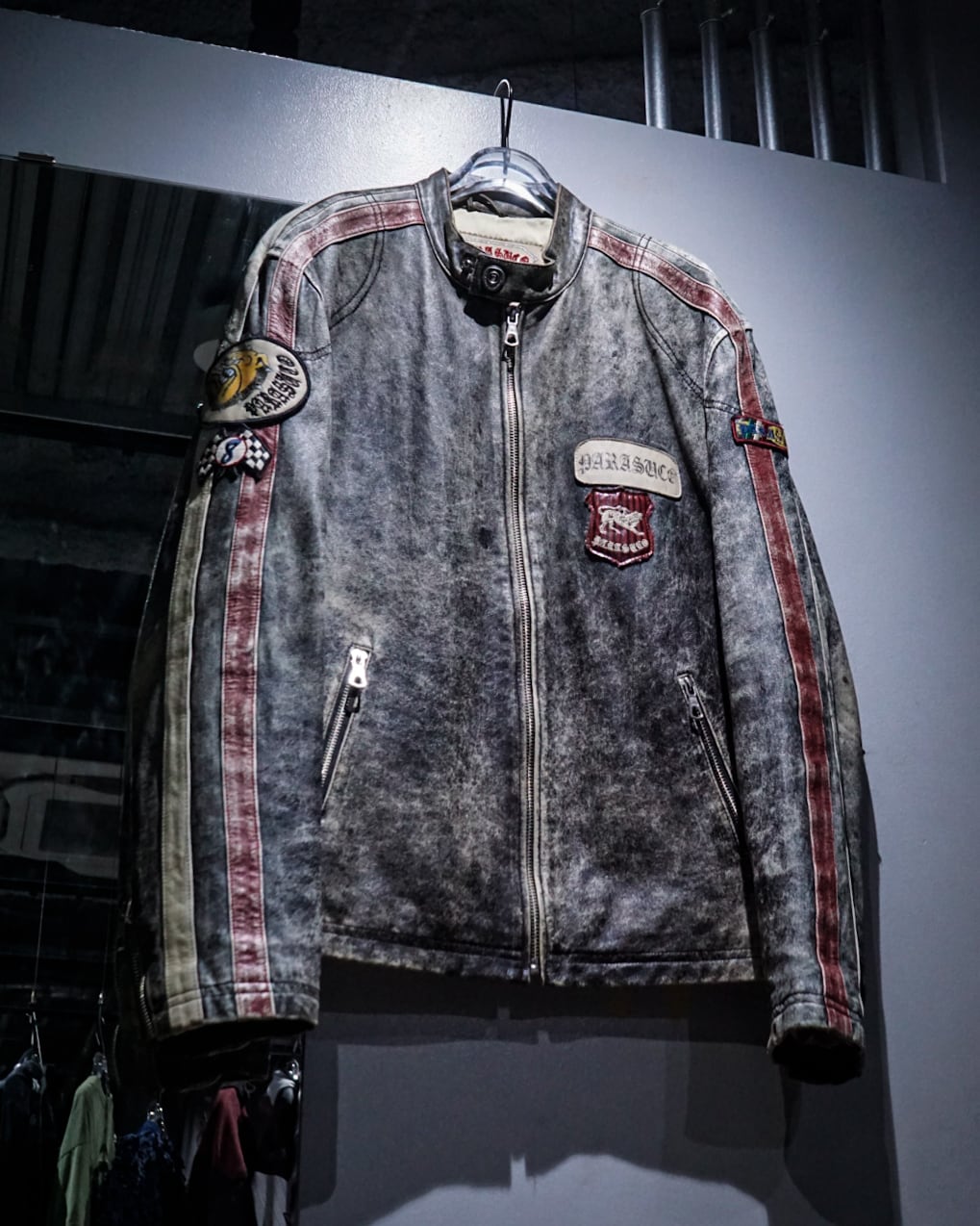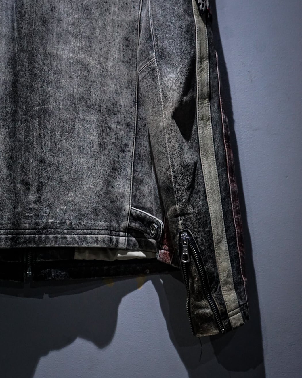 シングルライダース特有のシャープなシルエットに加え、ジップやスナップのメタルパーツがハードなアクセントに。ボディにはリアルレザーならではの重厚感が宿り、長年着込むことでさらに深化していく余白も残しています。
