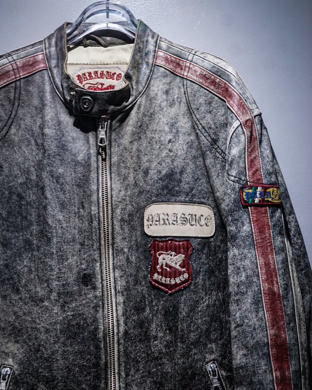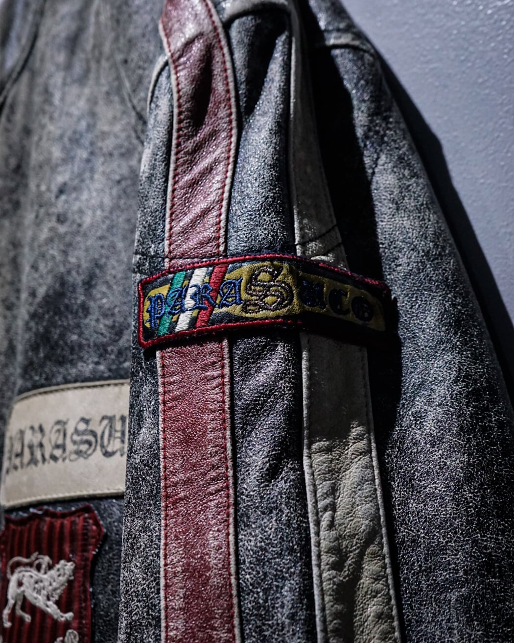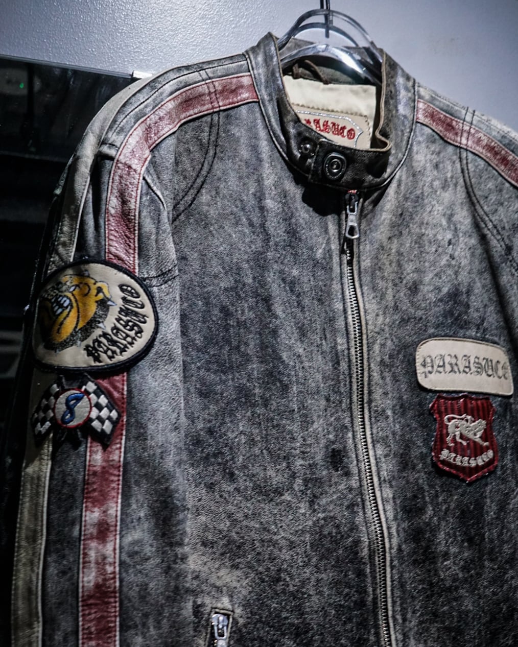 肩から袖に走るレッドのラインテープや胸元、背面のワッペンディテールは、ブランドらしさを存分に感じさせる仕上がり。背面の大きな「PARASUCO」のネームもインパクト抜群です。