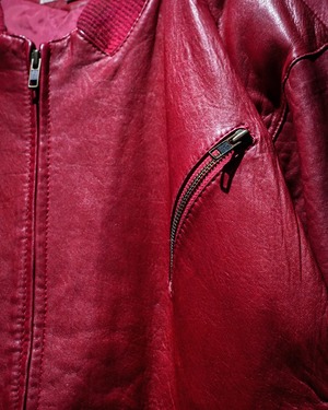 当店が自信を持ってお届けするレザーの中でも一際異彩を放つ一点物。稀有な赤色のレザーボンバー、この機会を逃すと二度と出会えないかもしれません。