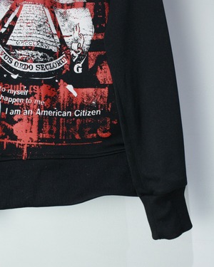 袖はラグラン仕様で可動域を確保しながら、丸みを帯びた独特のシルエットを描写。リブは厚みがあり、全体に骨太なフォルムを形成。ルーズなサイジングで現代的なストリートやゴシックファッションのレイヤードにも相性抜群です。