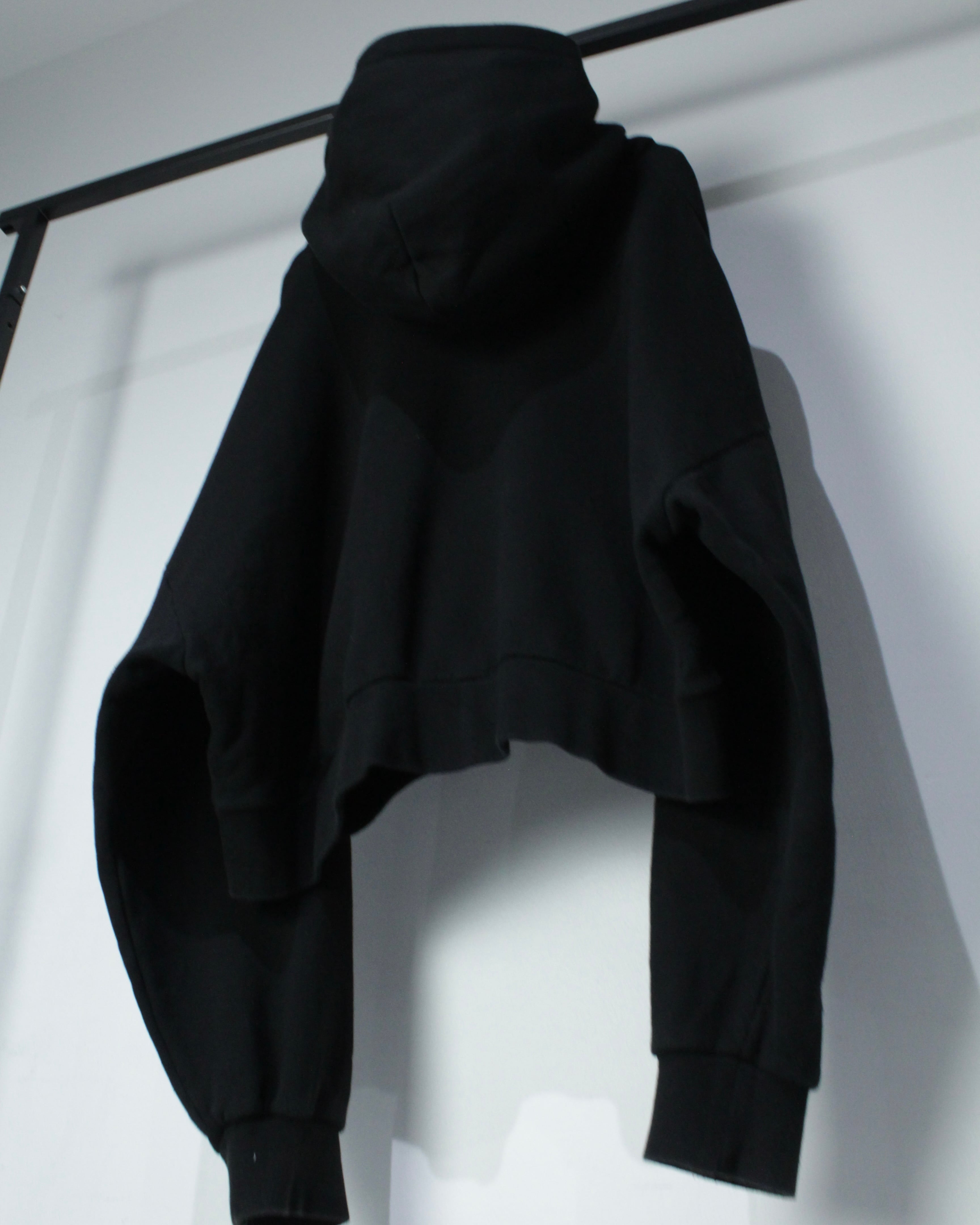 特筆すべきは変形的なシルエット。袖がドルマンスリーブのように作られており、着用時には躍動感のあるシルエットが演出されます。