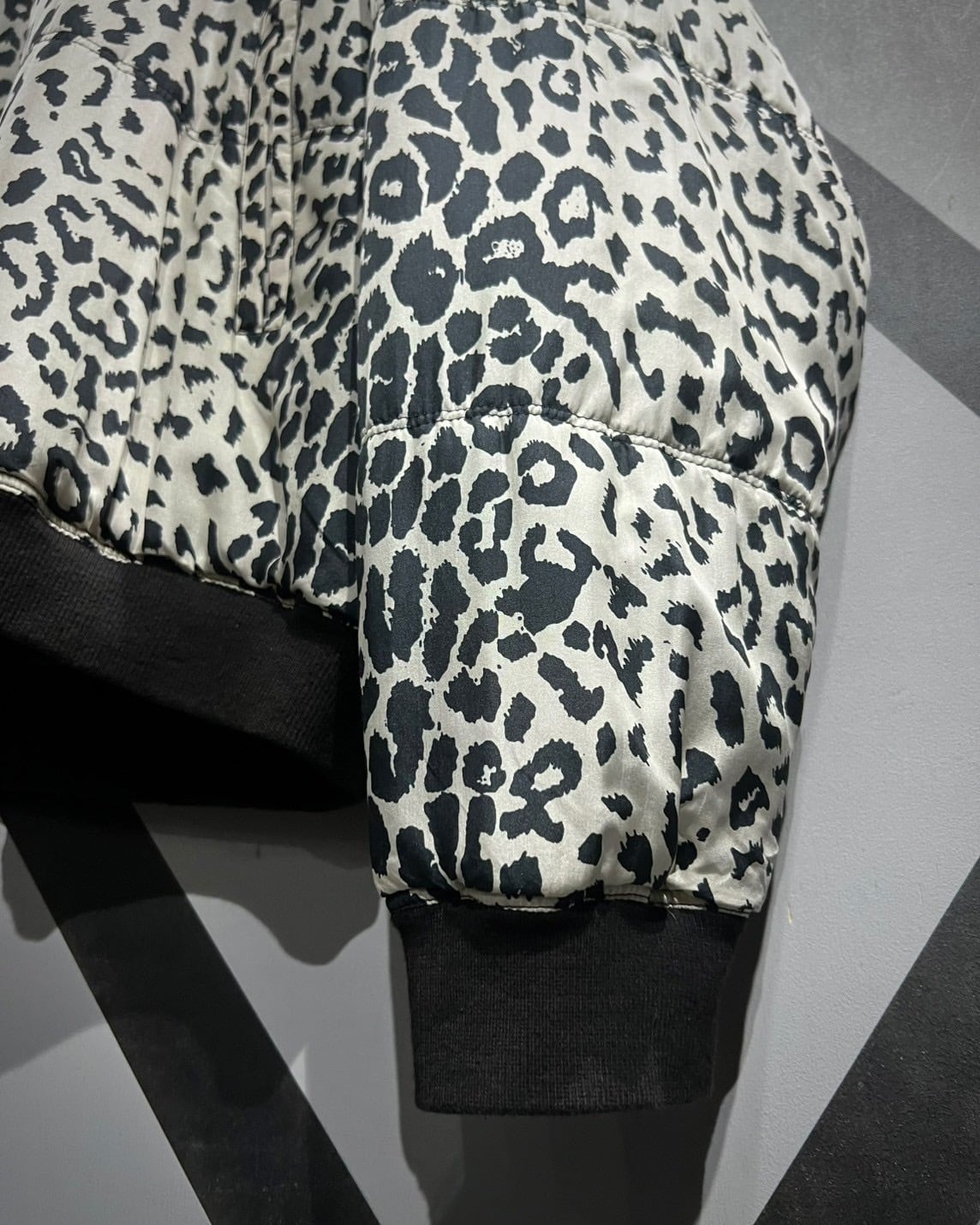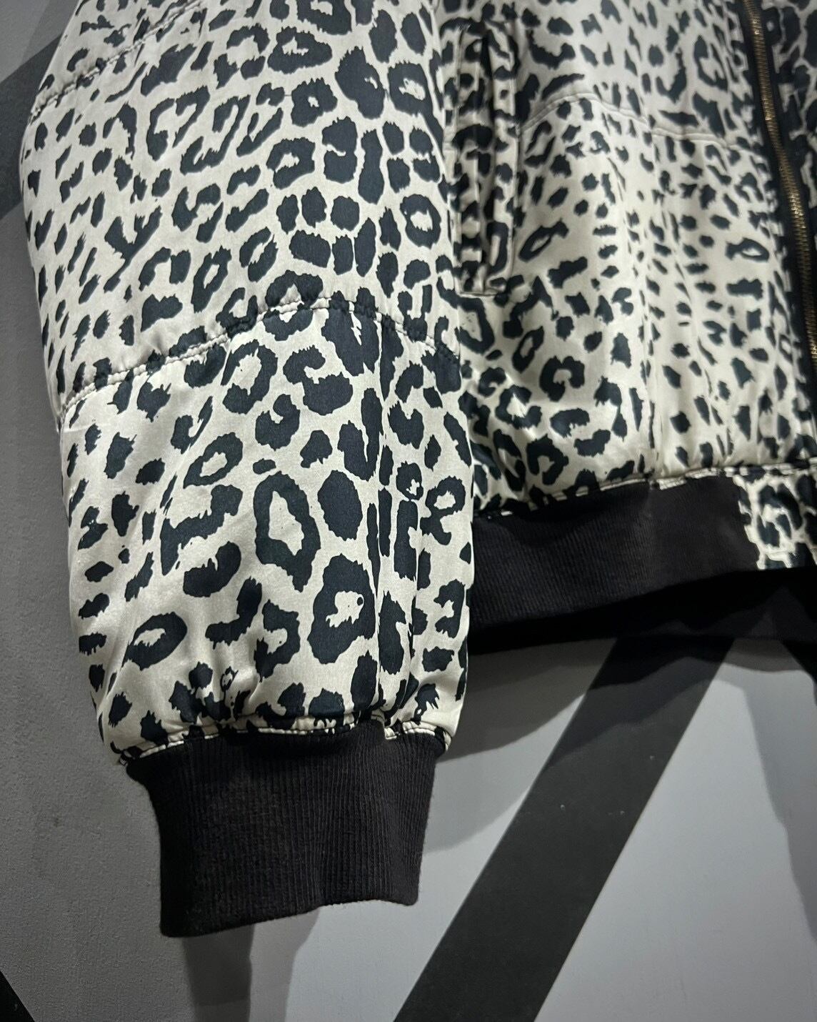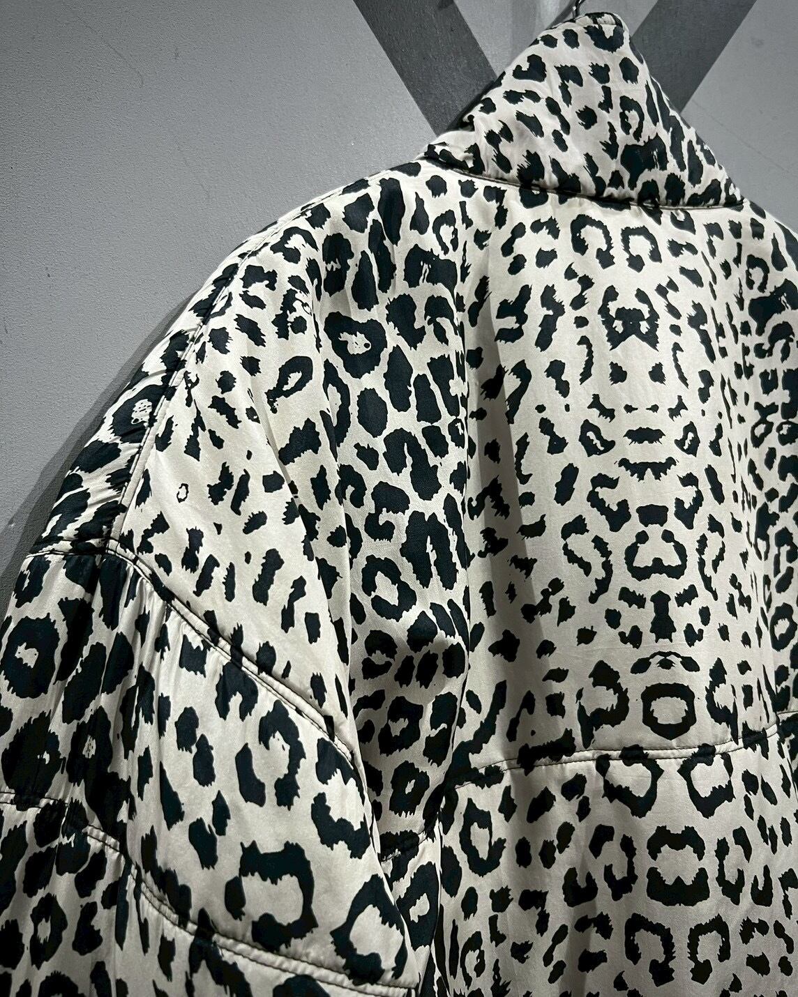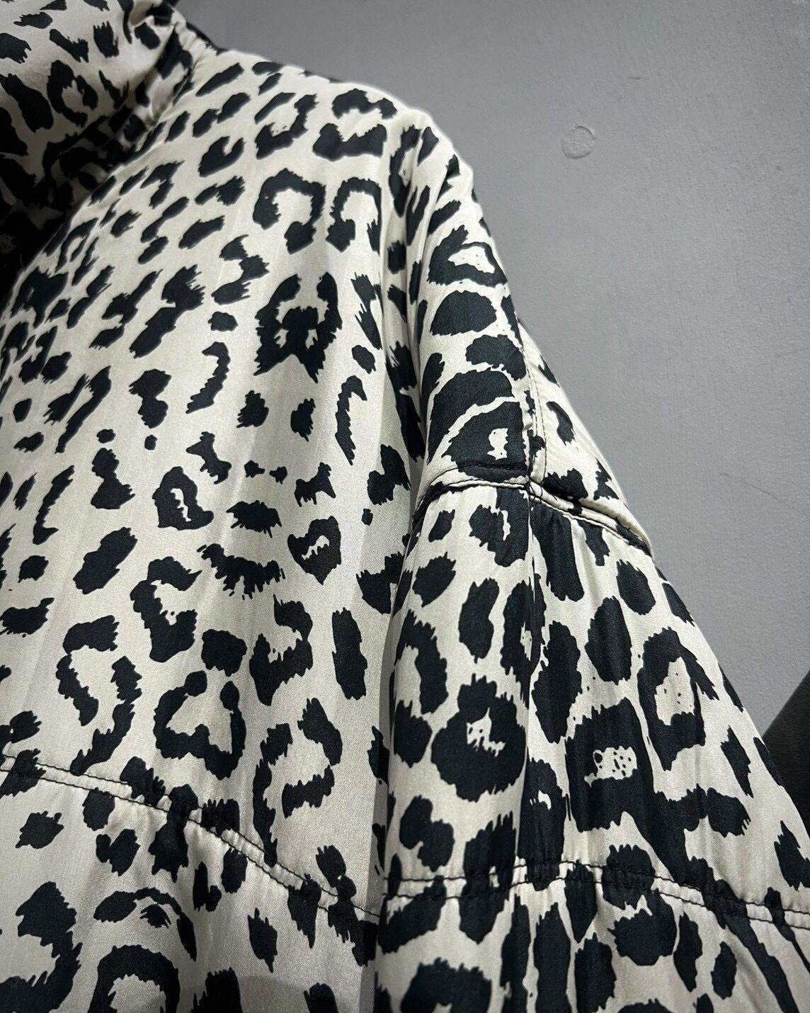 白のボディをベースに、レオパード柄をモノトーンで載せたシルクのジャケット。
